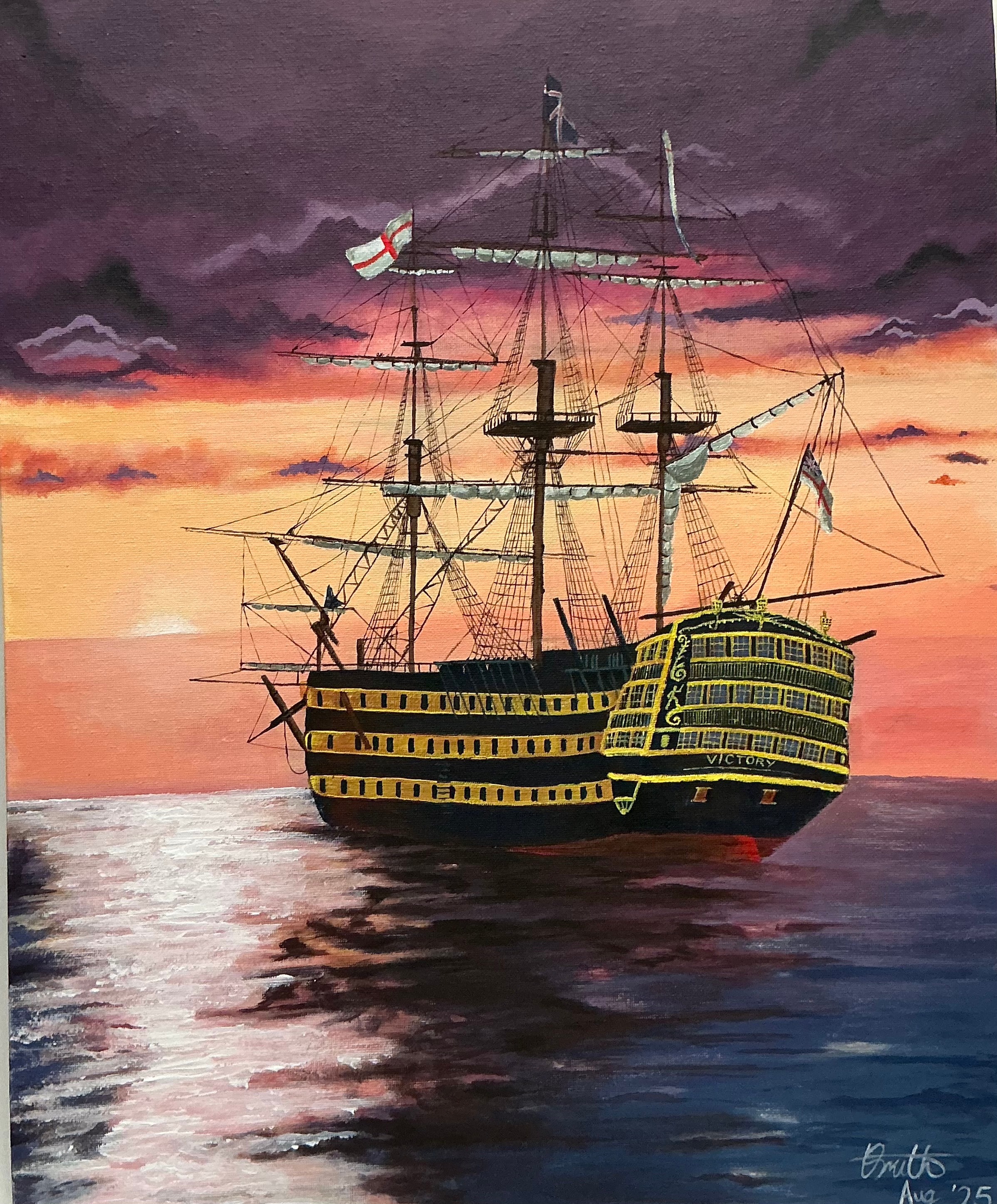 This fantastic painting of the Victory by new artist L Smith dated August 2025. This item is up for auction to raise money for the Enable Ability charity who work with disabled people and their families to provide vital inclusive services that build confidence, promote independence and offer much needed respite and support.