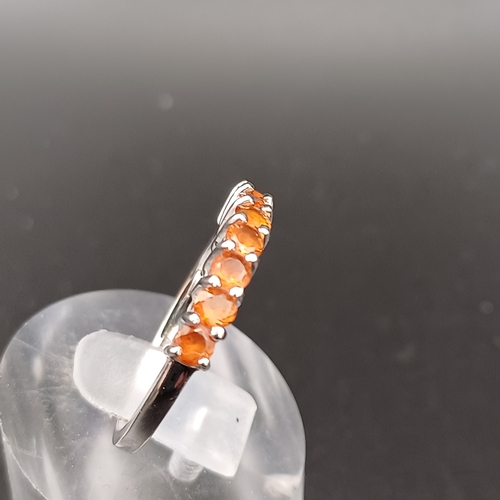 Orange Sapphire Seven Stone Half Eternity Ring set in white gold: