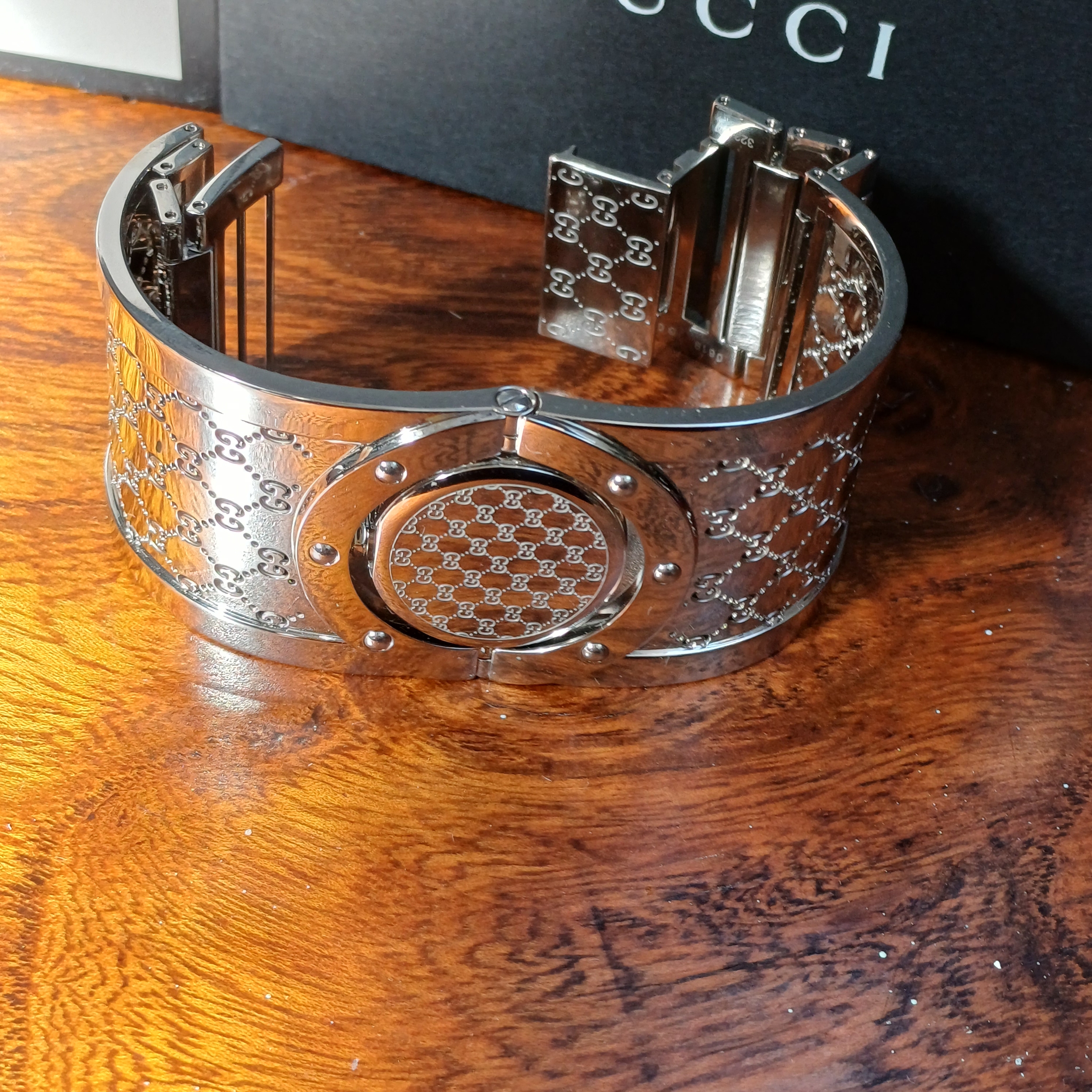 Ladies Gucci Twirl Bangle Watch. This is in excellent condition and all boxed with paperwork.