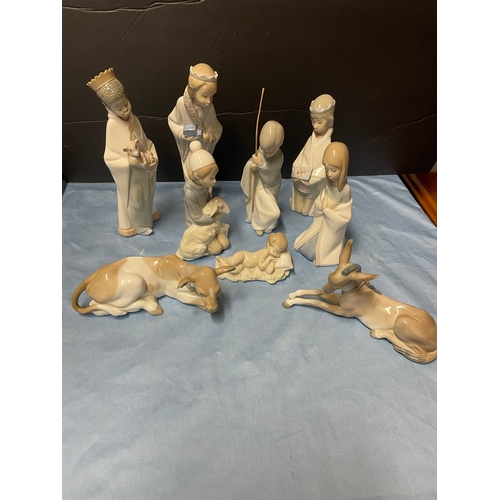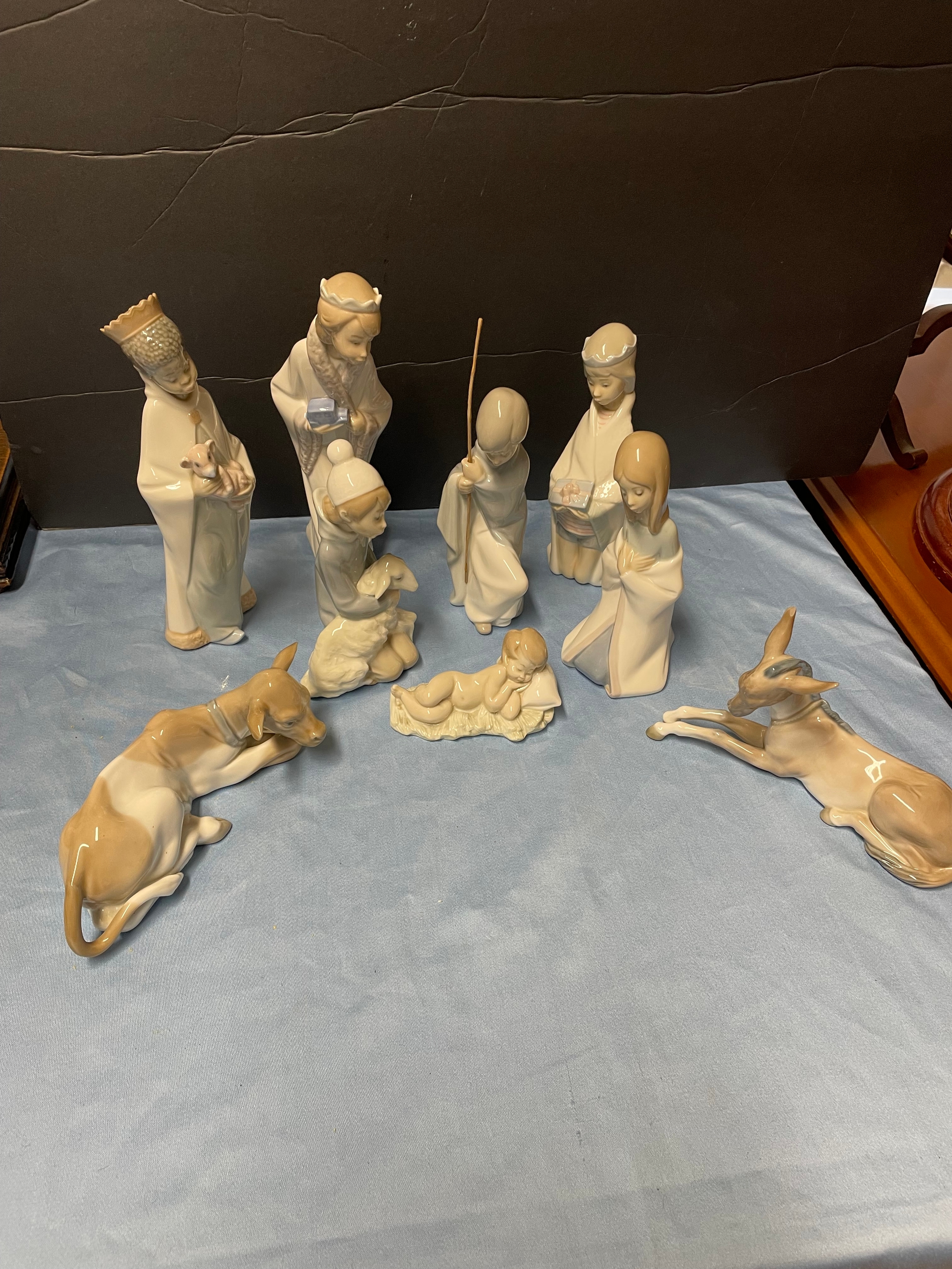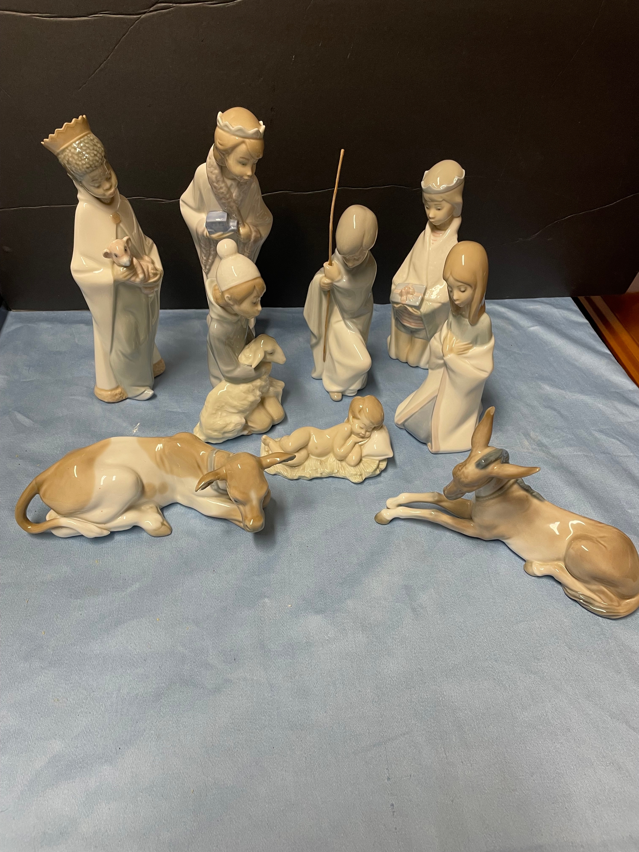 Lladro Scene, possibly a Nativity Scene with the Three Kings, Shepperd, baby, Donkey and Cow. All in excellent condition. One recently sold for £1,600