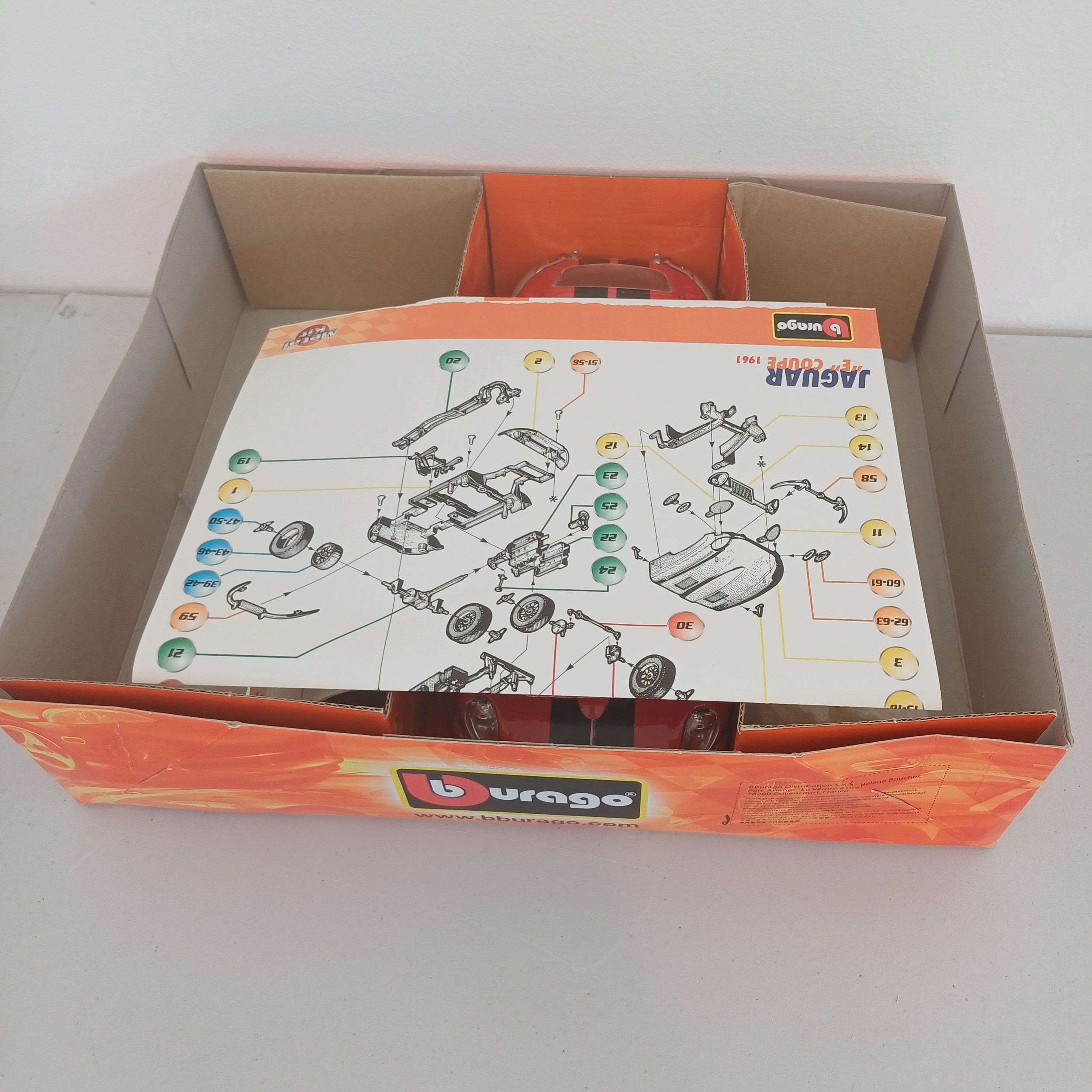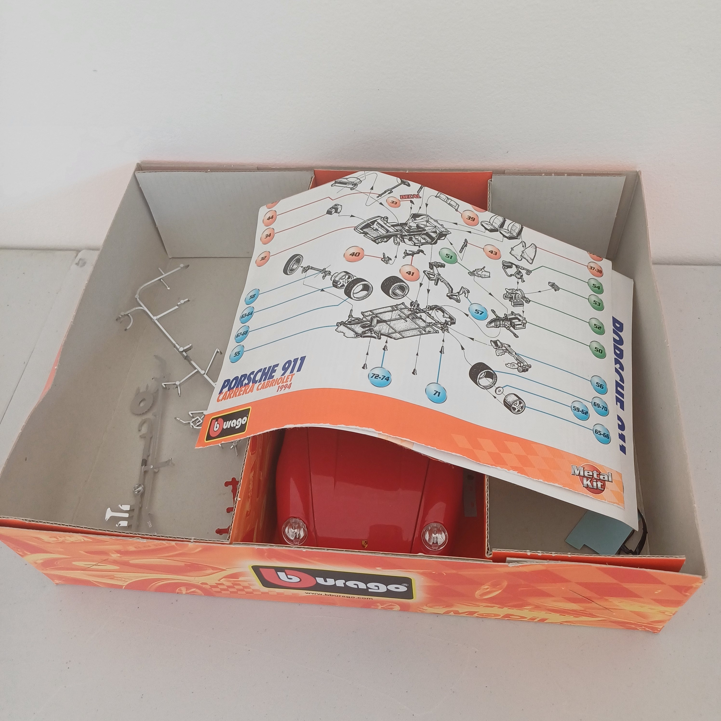 Burago Model Car Kit Boxed with all instructions and parts: Jaguar 'E' Coupe; Porsche 911; Ferrari 250 and 348; Dodge Viper