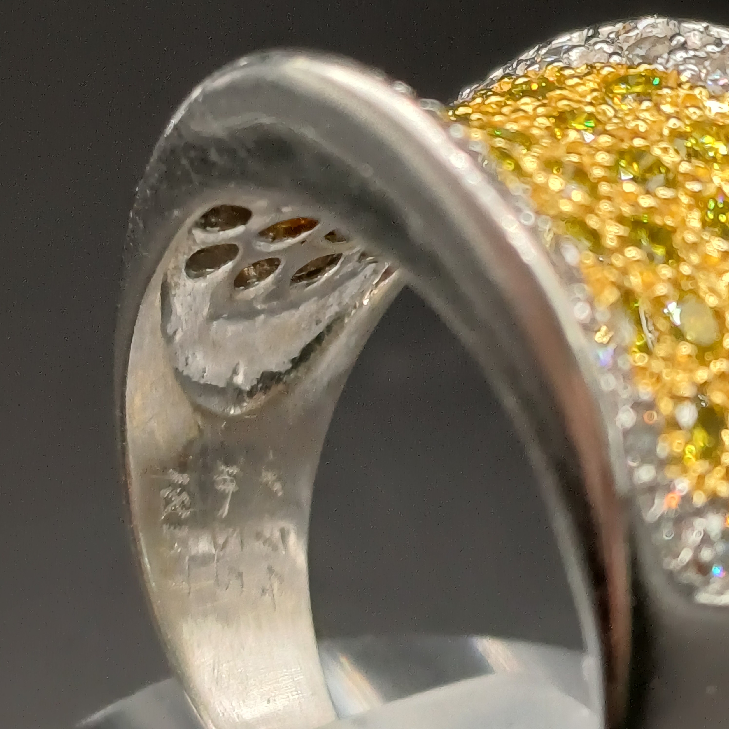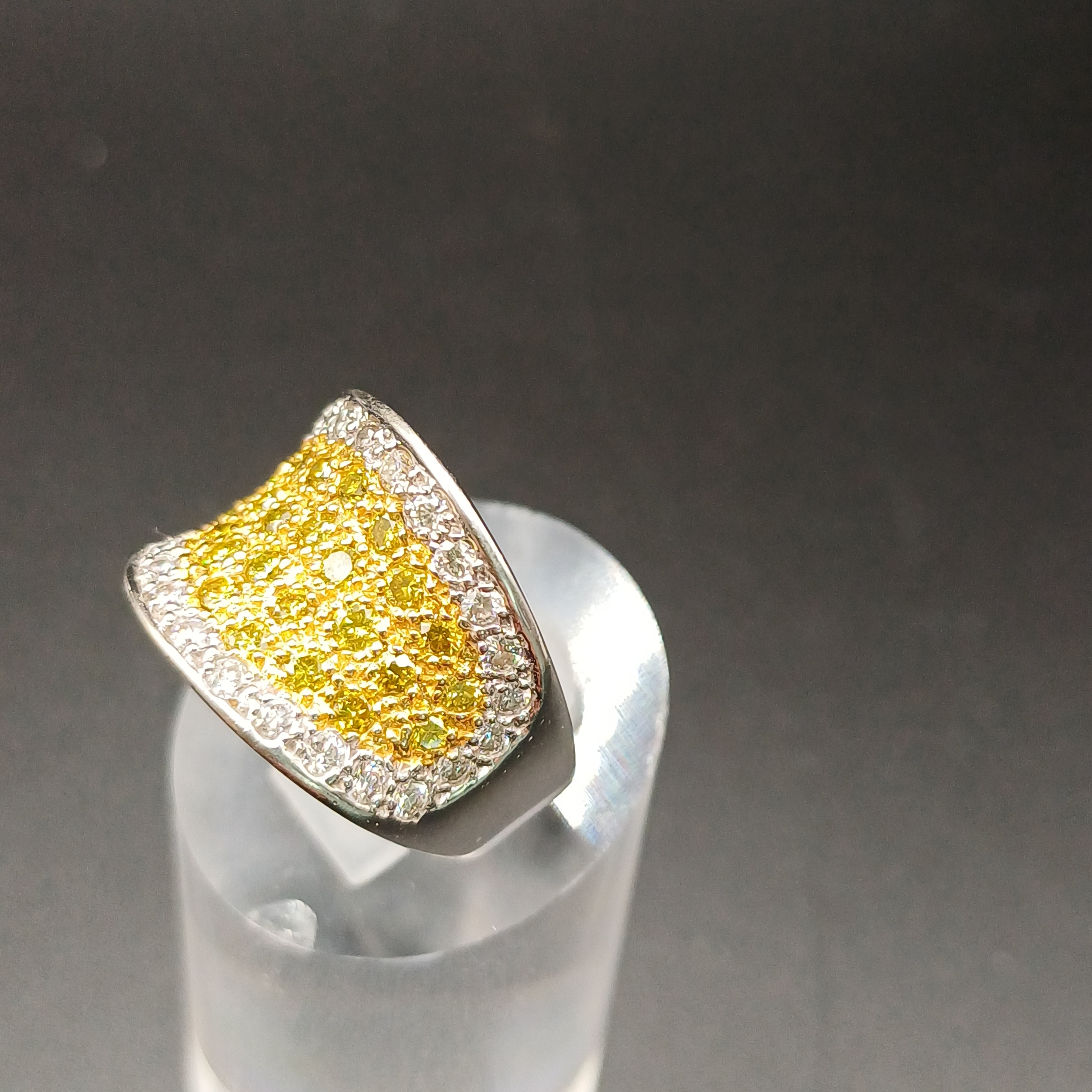 Stunning Yellow and White Diamond Ring set in 18 carat white gold.