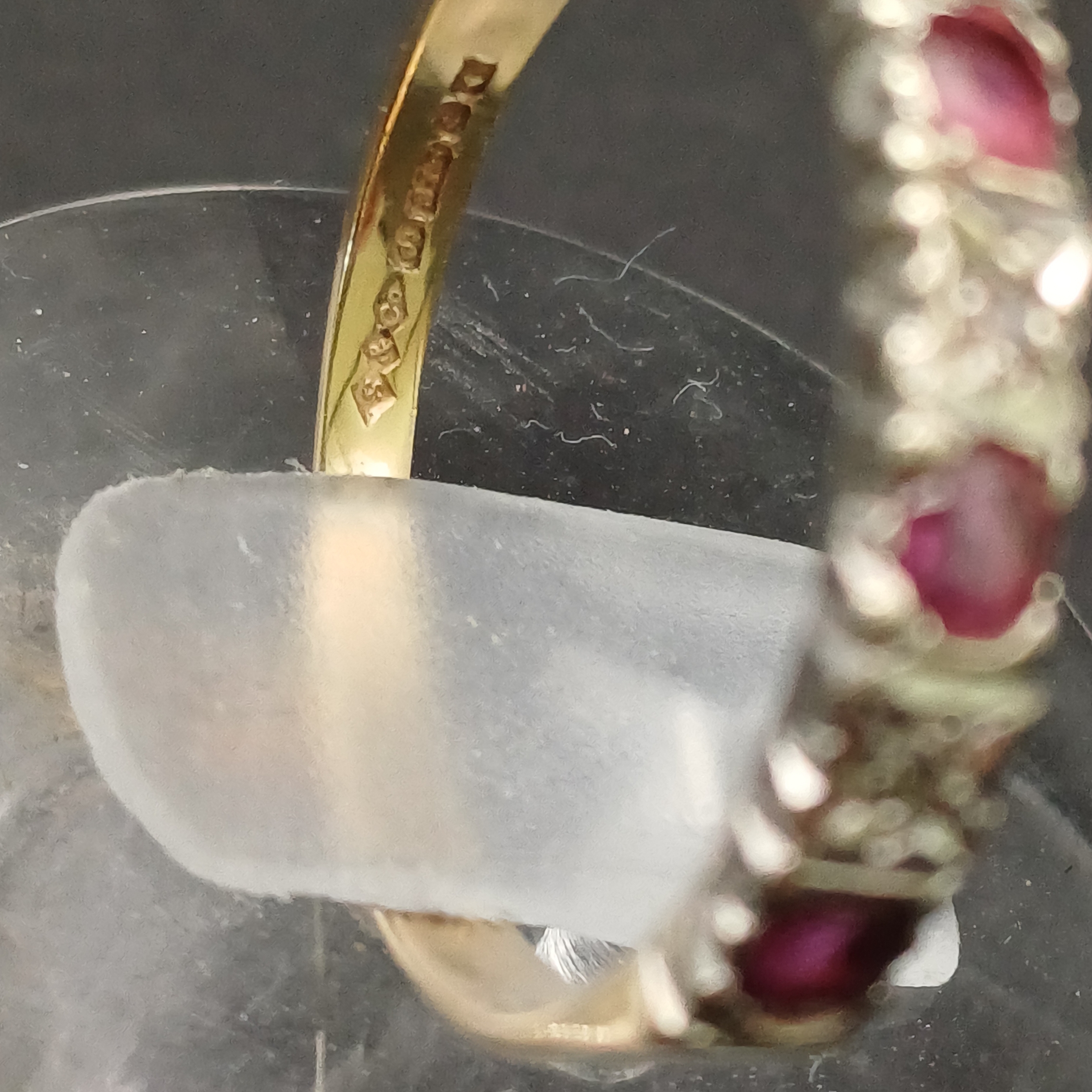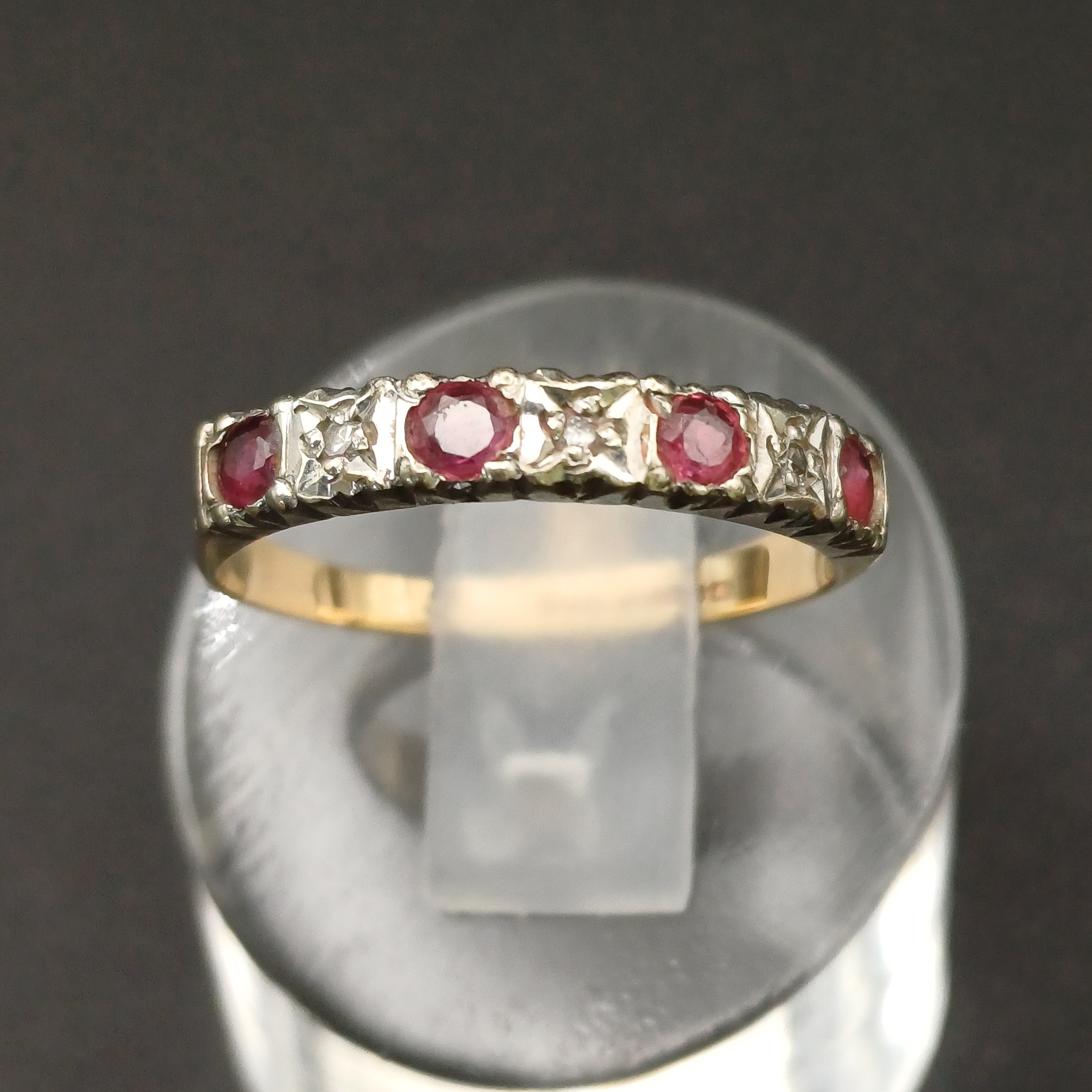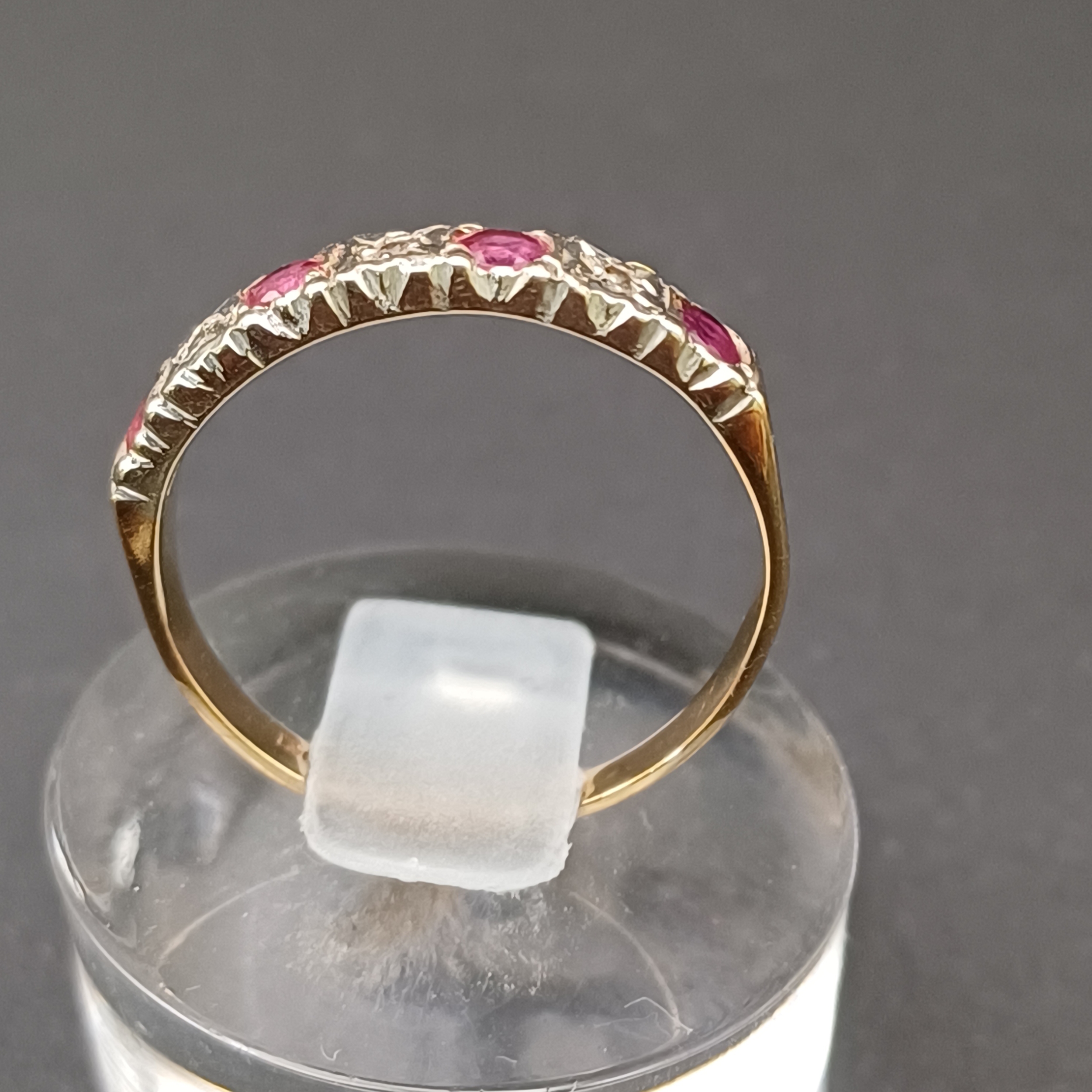 Ruby and Diamond half band ring.- 9 ct yellow gold- size L / M- weight 1.8g