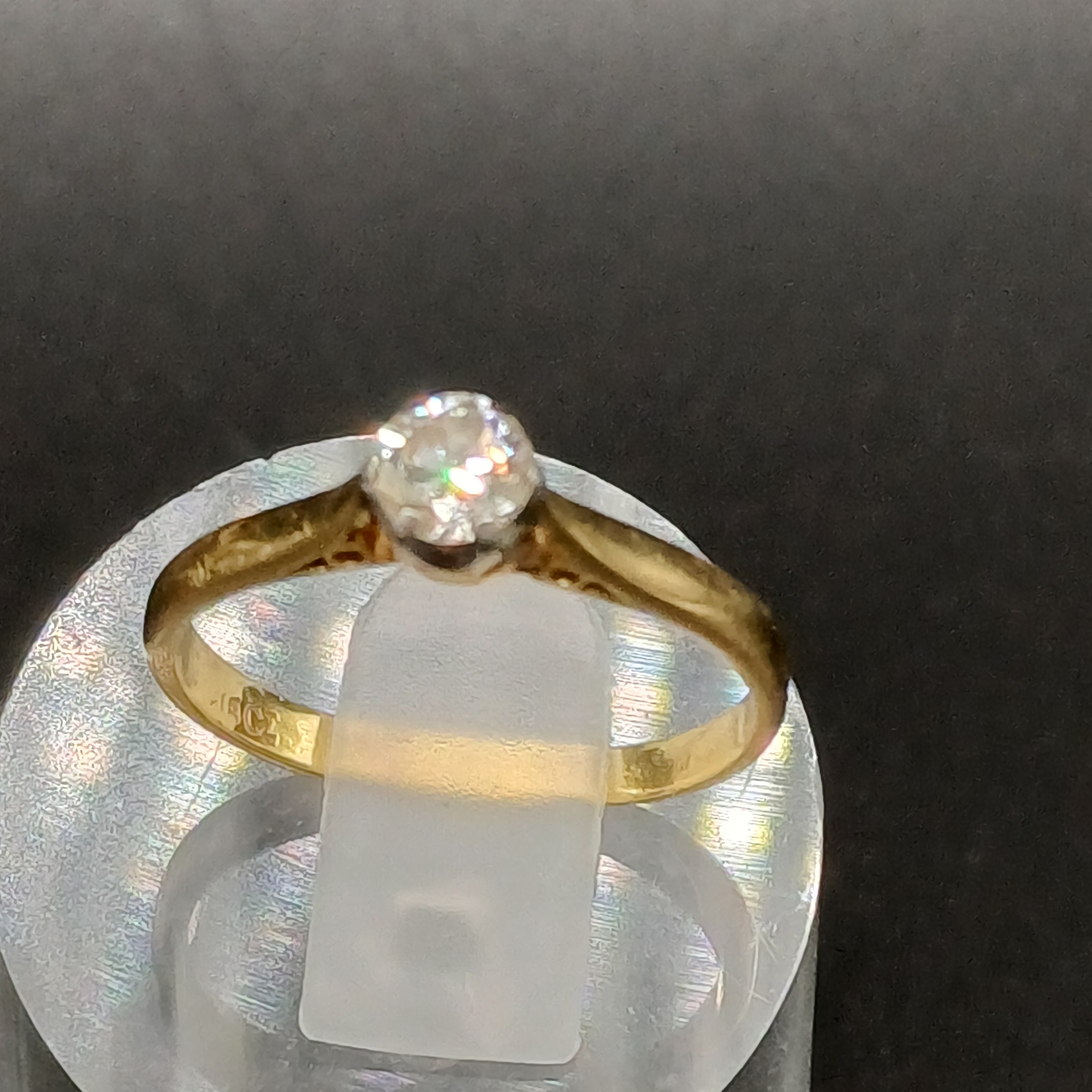 Solitaire Diamond Ring set in 18 carat yellow gold.