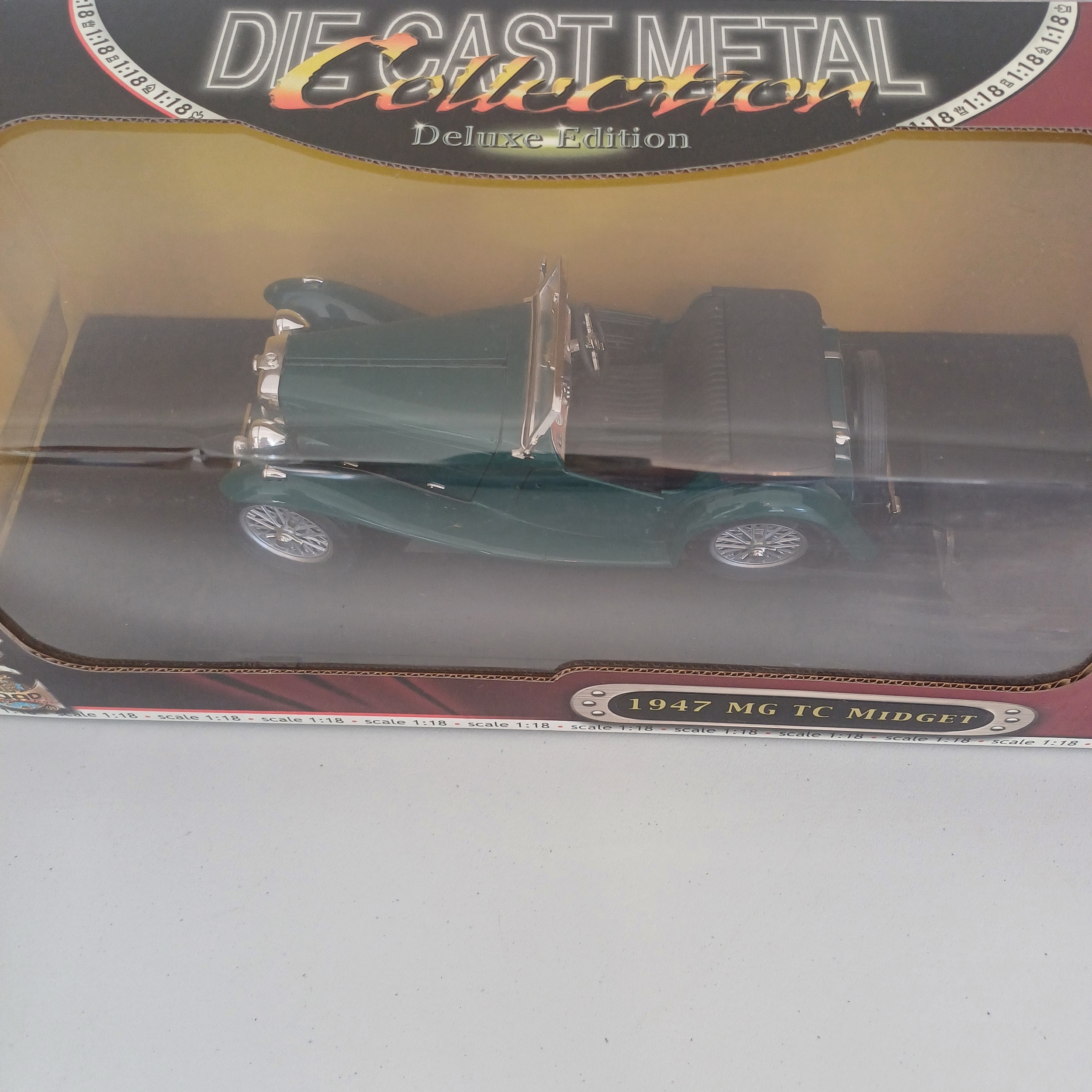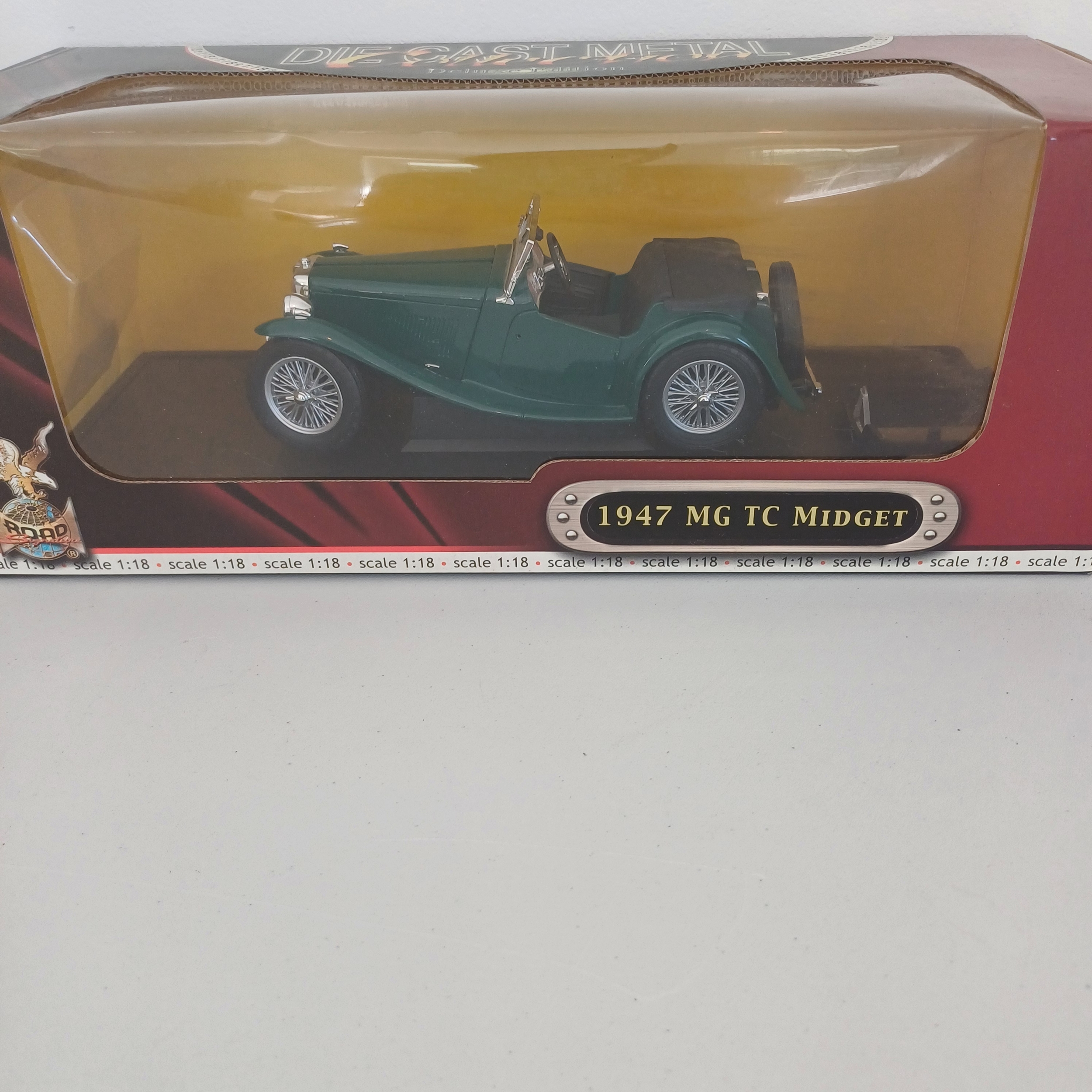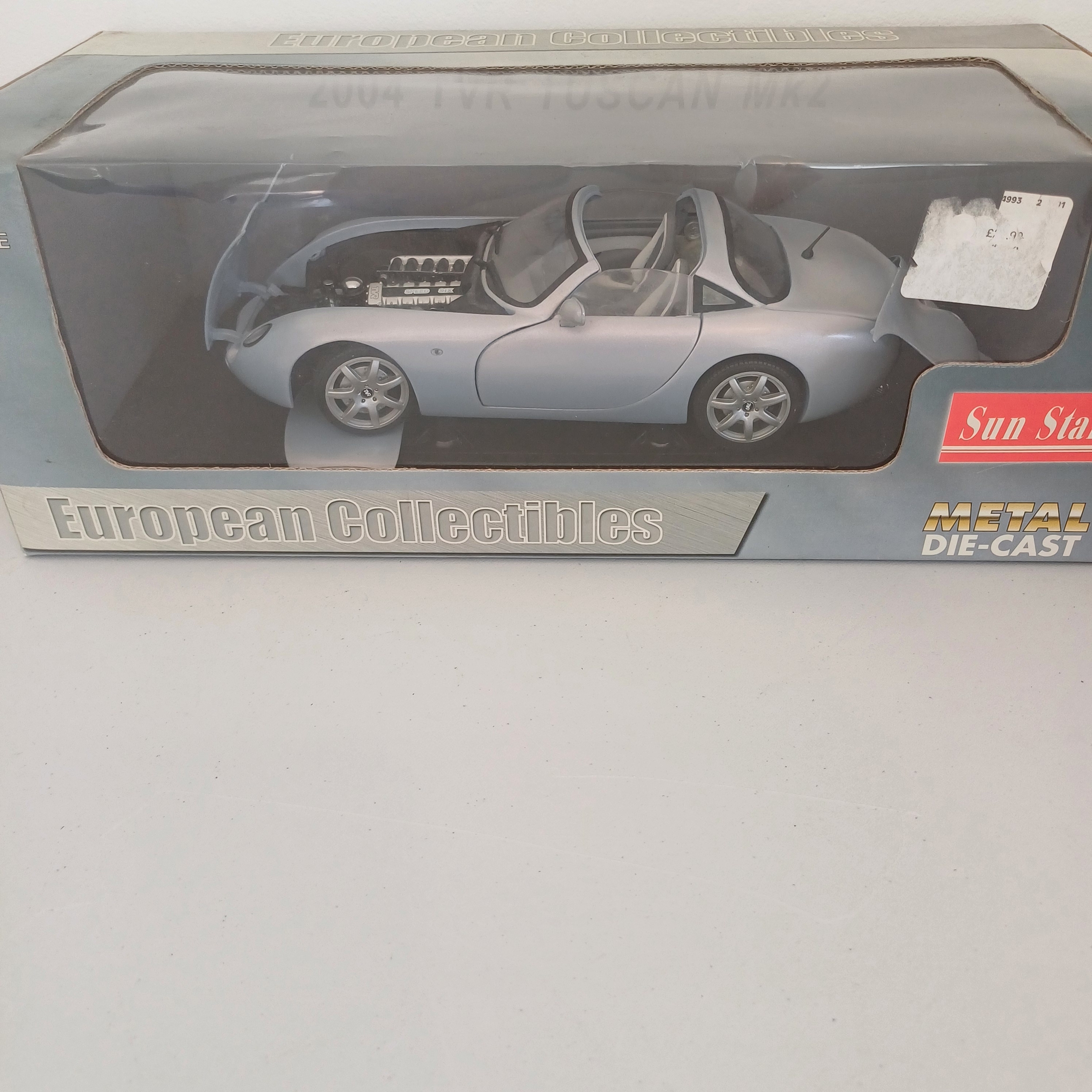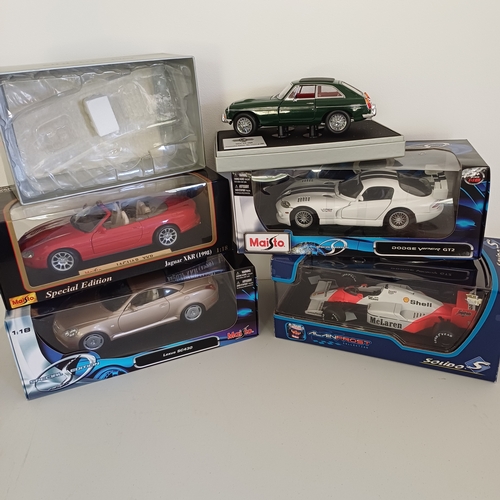 Collection of Six Scaled Boxed Model Cars: 1947 MG TC Midget; MK2 Escort; 1971 Jaguar E-Type; Austin 7; Morgan 4/4 Series II; TVR Tuscan Mk2 2004