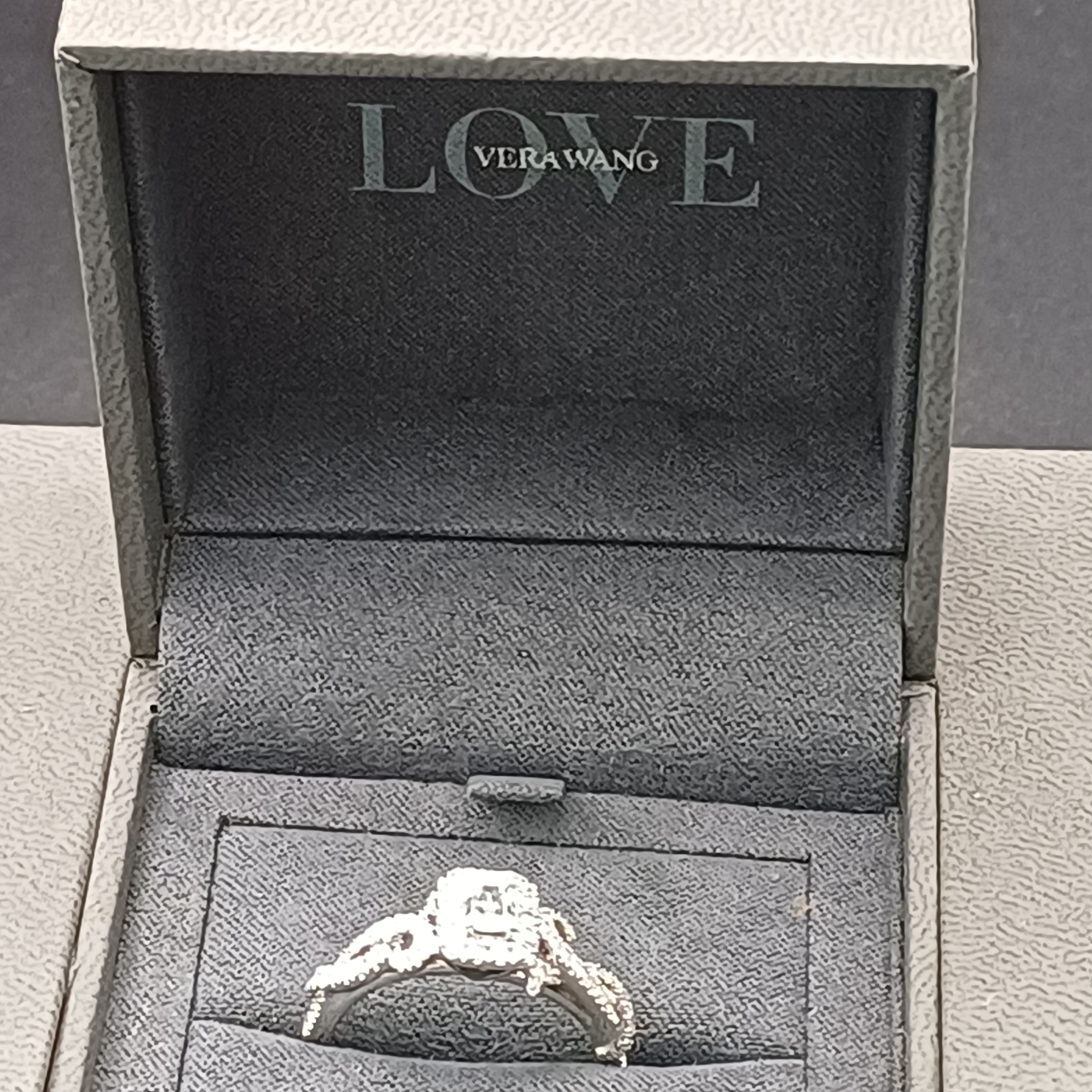 Vera Wang Love Diamond Cluster Ring set in 18 carat white gold. This is a really pretty ring in its original box and paperwork.