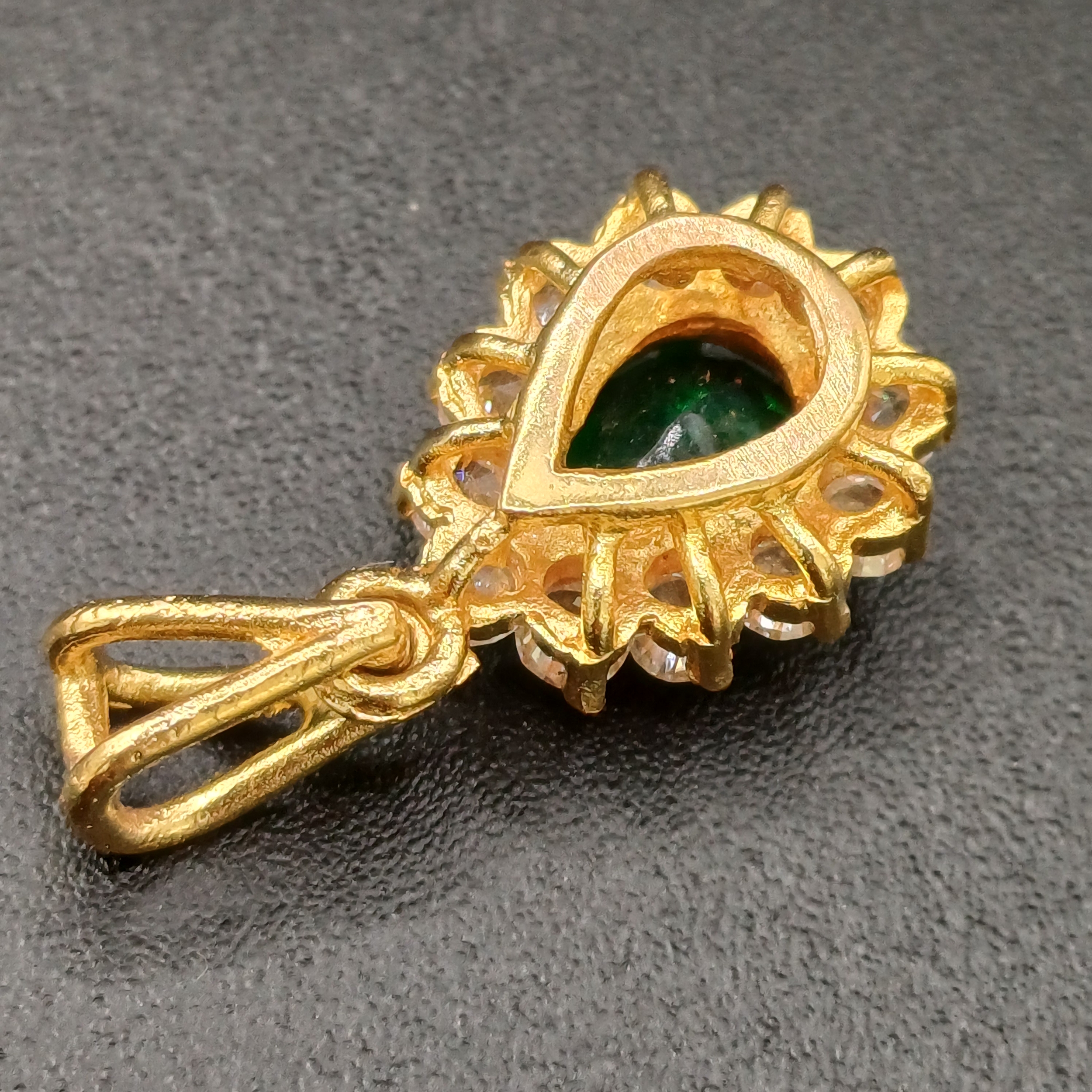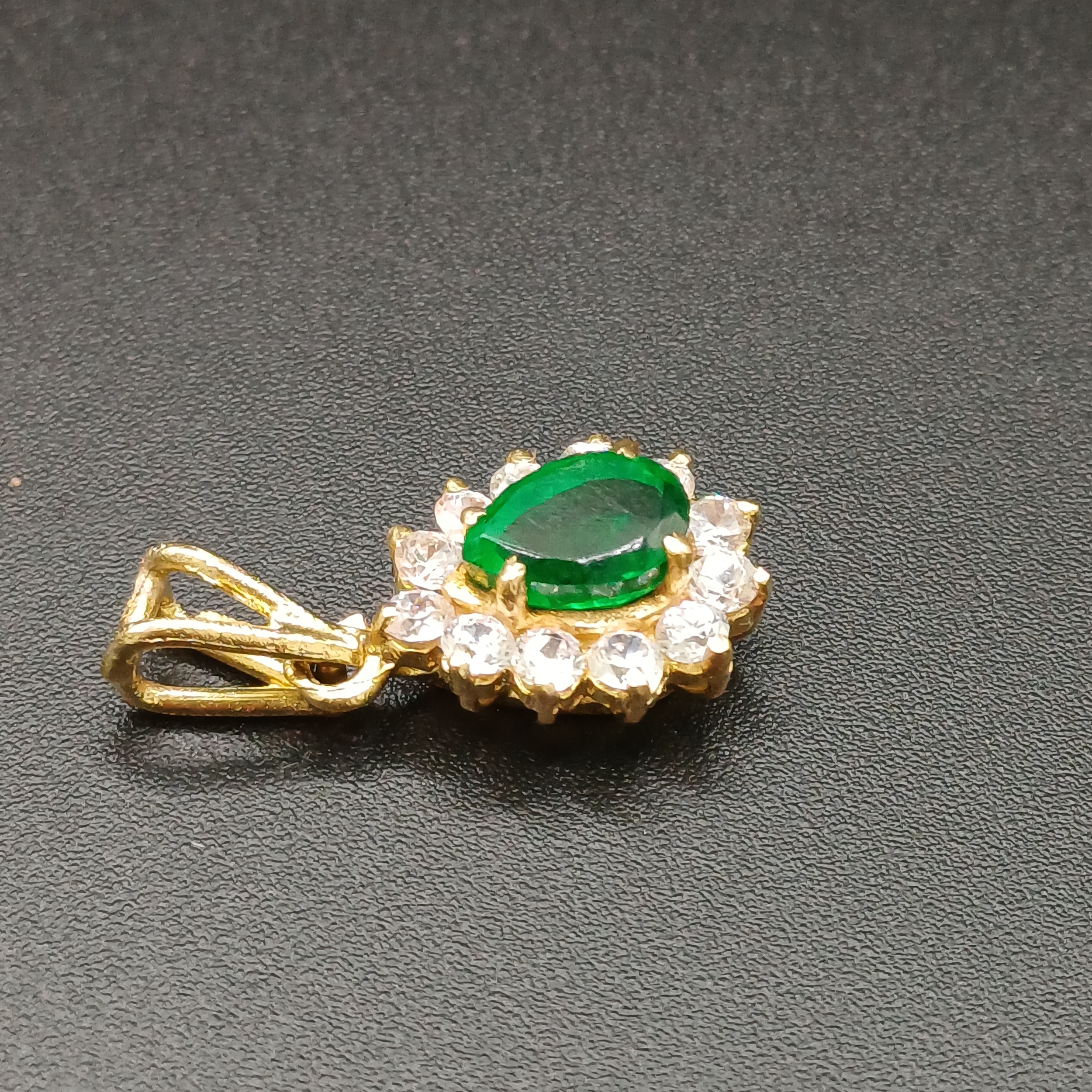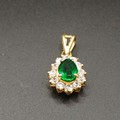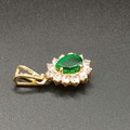 Very pretty Pear Shaped Emerald set in 18 carat yellow gold with white stones set around weighing 3.18g