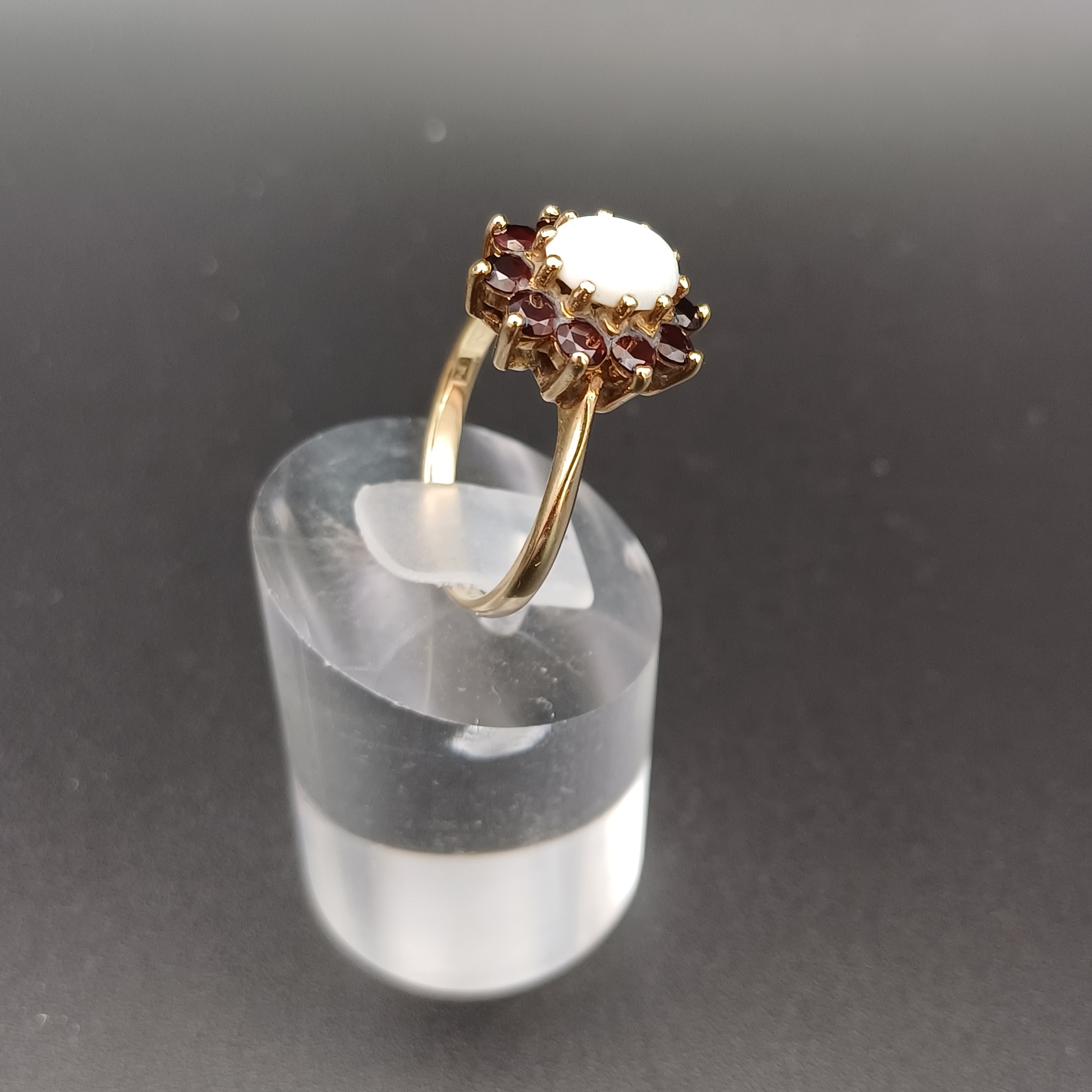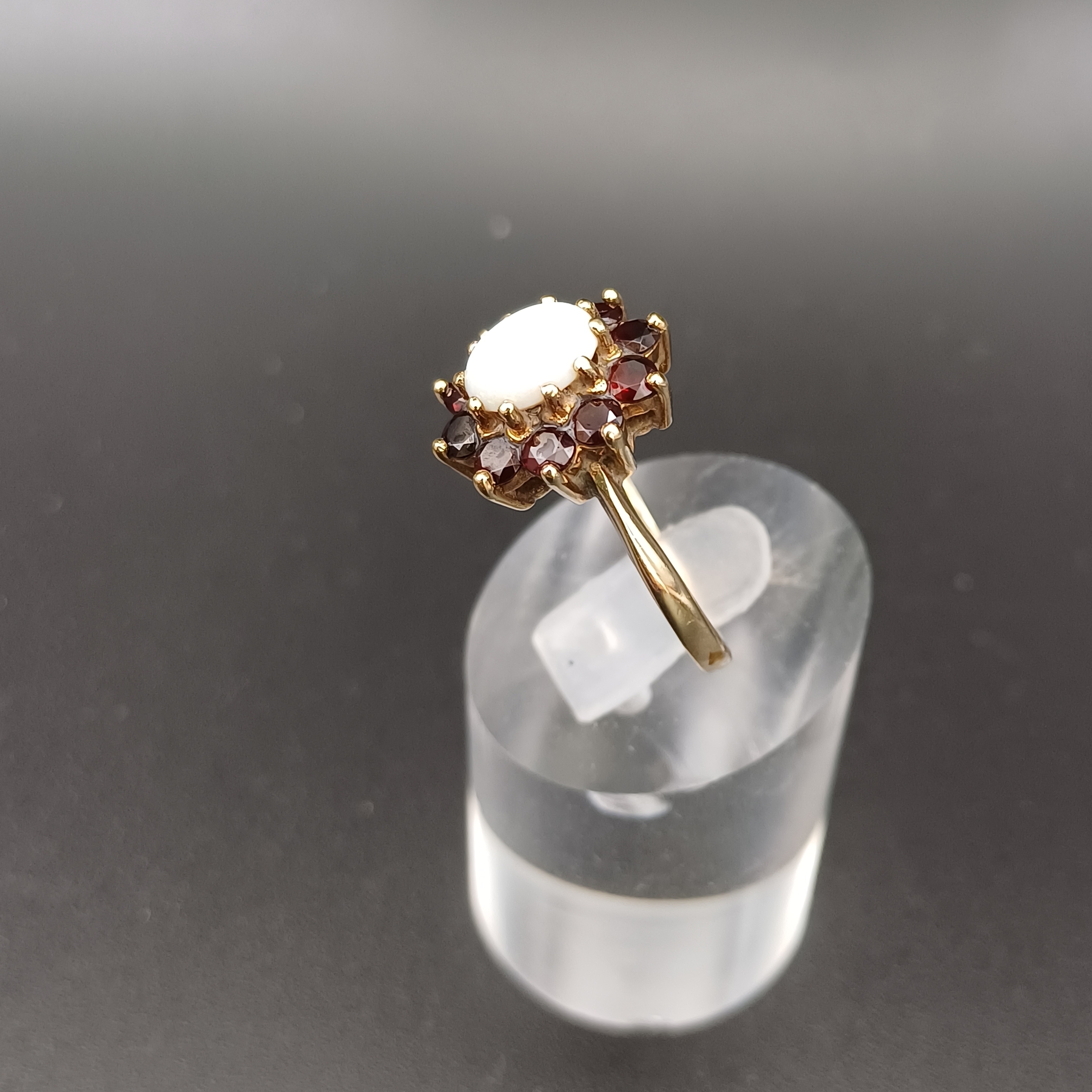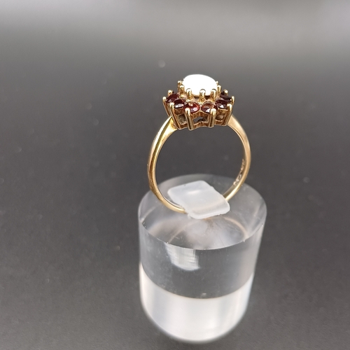 Opal and Ruby Cluster Ring- weight 3.26g- size O / P- 9 ct