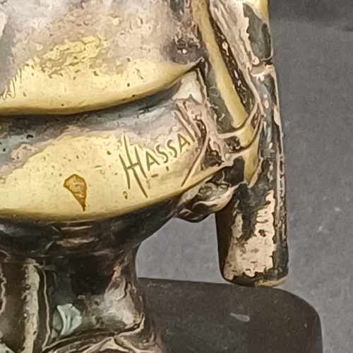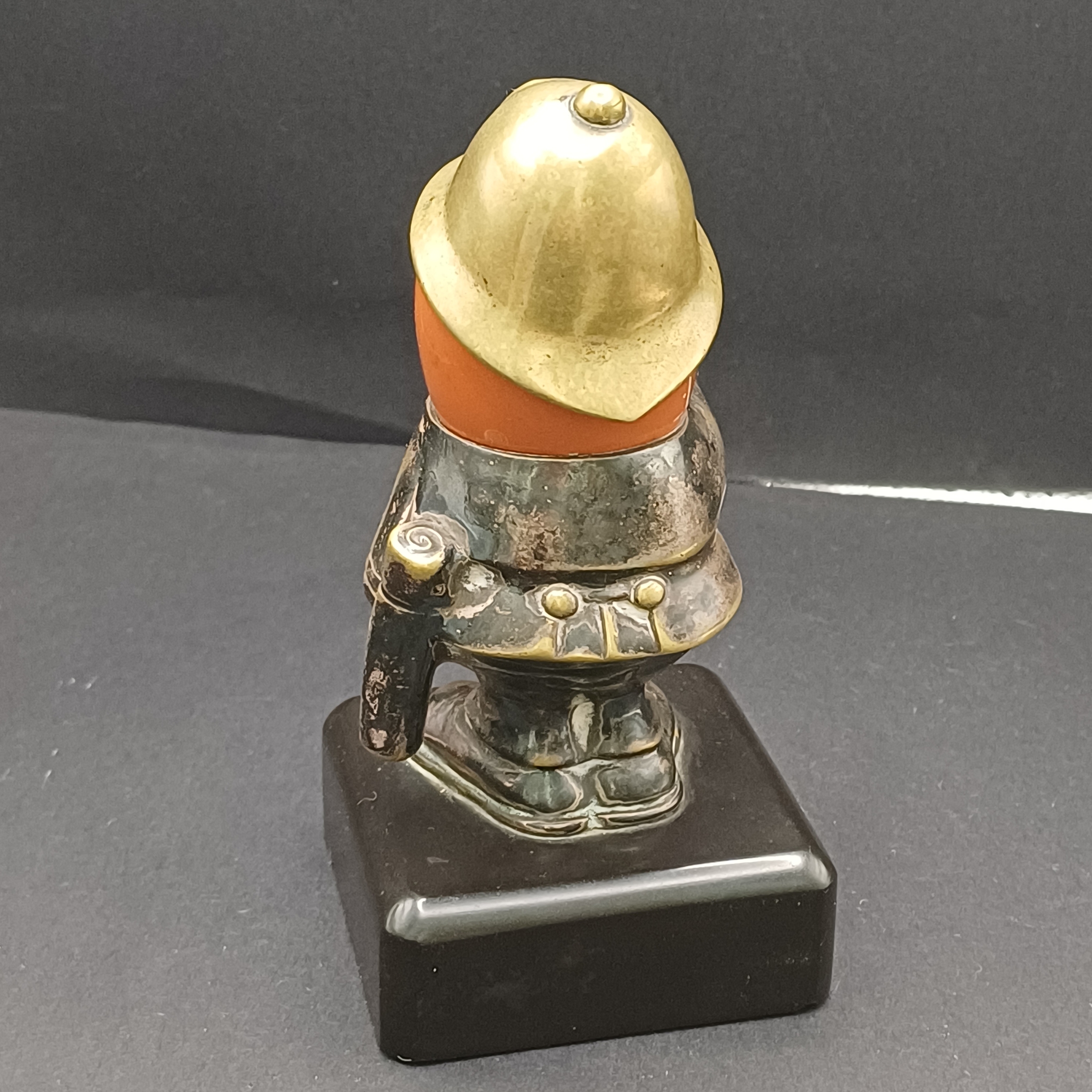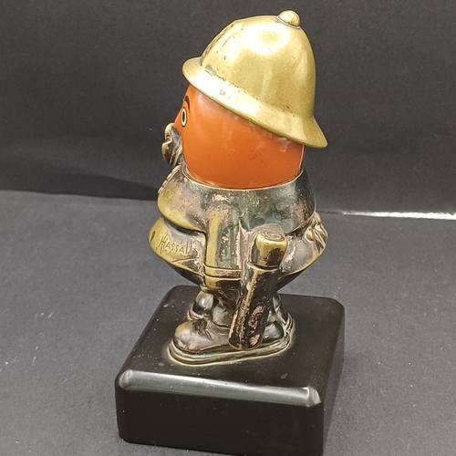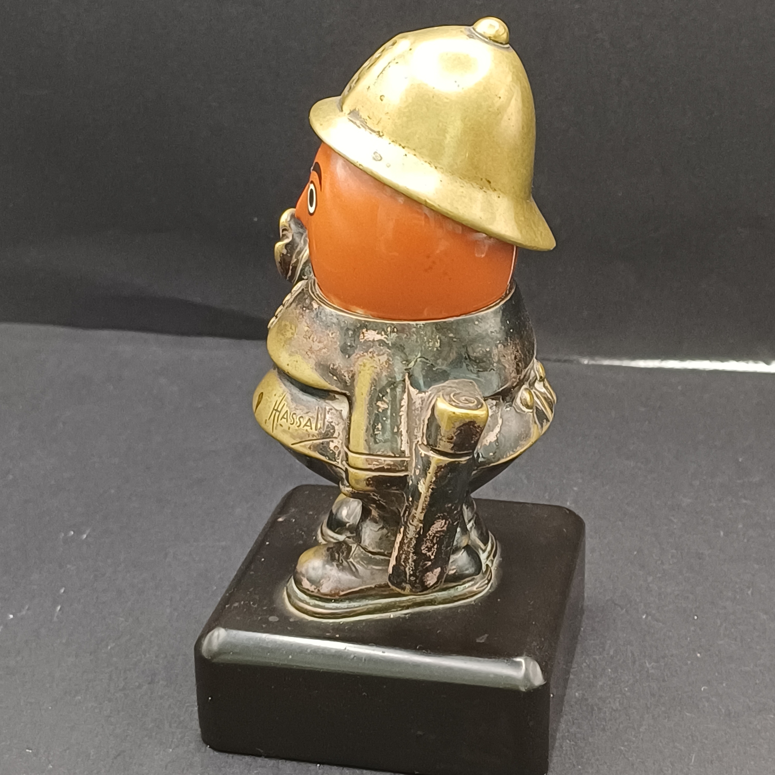 A John Hassall Policeman Car Mascot in brass with a moveable pottery head and brass helmet and it is signed as can be seen in the photos. This is in an excellent condition and has been mounted on a heavy base.