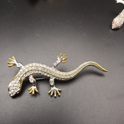 A Selection of Three Brooches of Gecko/ Salamander: