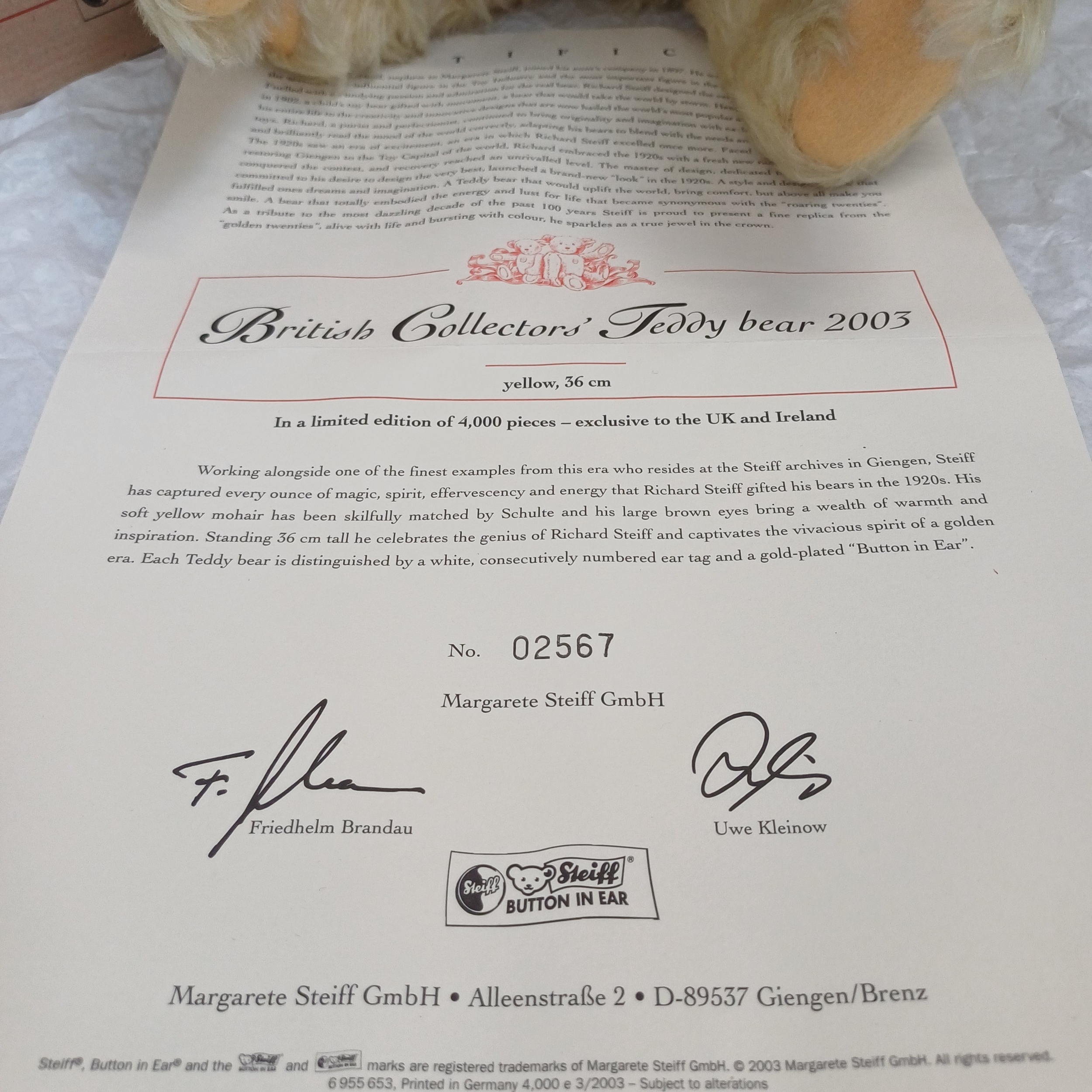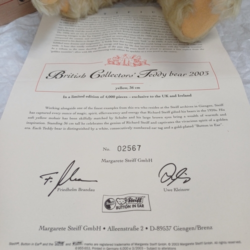 Steiff British Collectors 2003 Teddy Bear Number 2567 of 4000 with his original box and Certificate