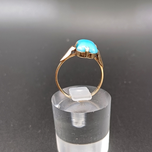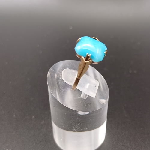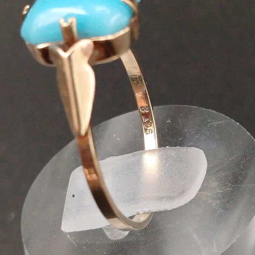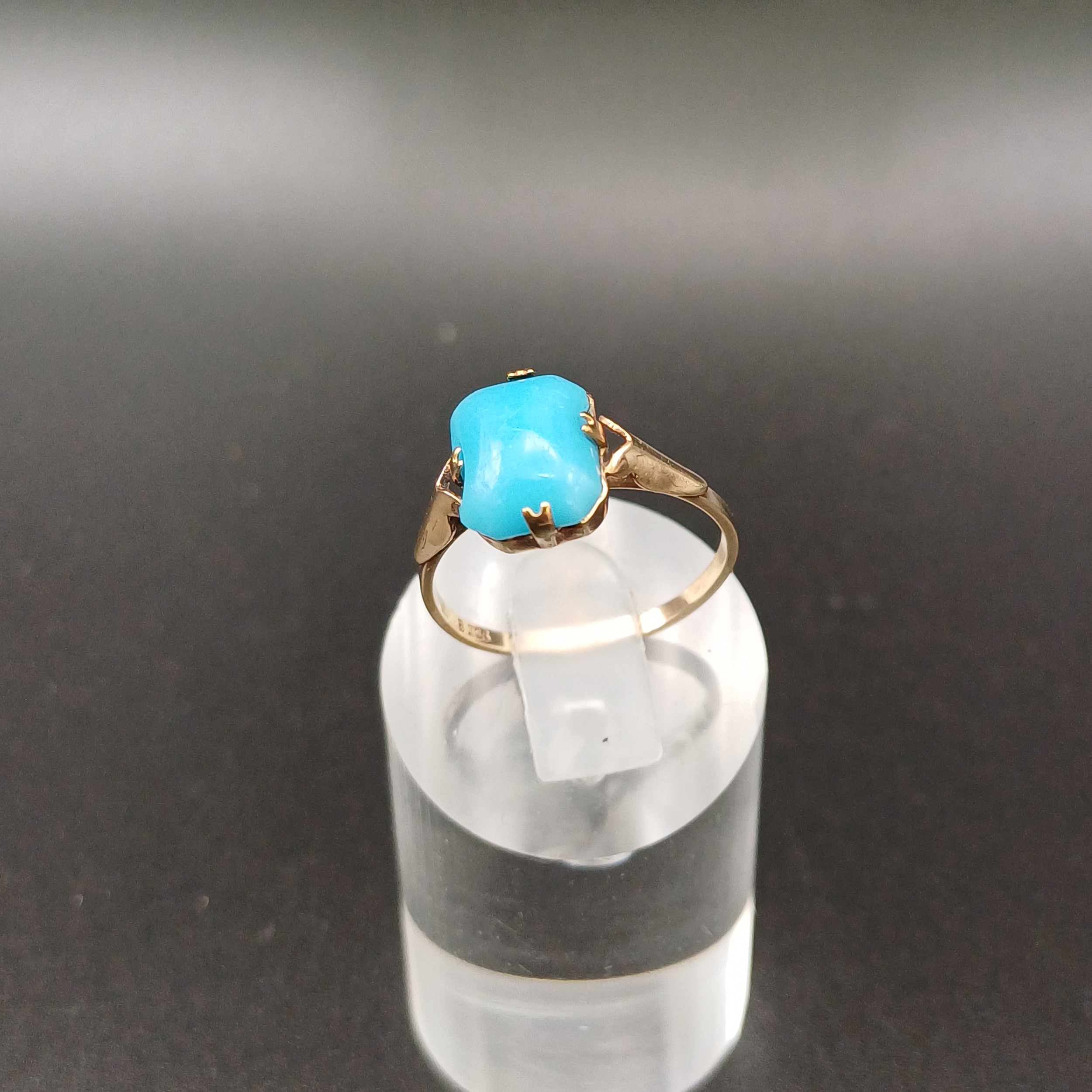 Polished Turquoise Ring- 9 ct- size P- weight 1.90 g