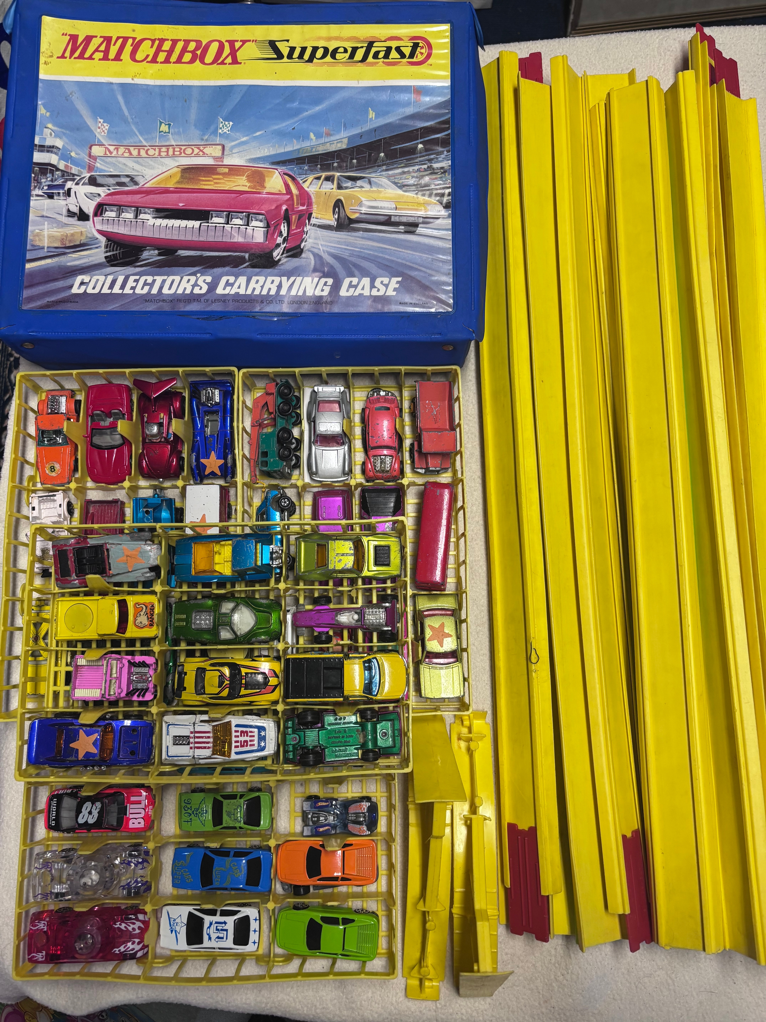 Vintage Matxhbox cars and track