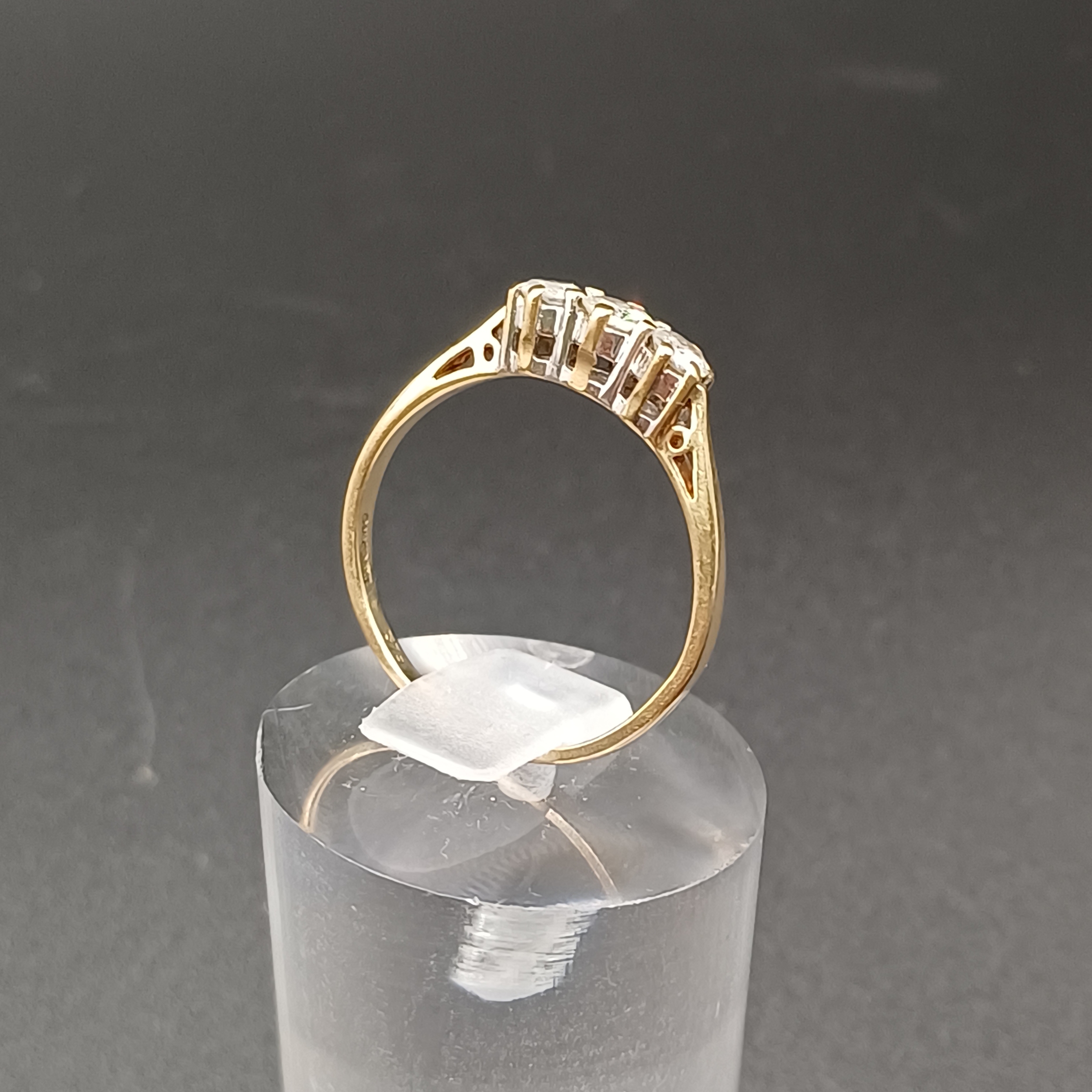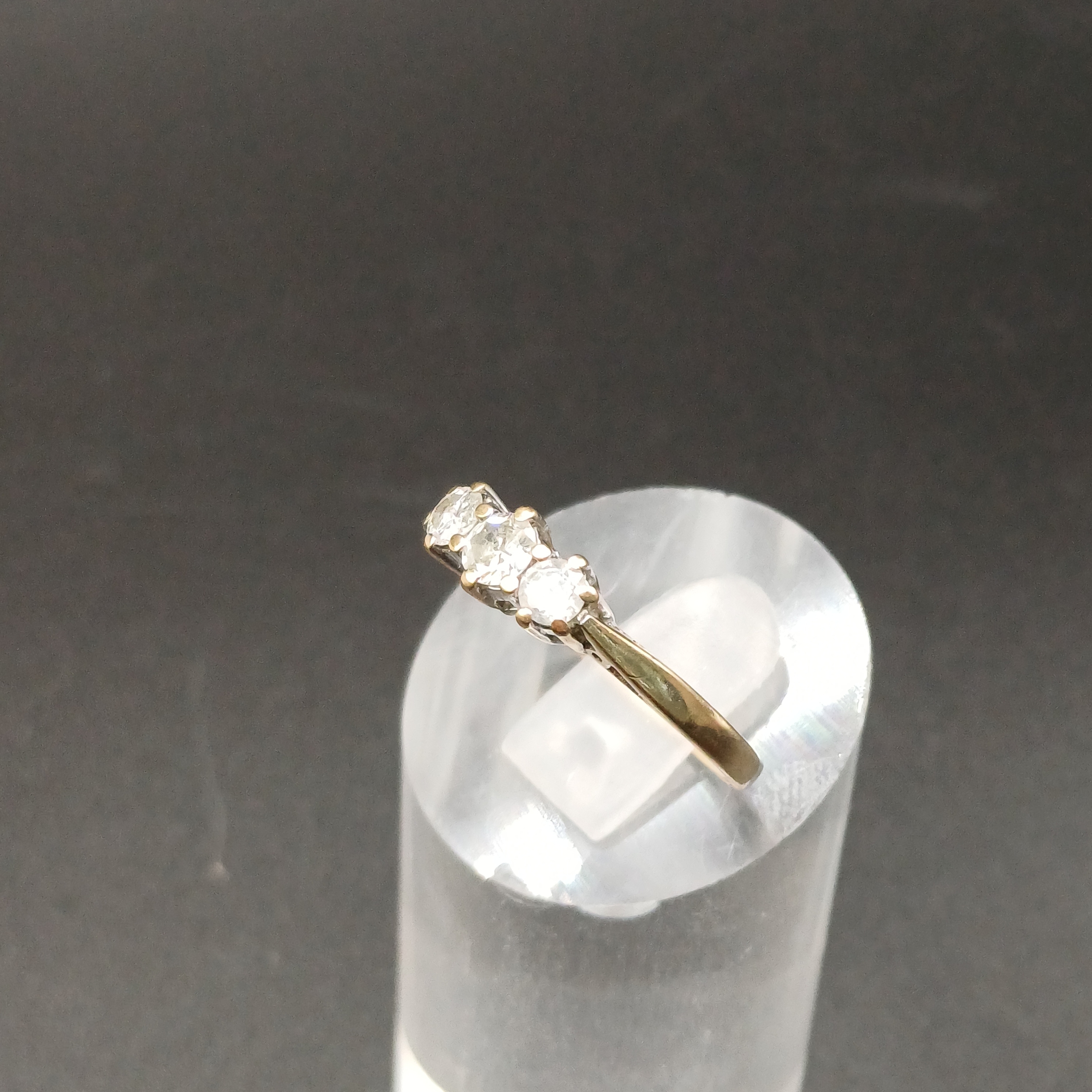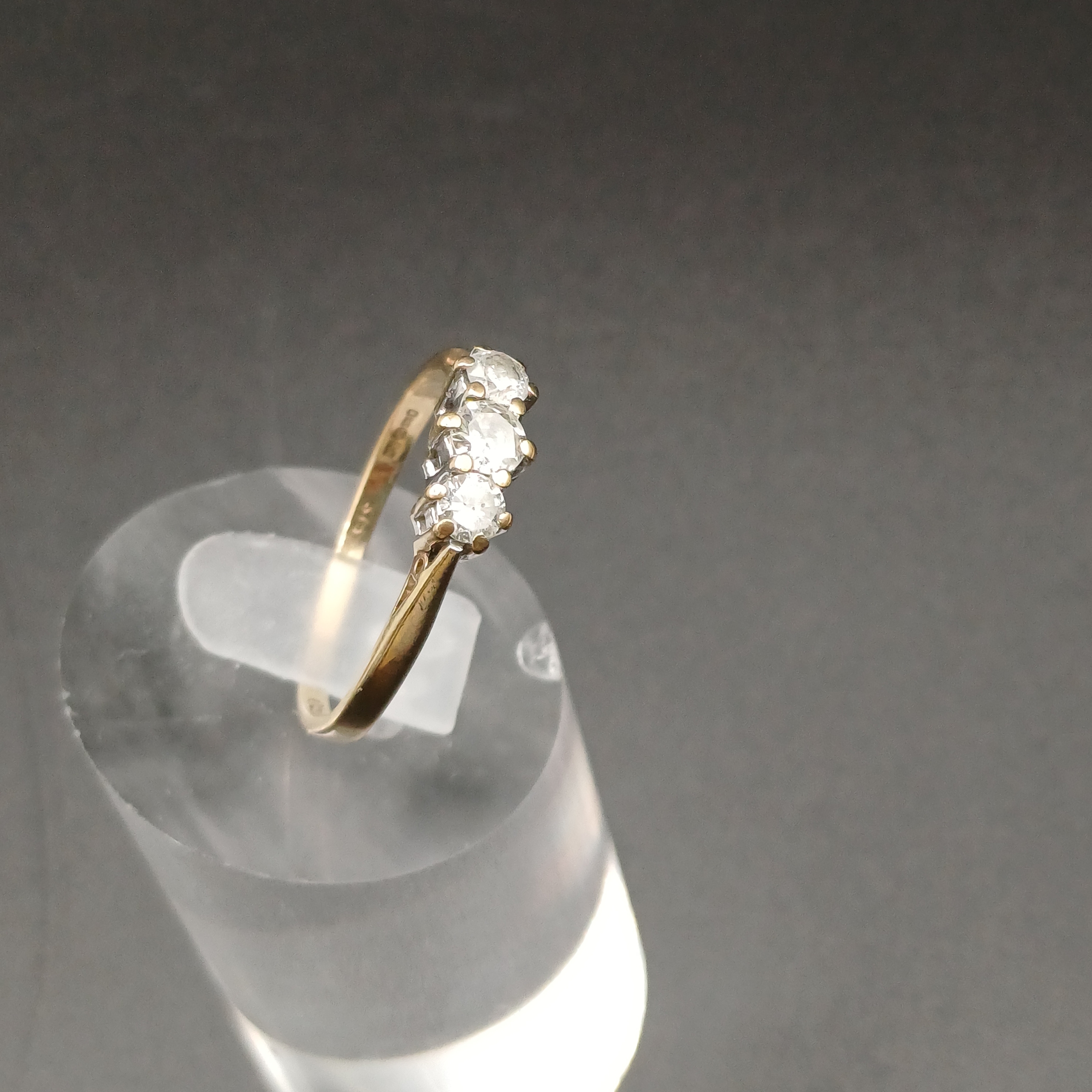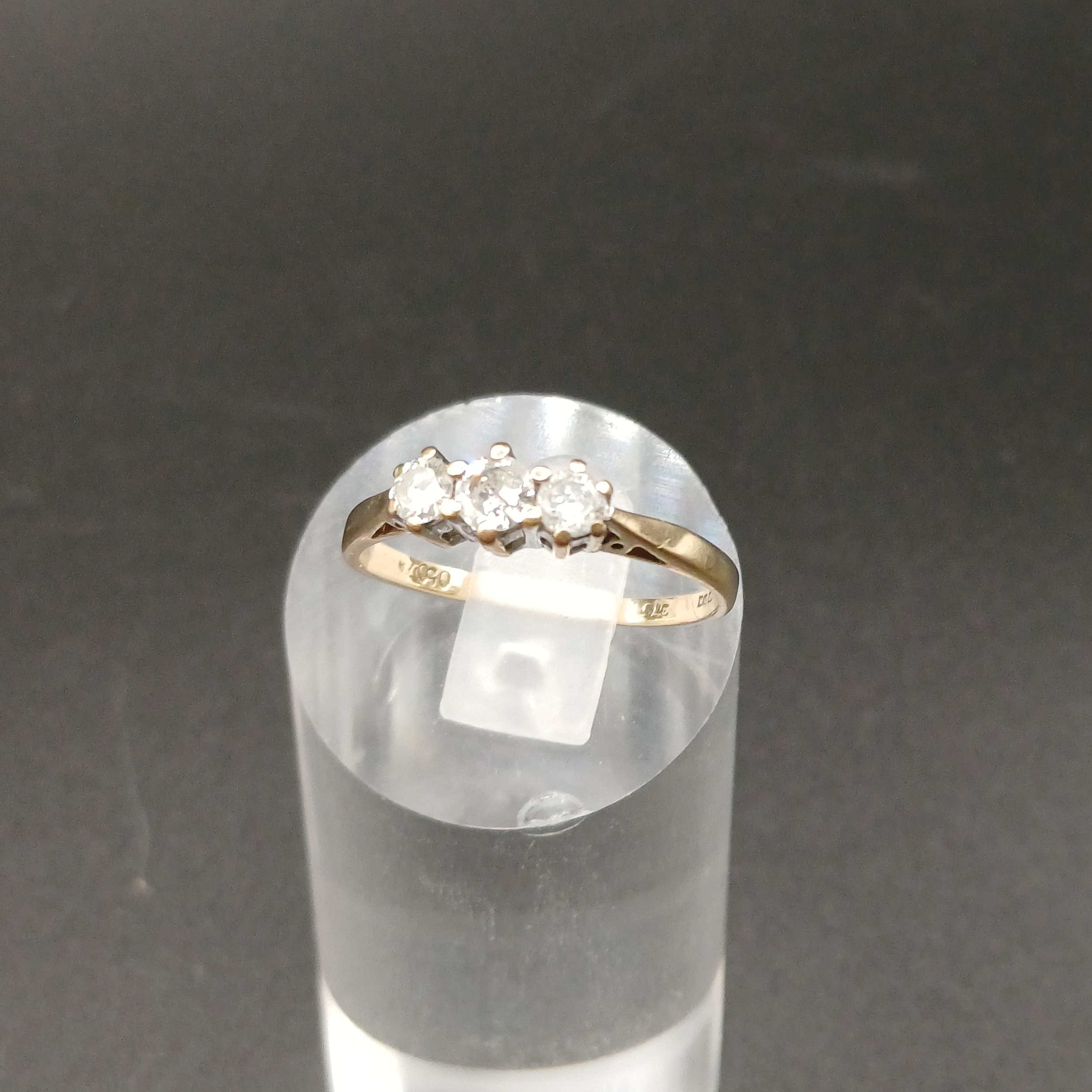 Three Stone Diamond Ring set in 9 carat yellow gold. - weight 2g- size O