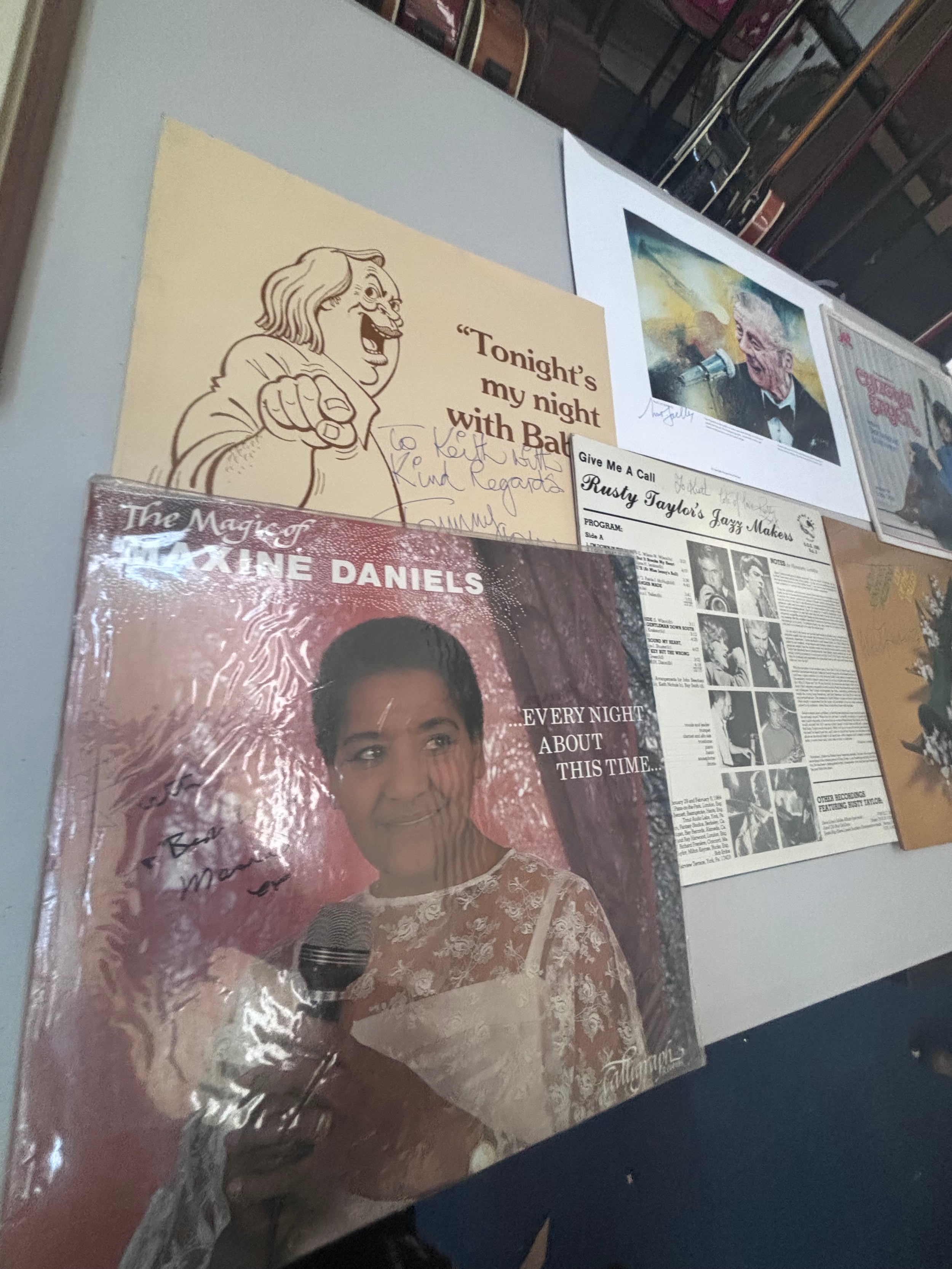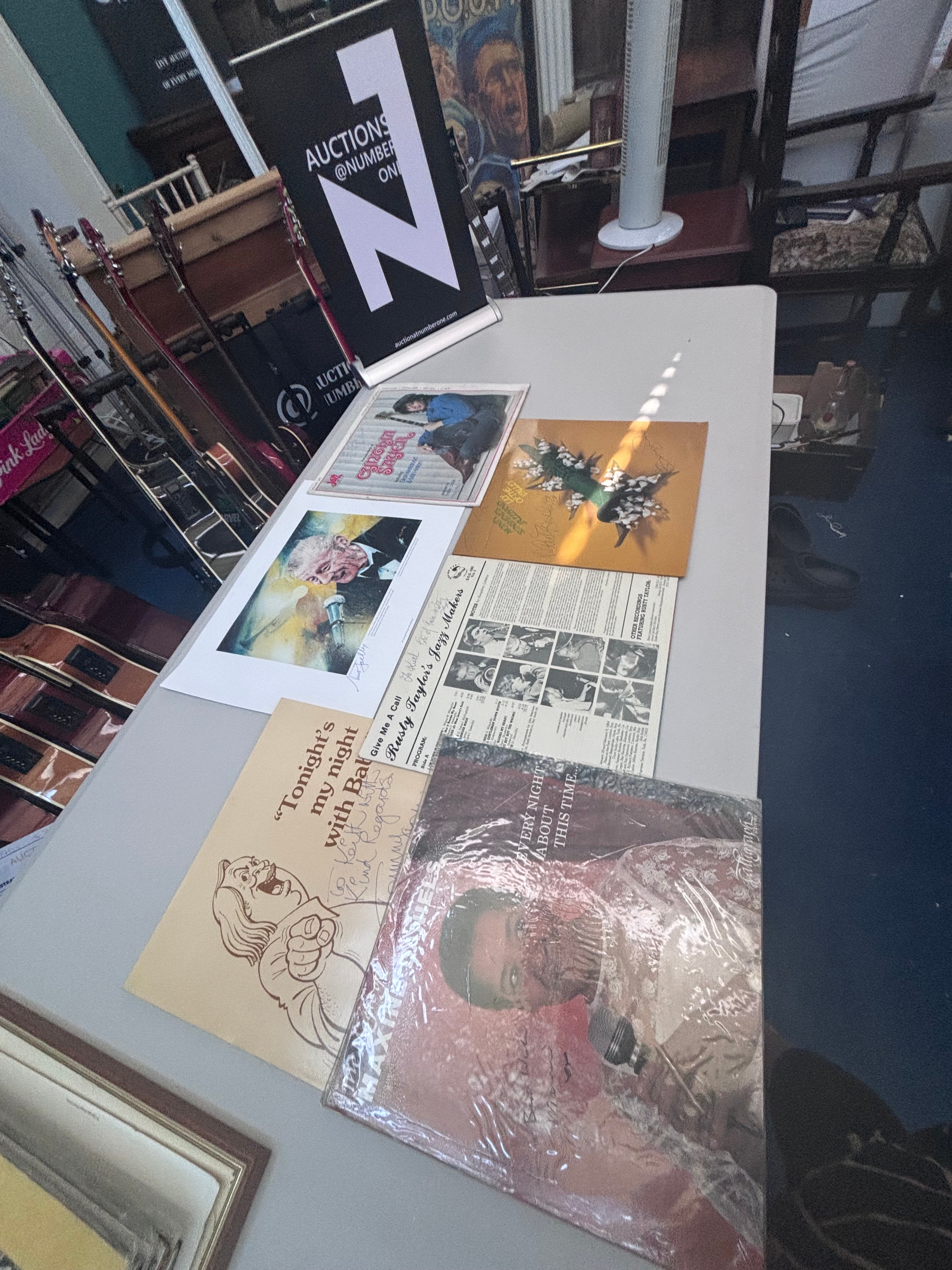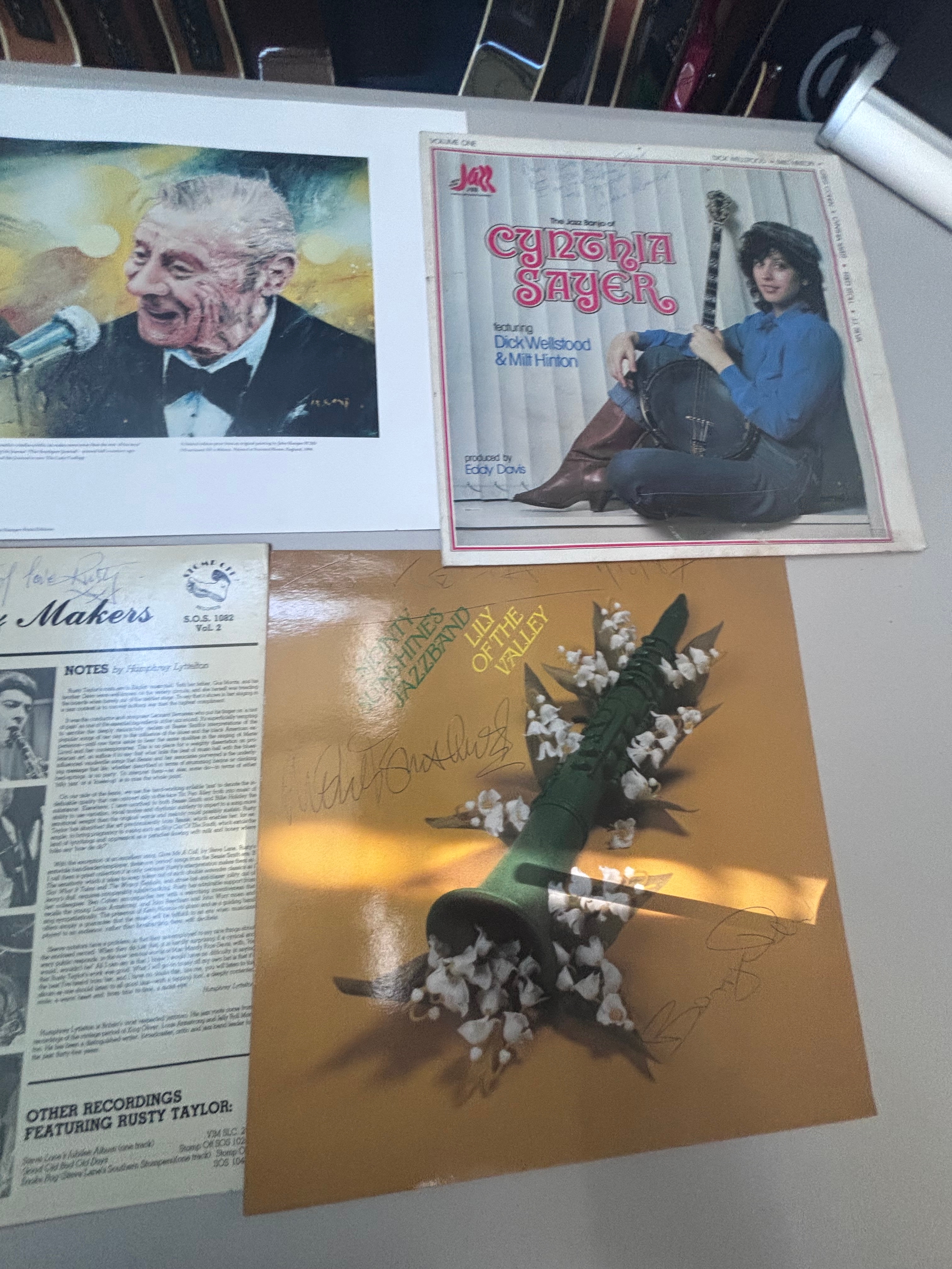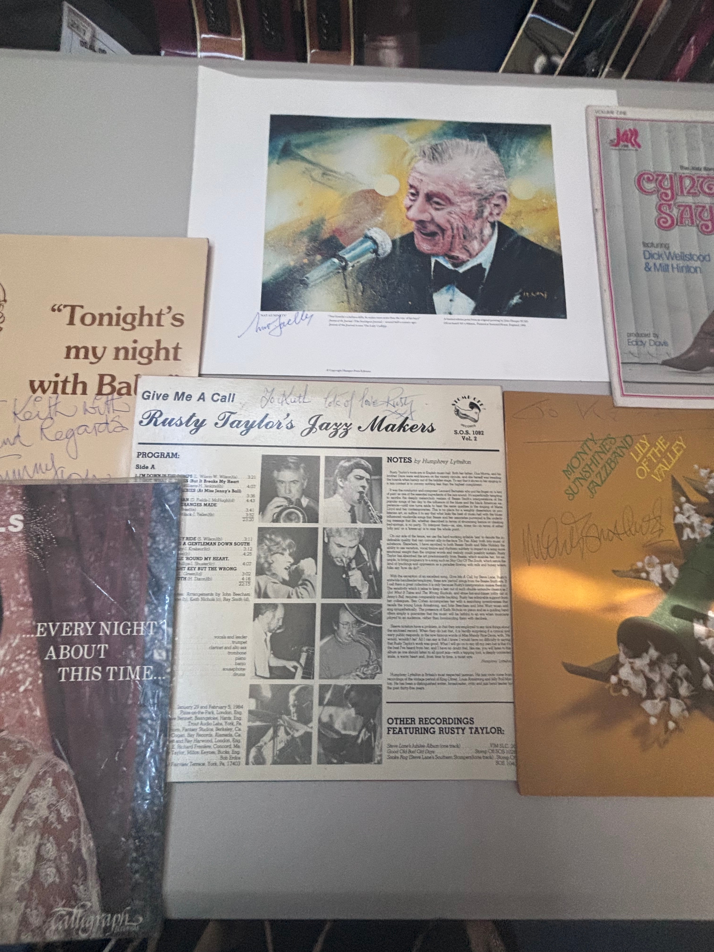 Signed collection of vinyls and Nat Gonella print.