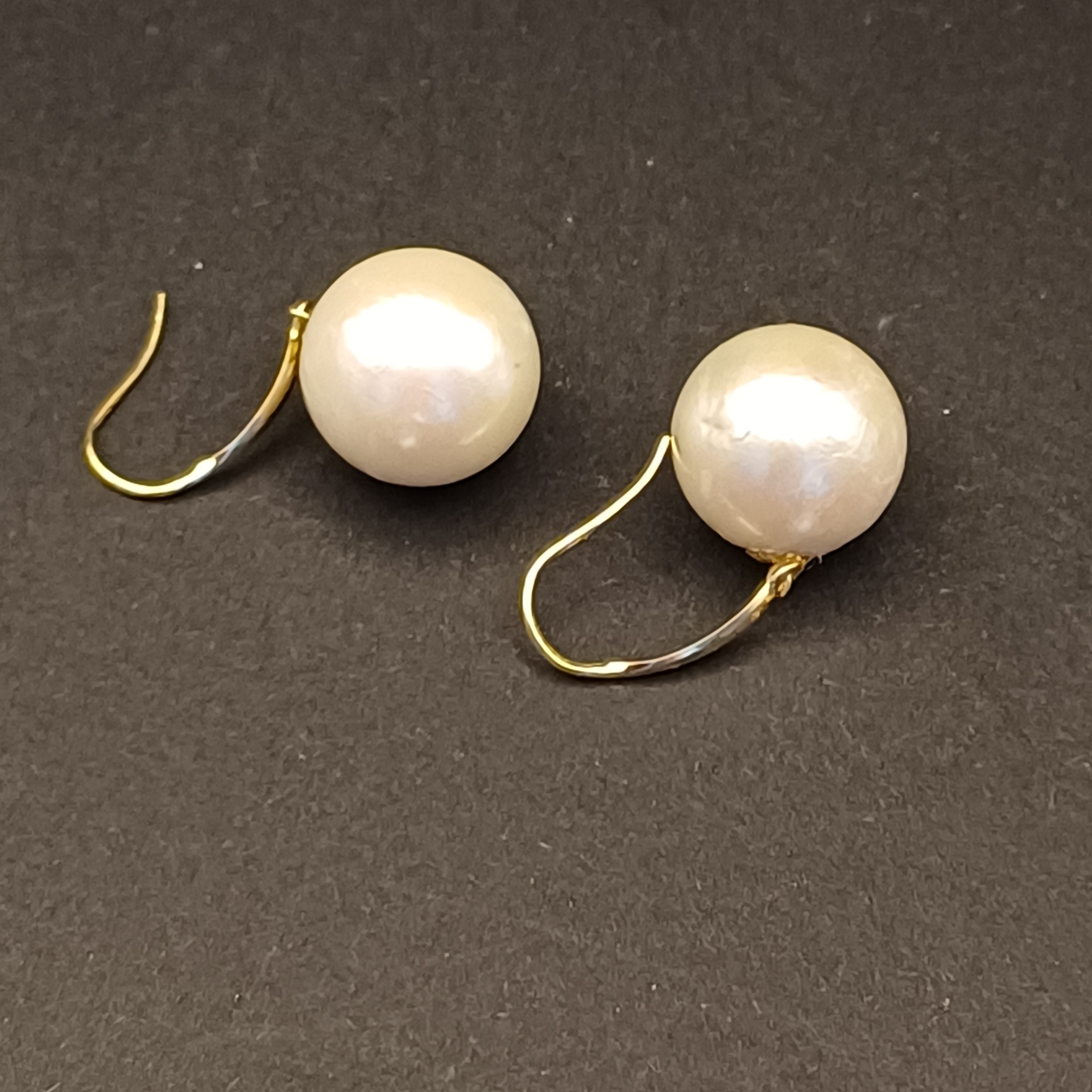 South Sea Pearl Earrings set on 18 carat yellow gold, very pretty.