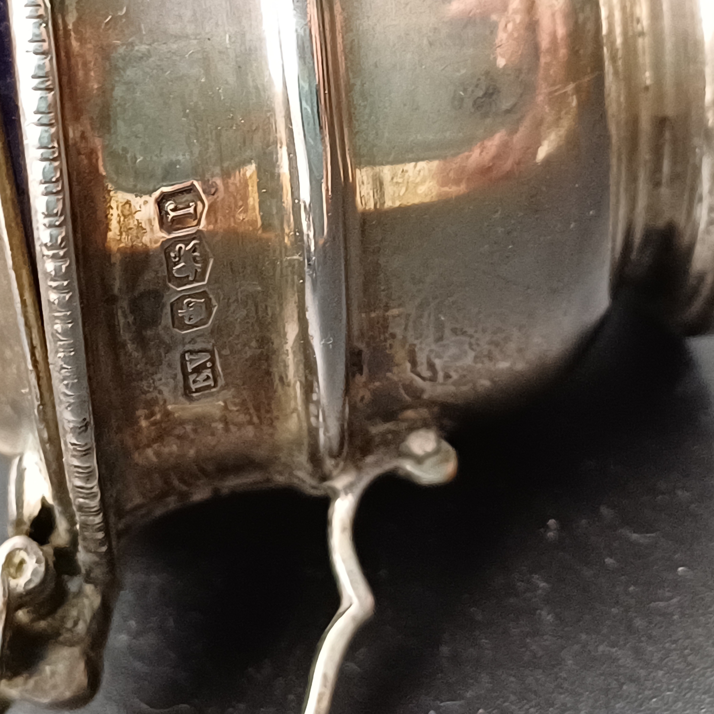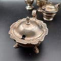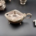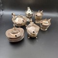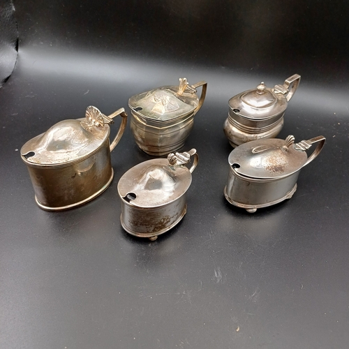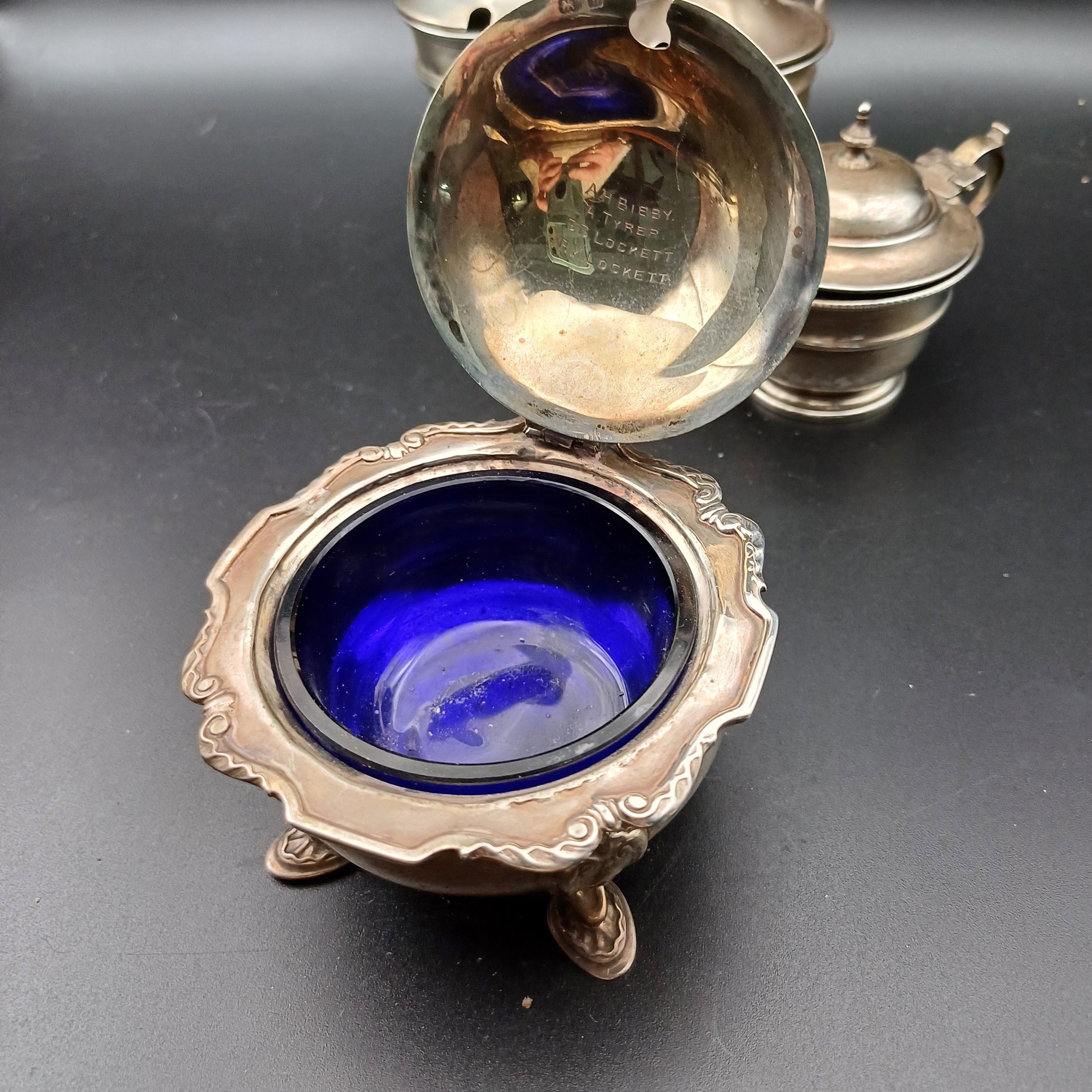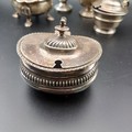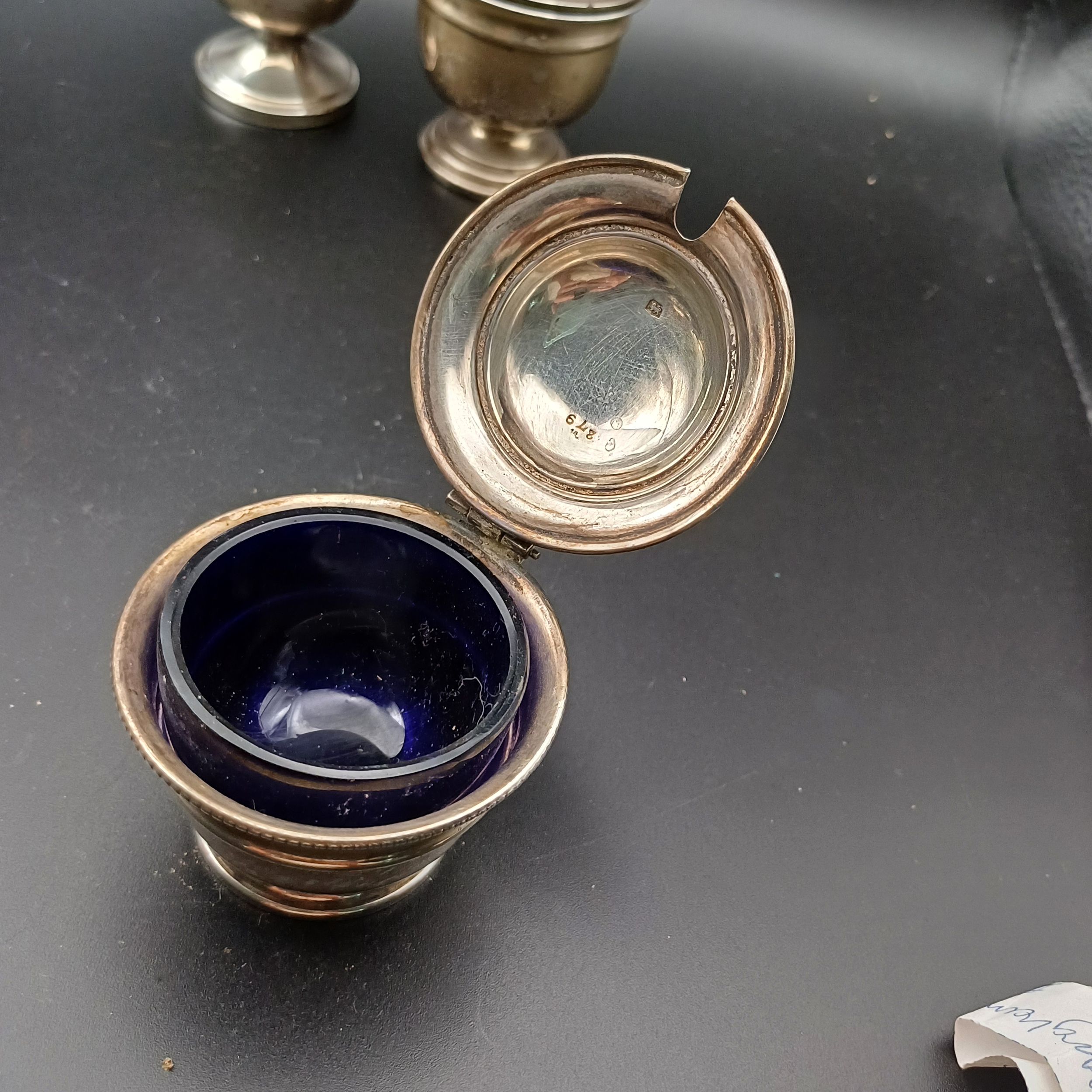 Selection of Silver Mustard Pots with Assay from London, Chester, Birmingham, Sheffield some with glass inserts. Total weight (without inserts) 419g