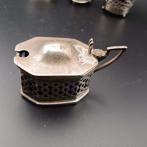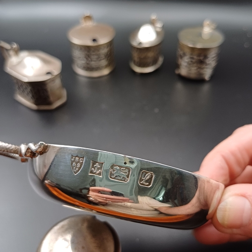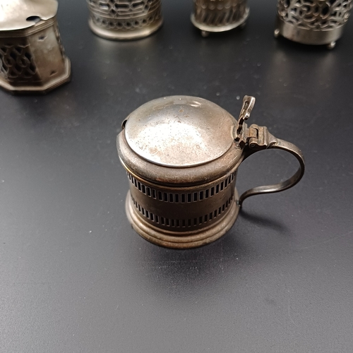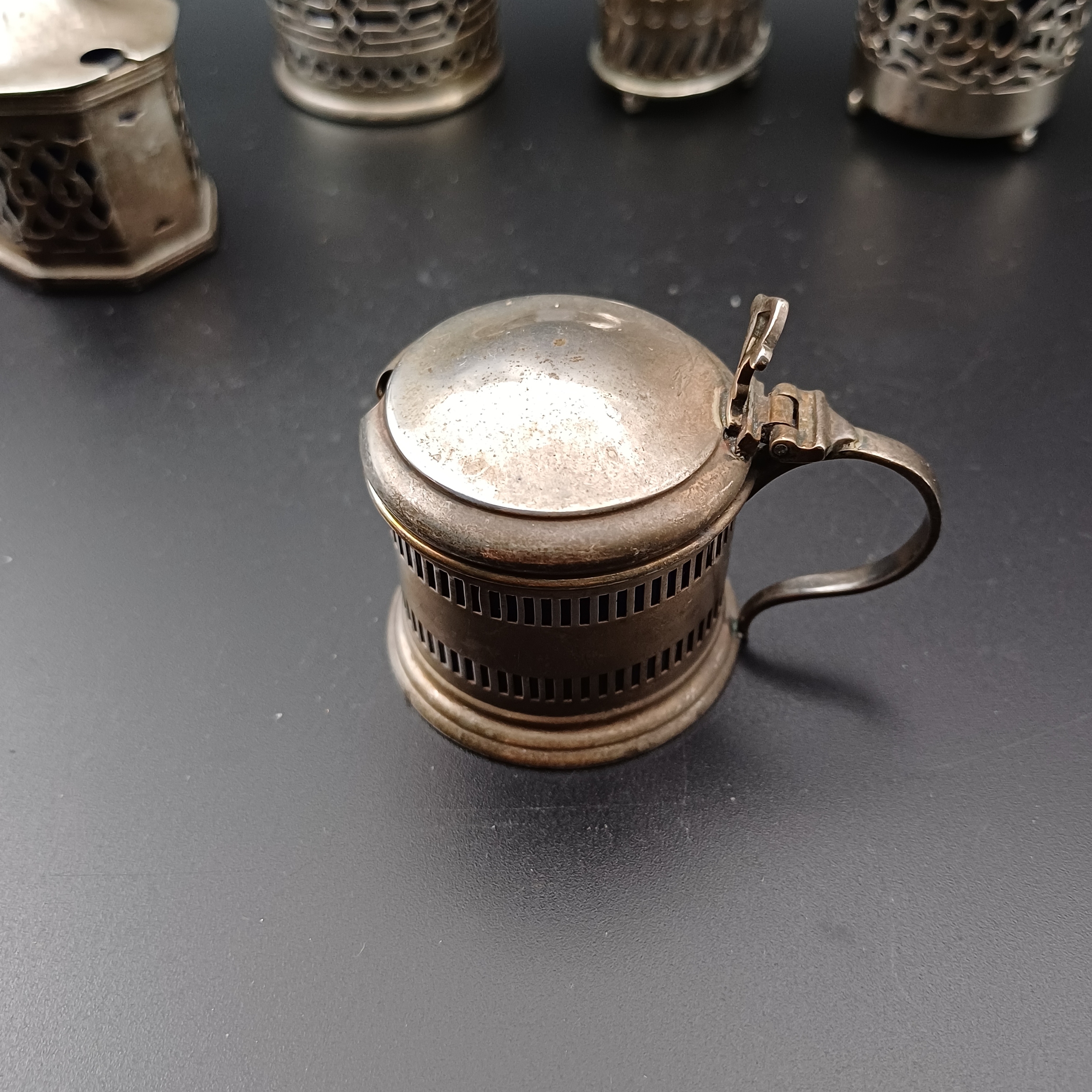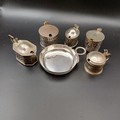 Selection of Silver Mustard Pots - Birmingham - some have glass inserts and also a Scottish 'slurp dish'. Total weight without the glass inserts 296g