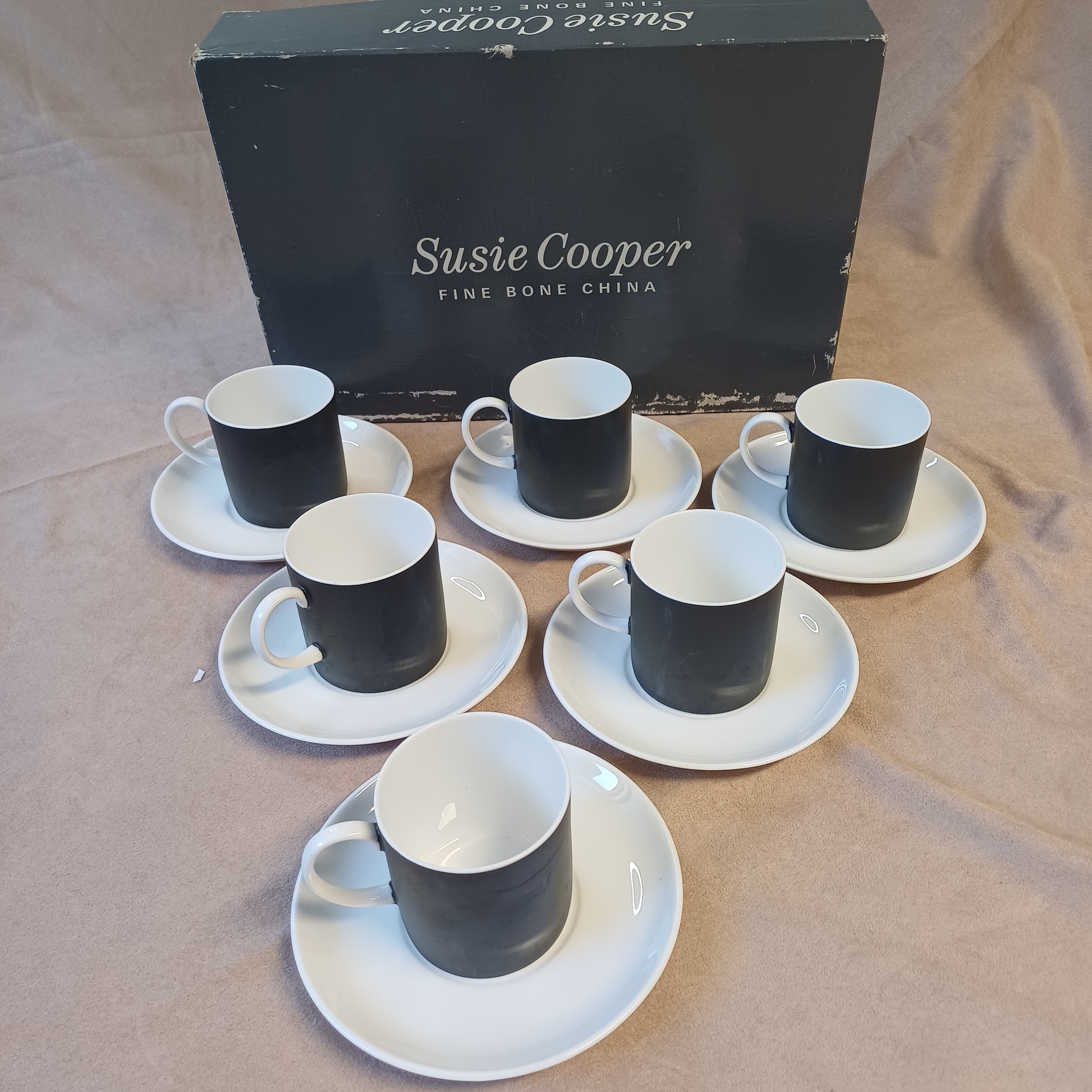 Wedgwood: Susie Cooper 'Contrast Dinnerware' C2068 Set of Six Cups ands Saucers in original box. In very good condition.