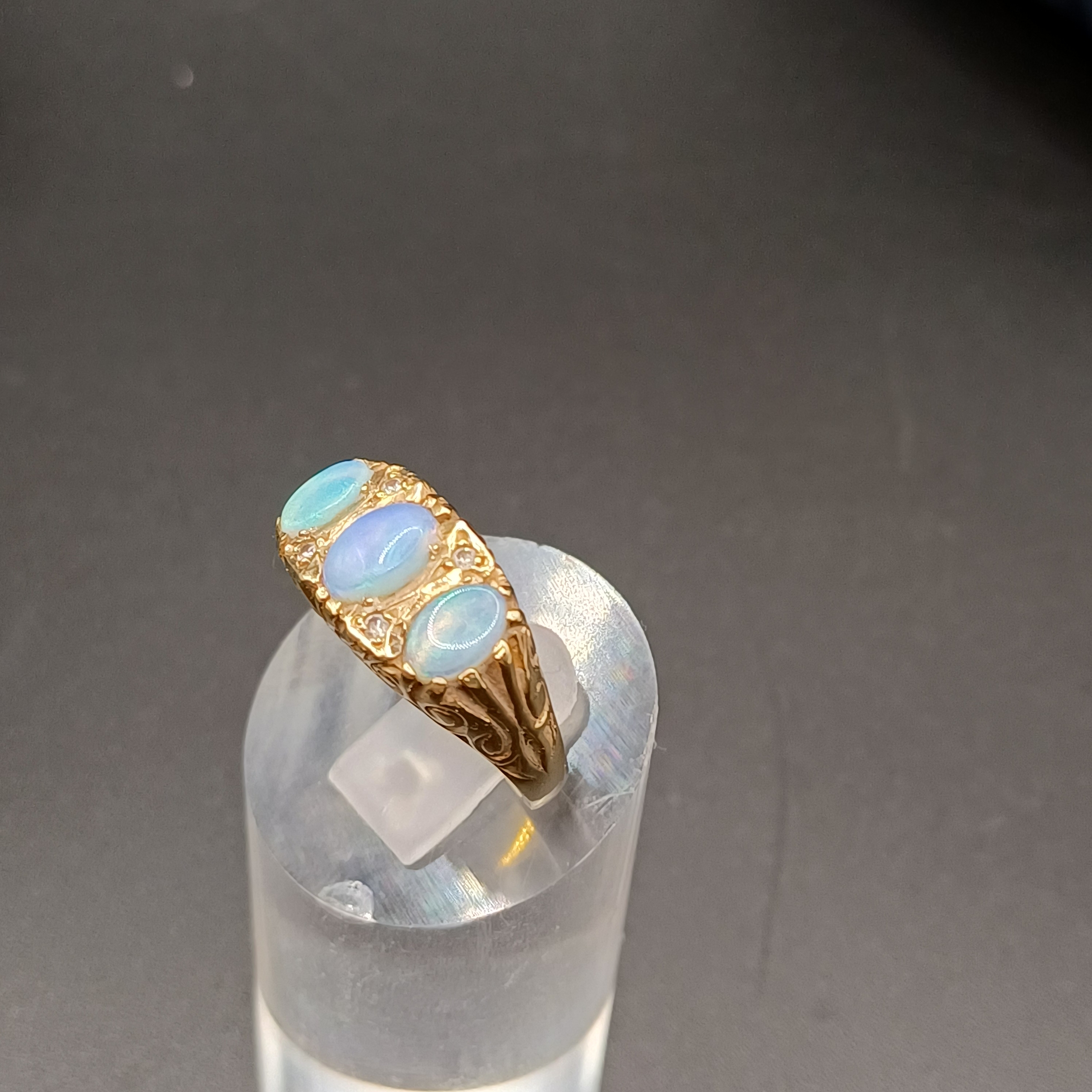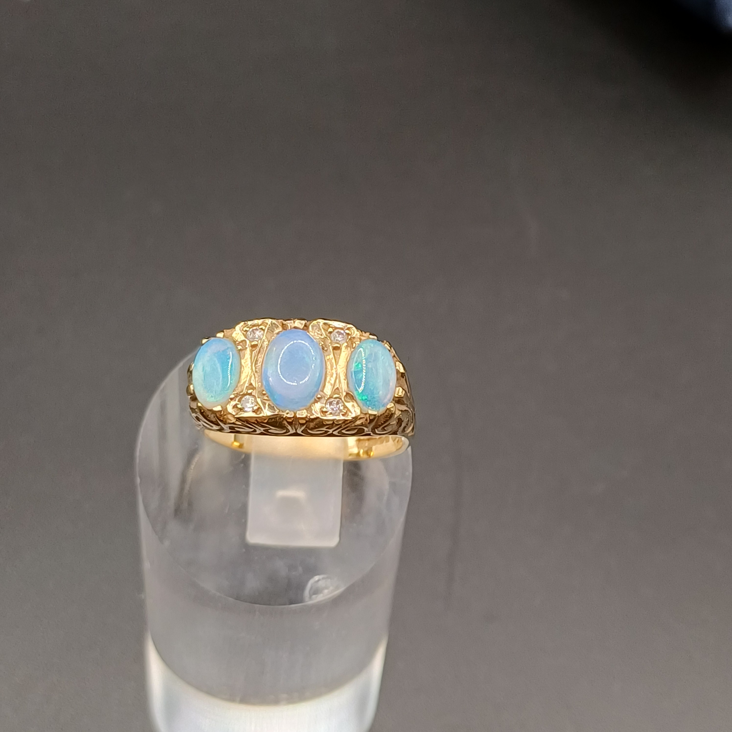 Opal and Diamond Ring set in 9 carat yellow gold.- weight 4.30g- size L