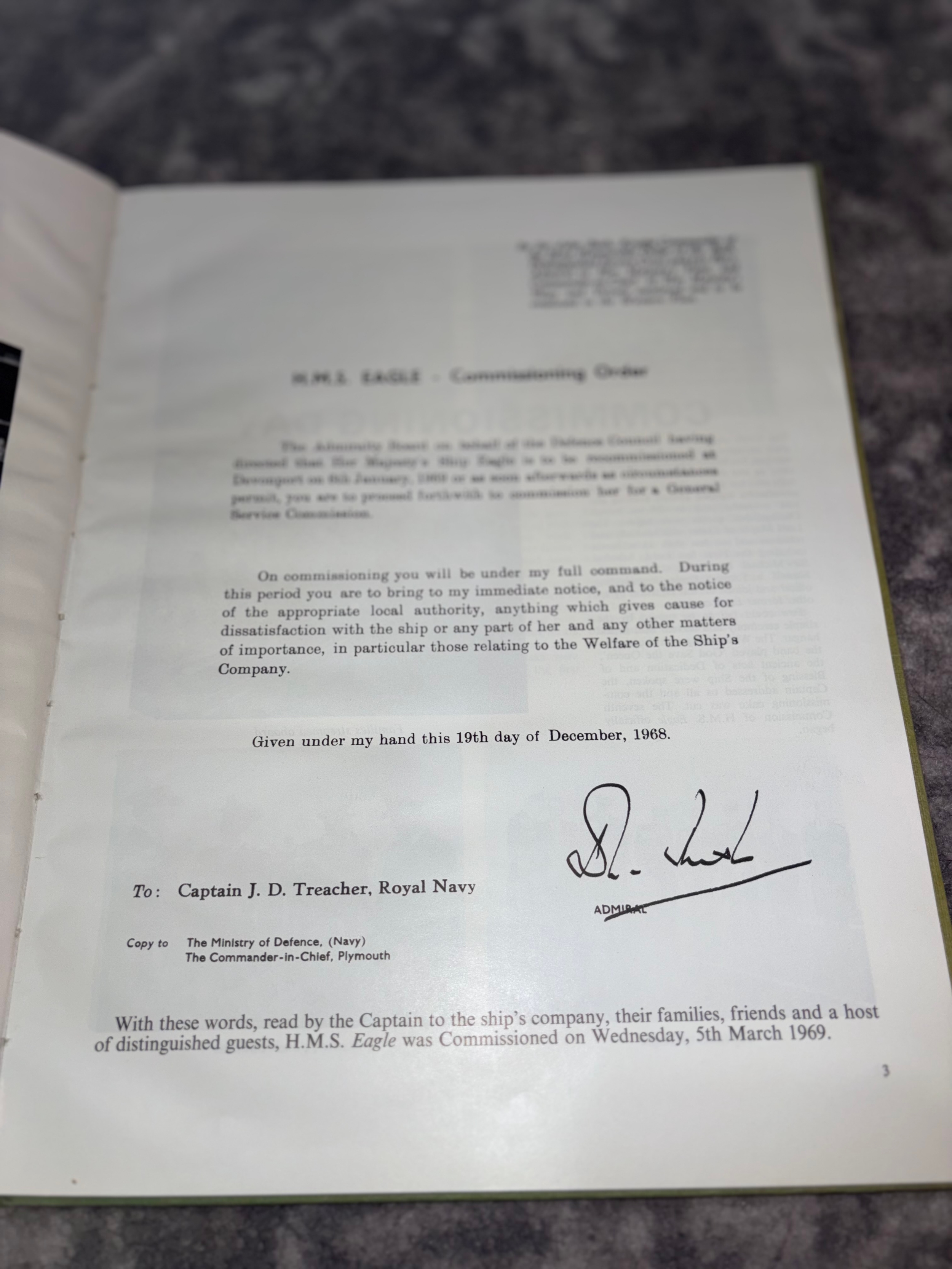 Really wonderful Commission book of HMS Eagle. This lovely book captures a brief history of the ship and the crew onboard.