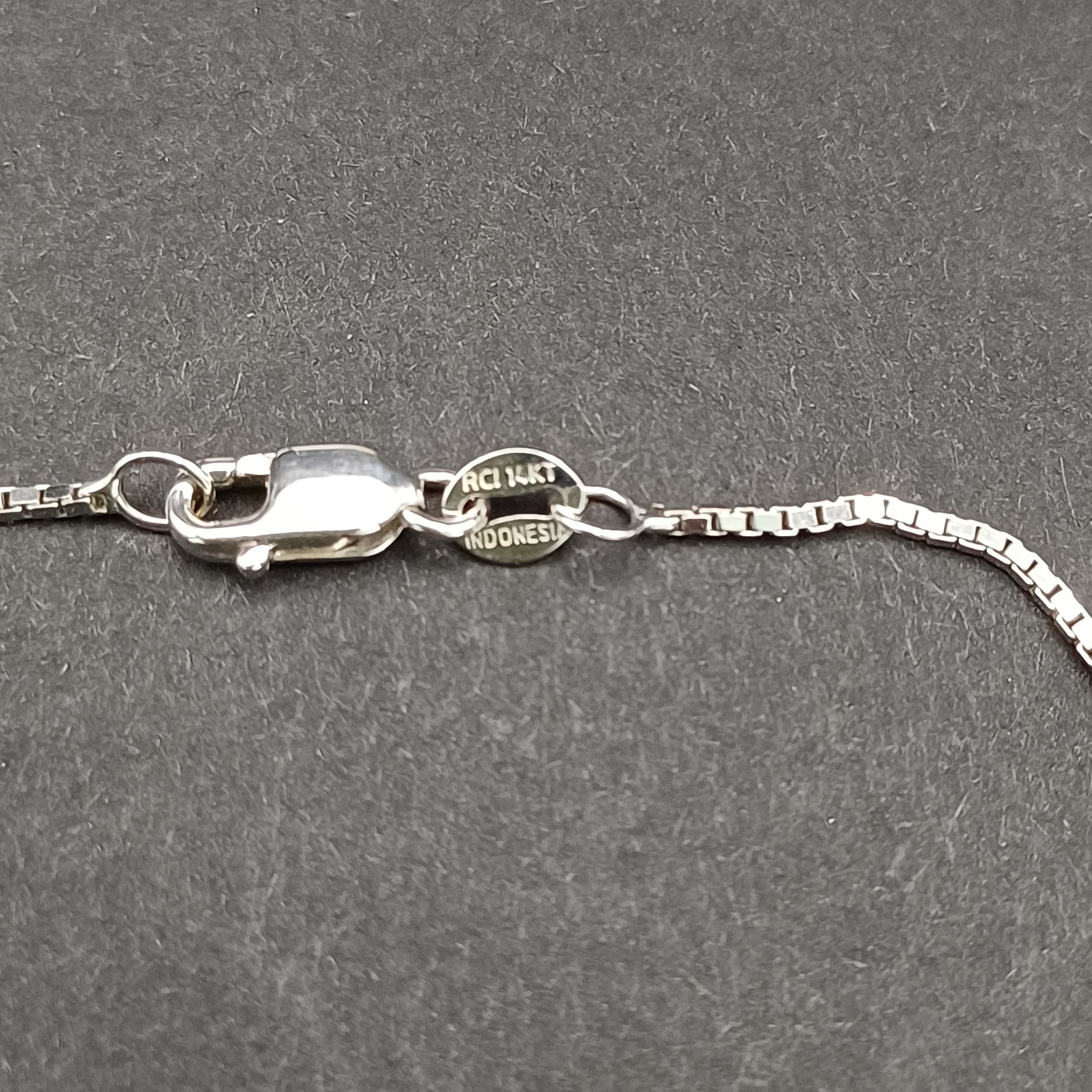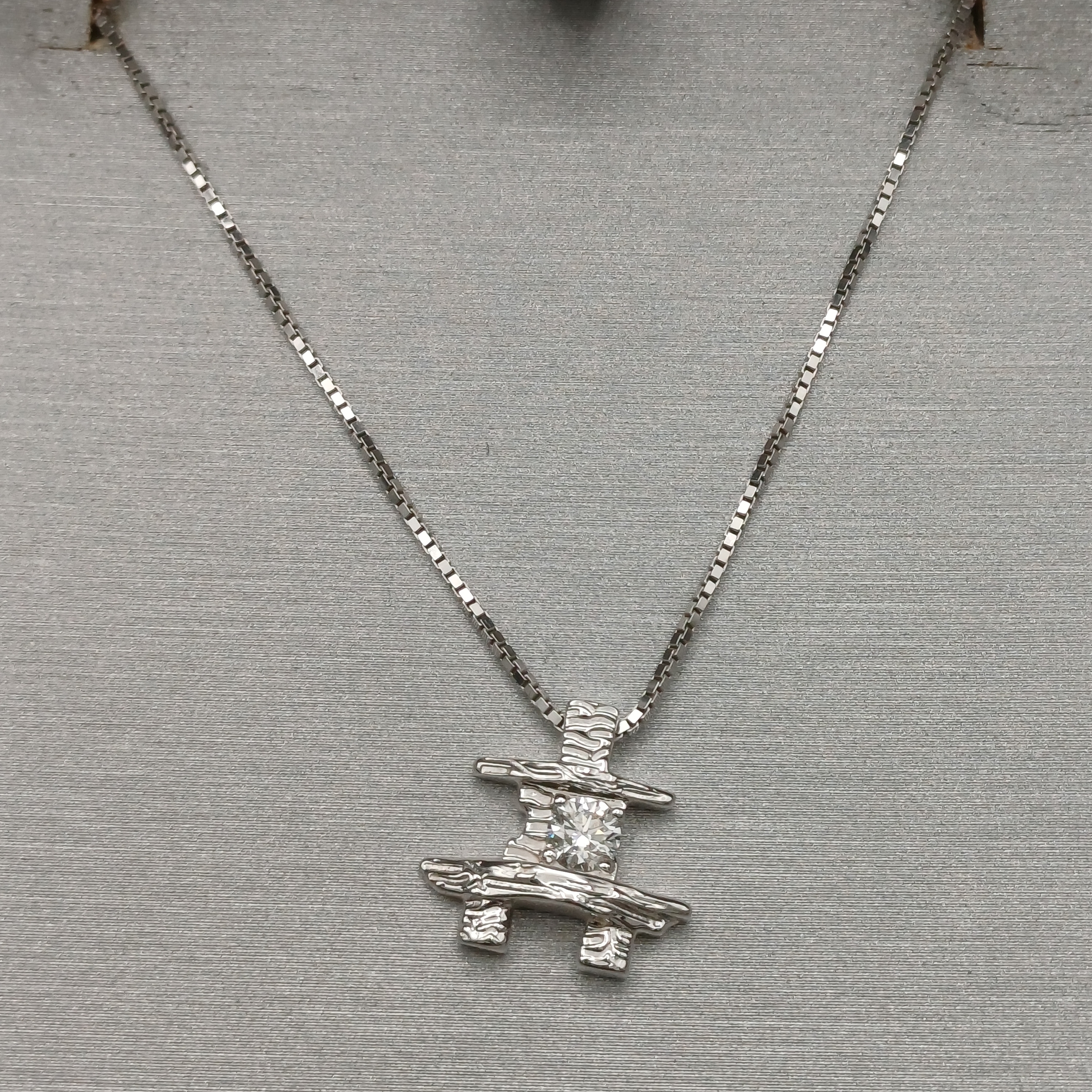 Authentic Canadian Diamond set into 14 carat white gold pendant on a 14 carat white gold chain. Total weight is 5.51g. This comes in the original box with Certificate.