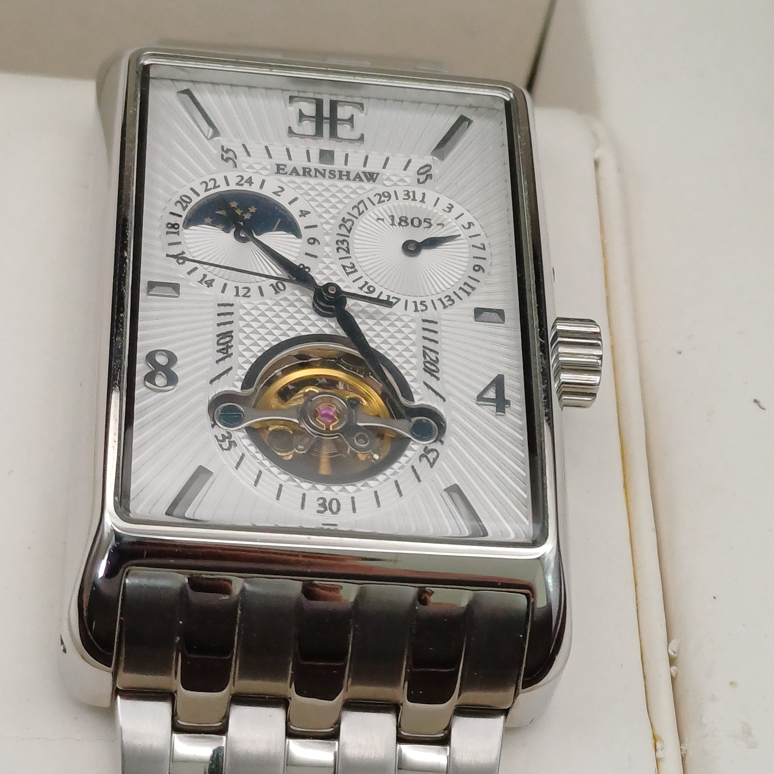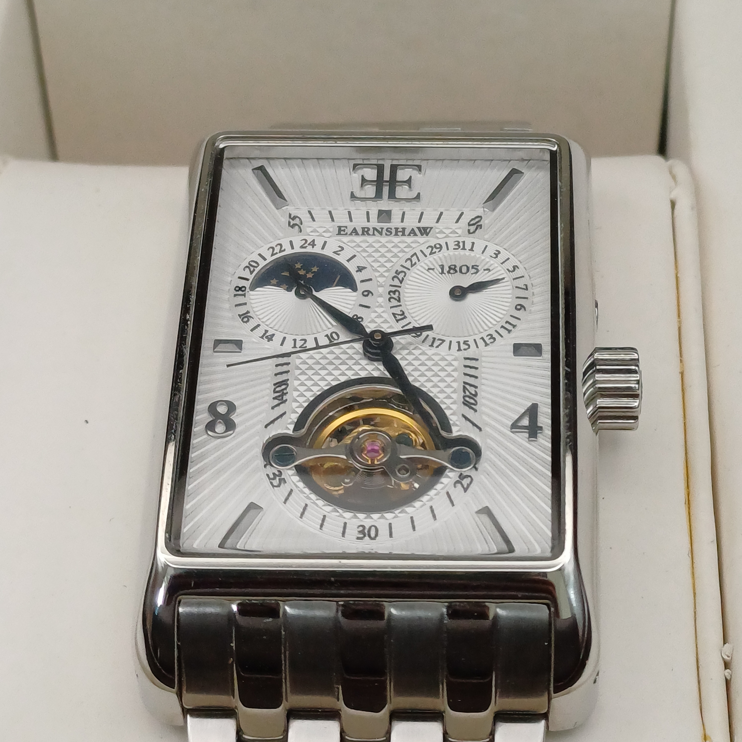 Thomas Earnshaw Exposed Flywheel Watch in its original box. This is a really lovely watch and is working.