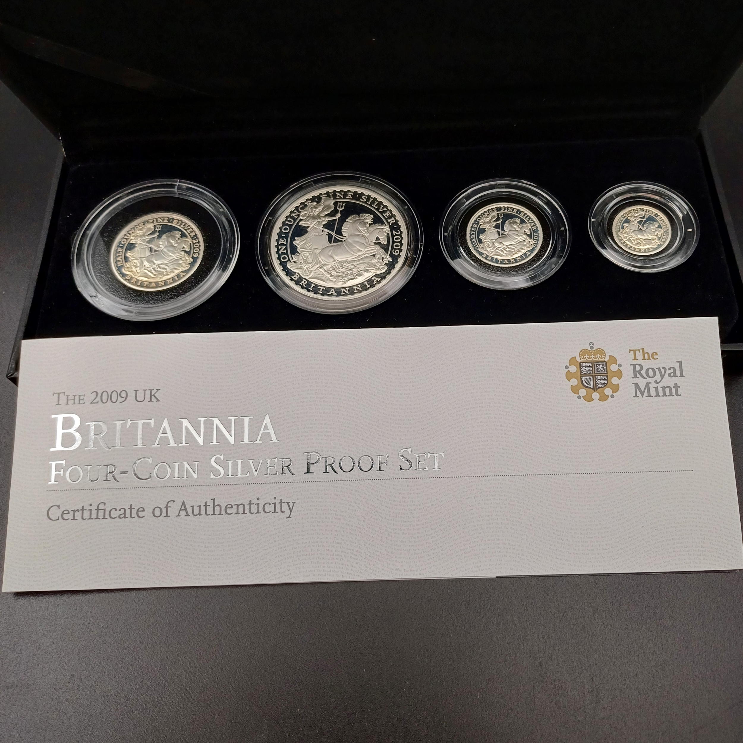 2009 Britannia Four Coin Proof Set with paperwork and in original boxing.