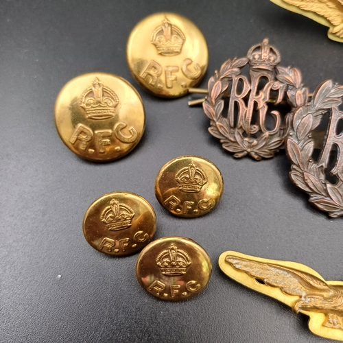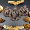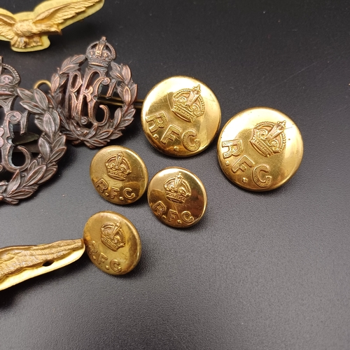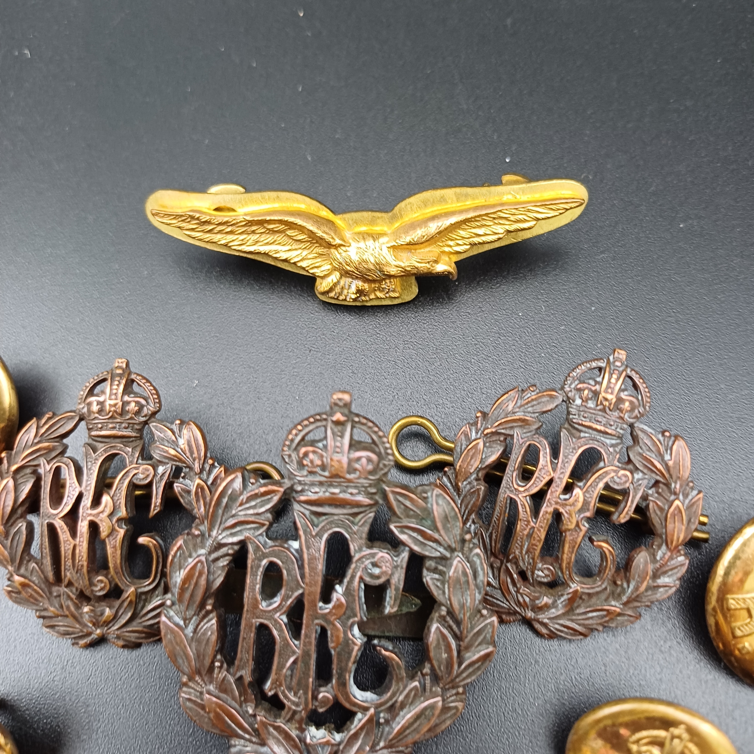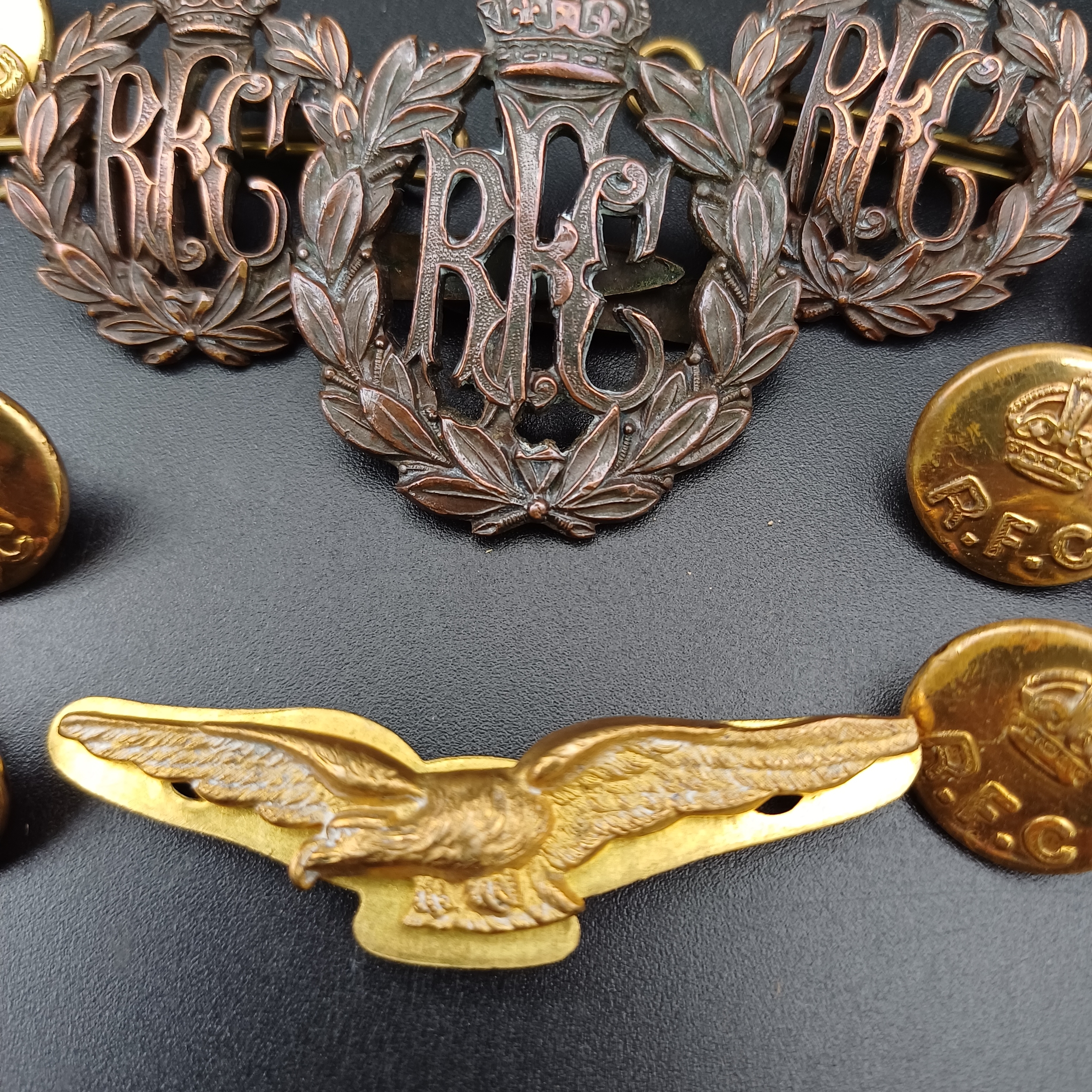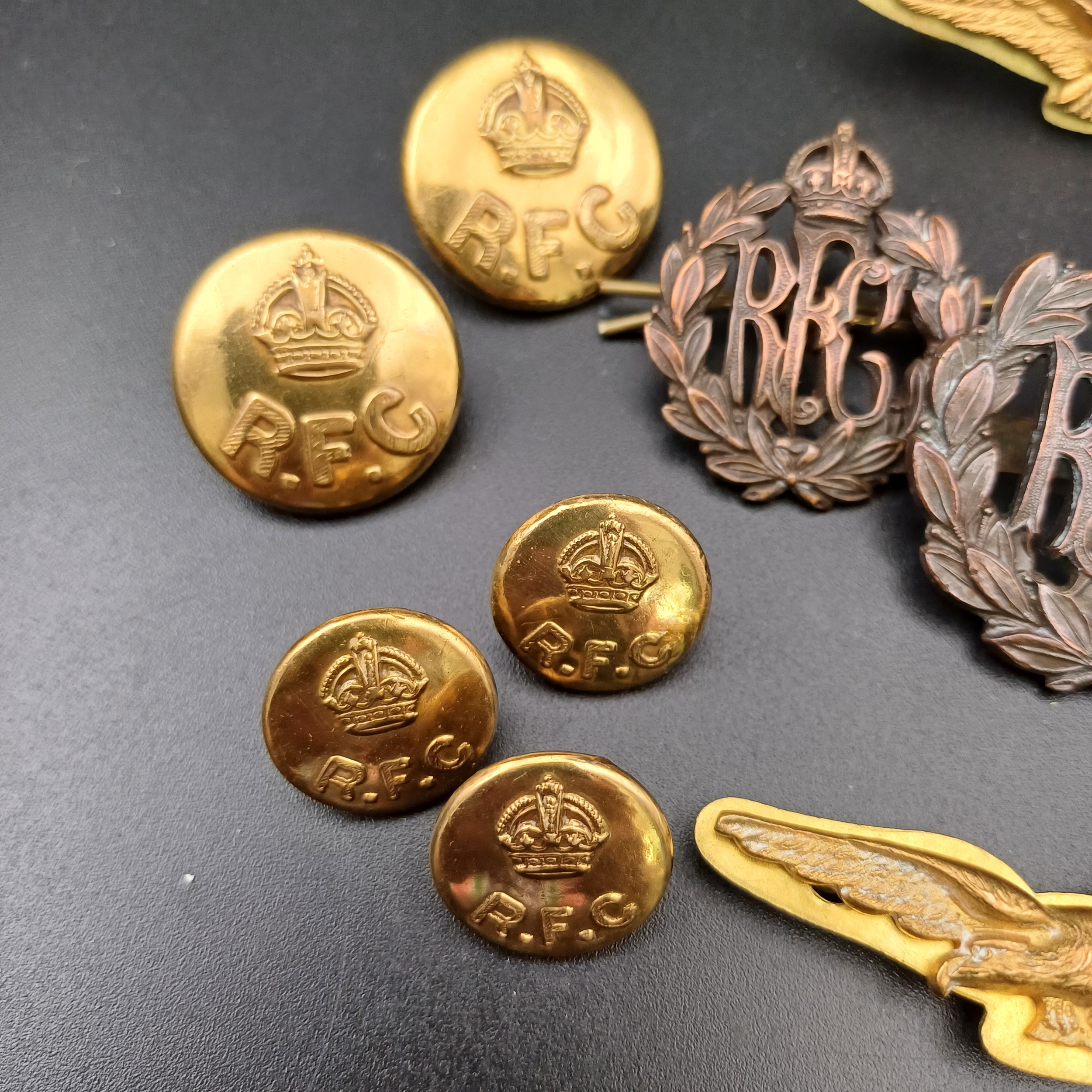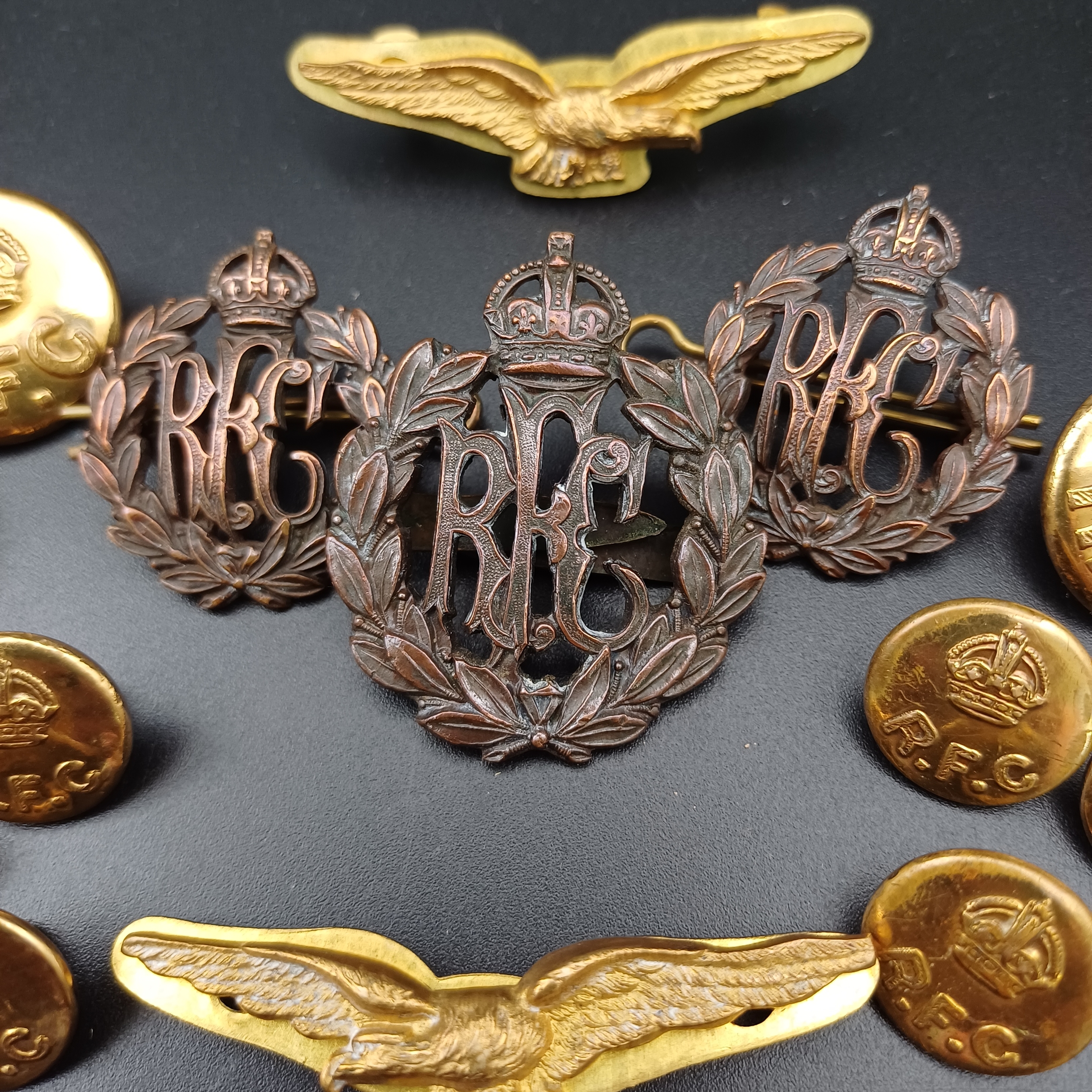 World War I Royal Flying Corp Pilots Buttons, Wings, Cap Badge and Shoulder Badges. All in excellent condition;