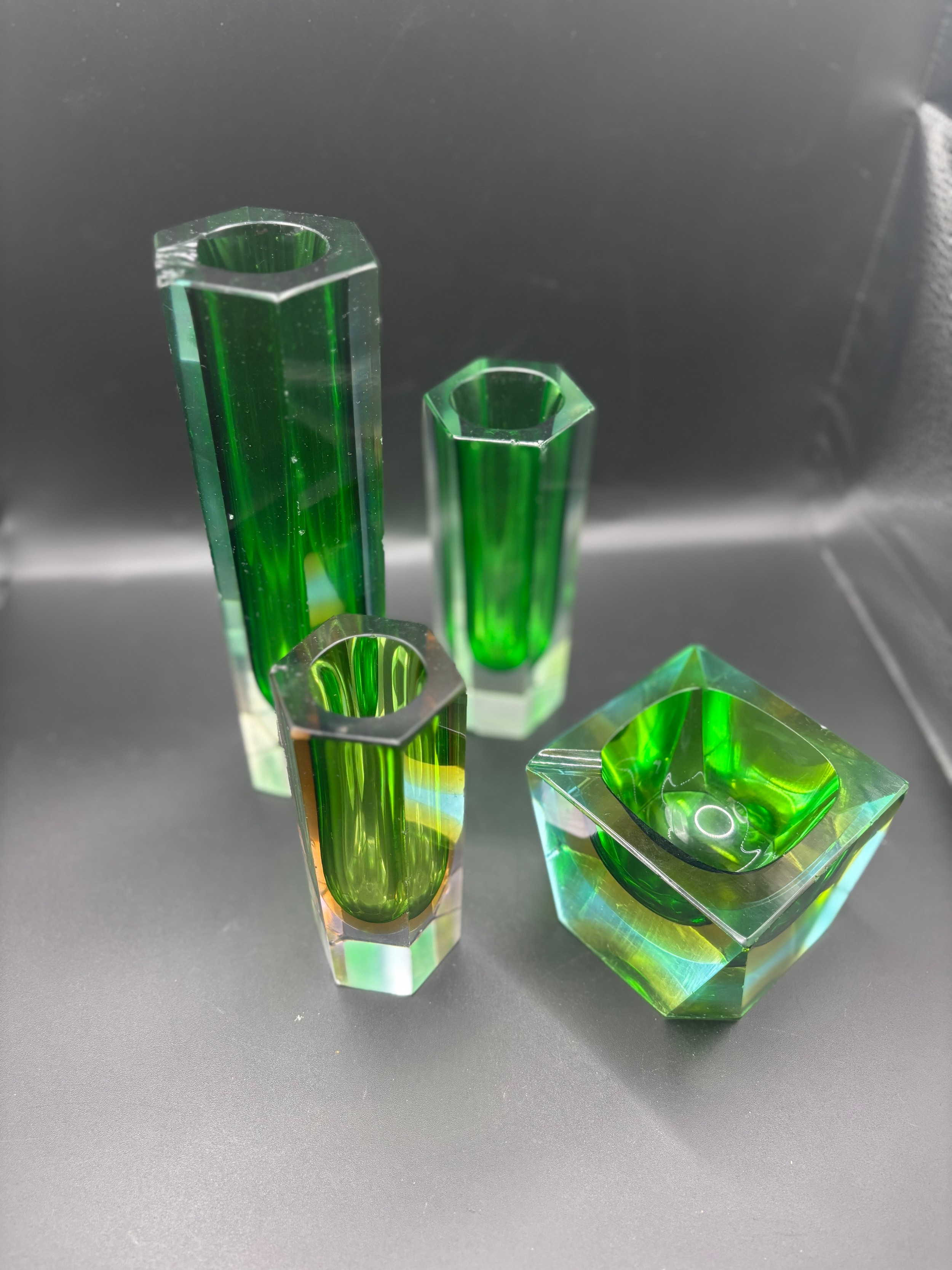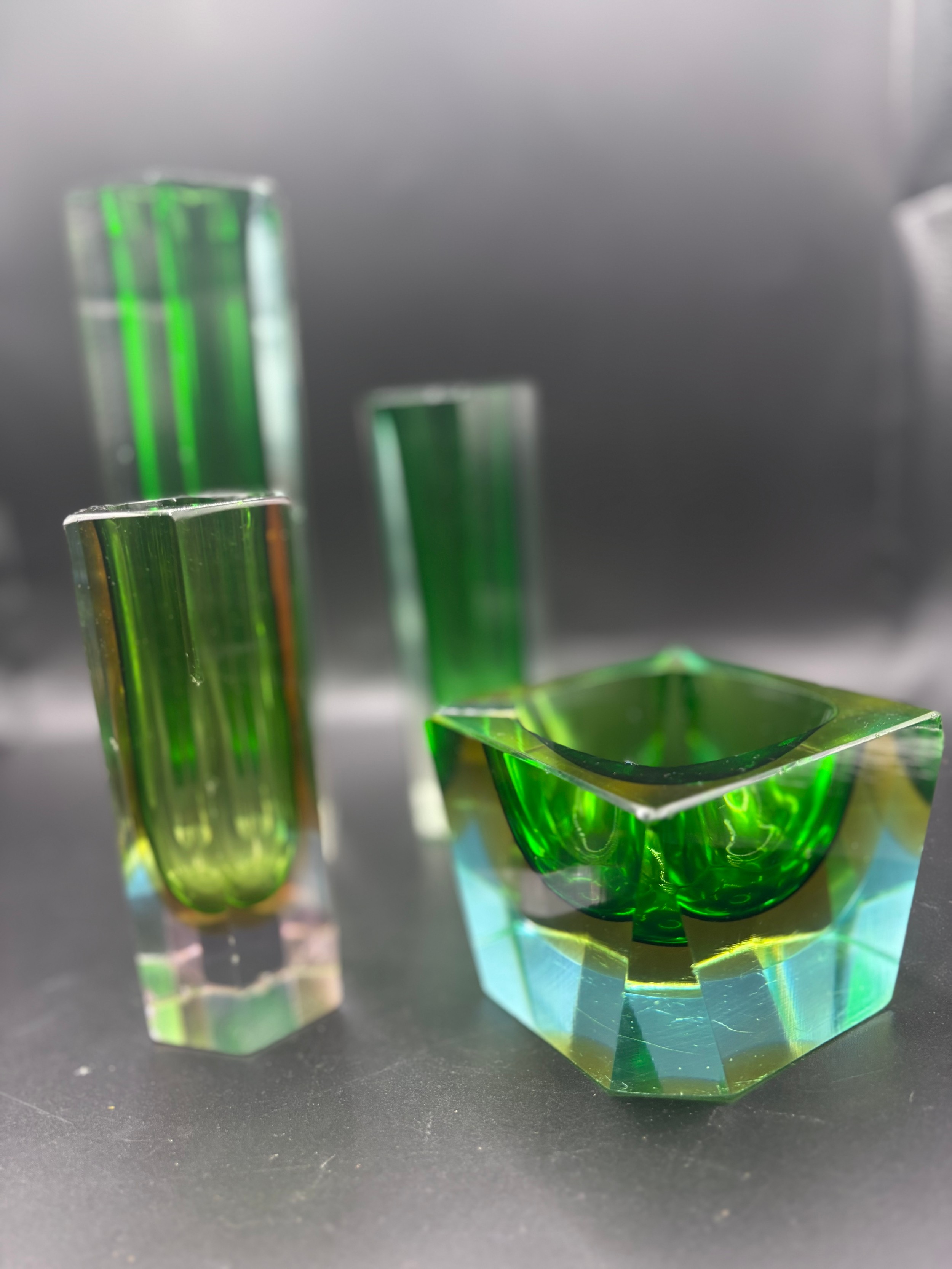 Modern Murano Glass vases & ashtray. Fair condition, some damage see pictures.