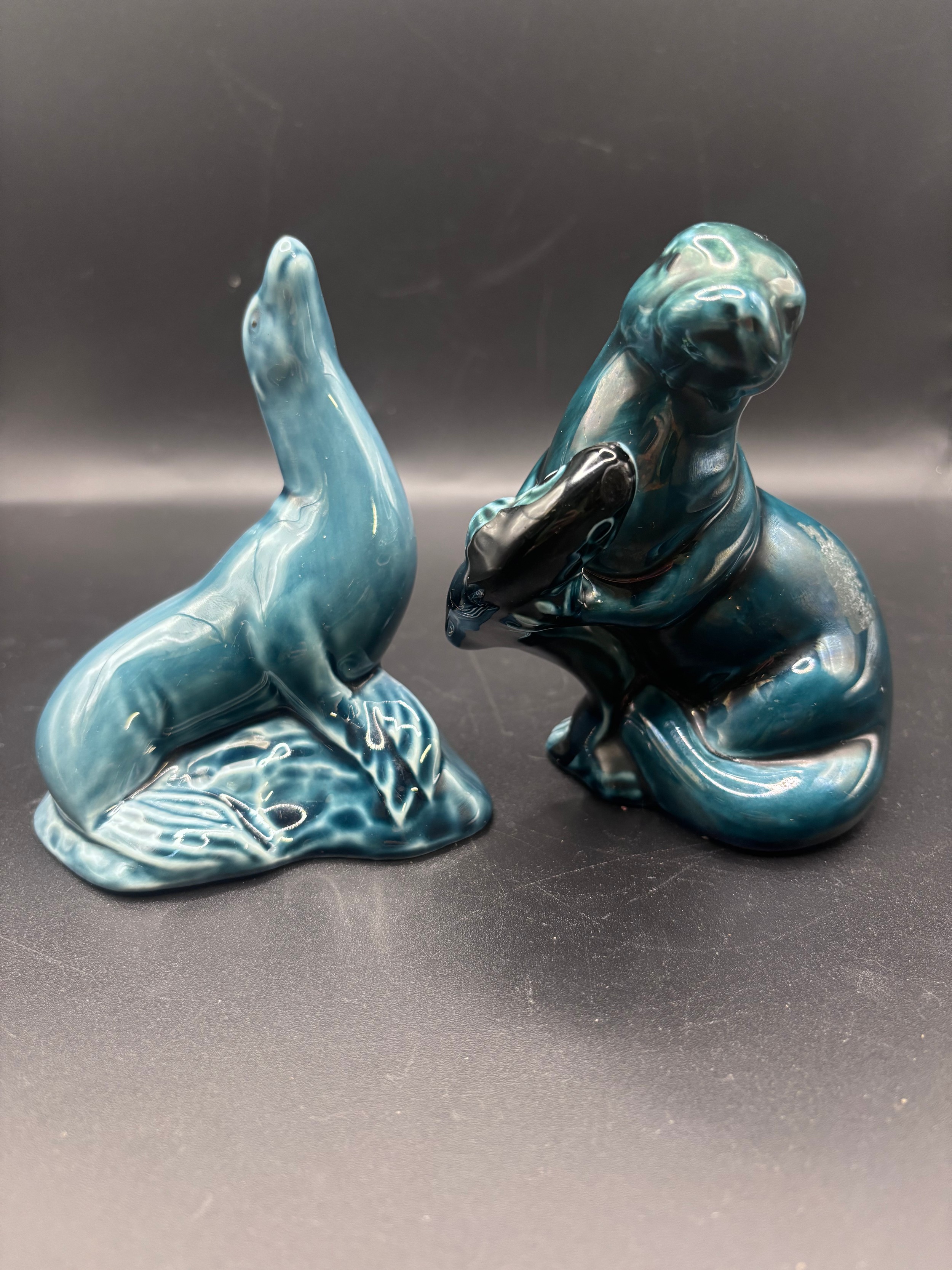 Poole Pottery Otter in teal & Vintage seal by Tony Morris circa 1980’s