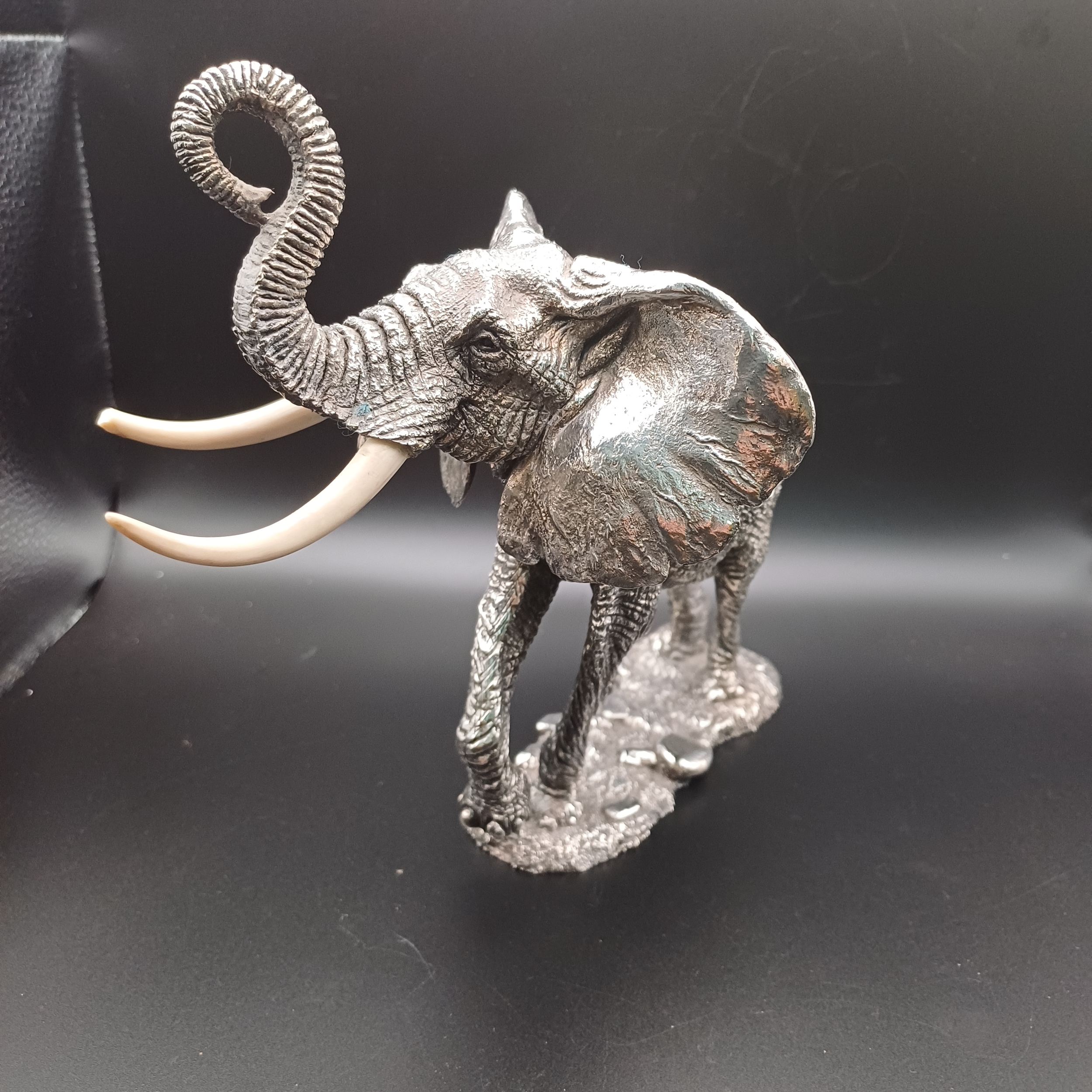 William Comyns & Sons Magnificent Bull Elephant which is filled silver coated with 99.9 silver (the body is filled, but the remainder is solid). Measurements are H: 18.6 cm x W: 10.5 cm x L: 20.3 cm. These are still available to buy from Comyns and retail at £699.00. It is a very tactile item and makes you smile.