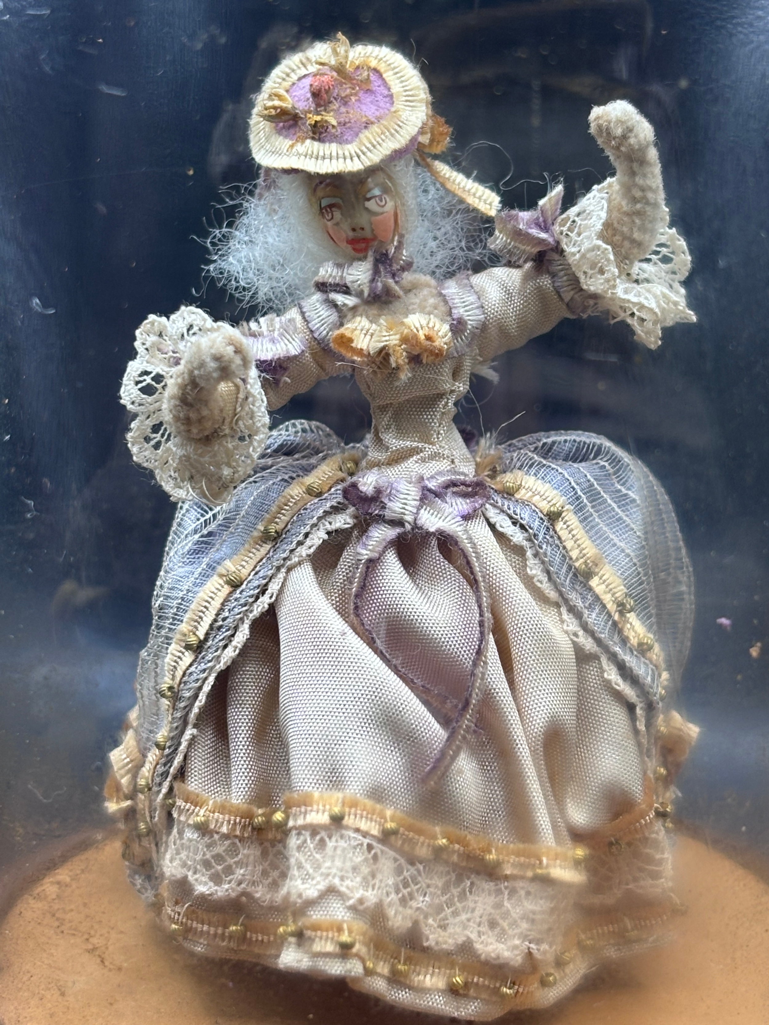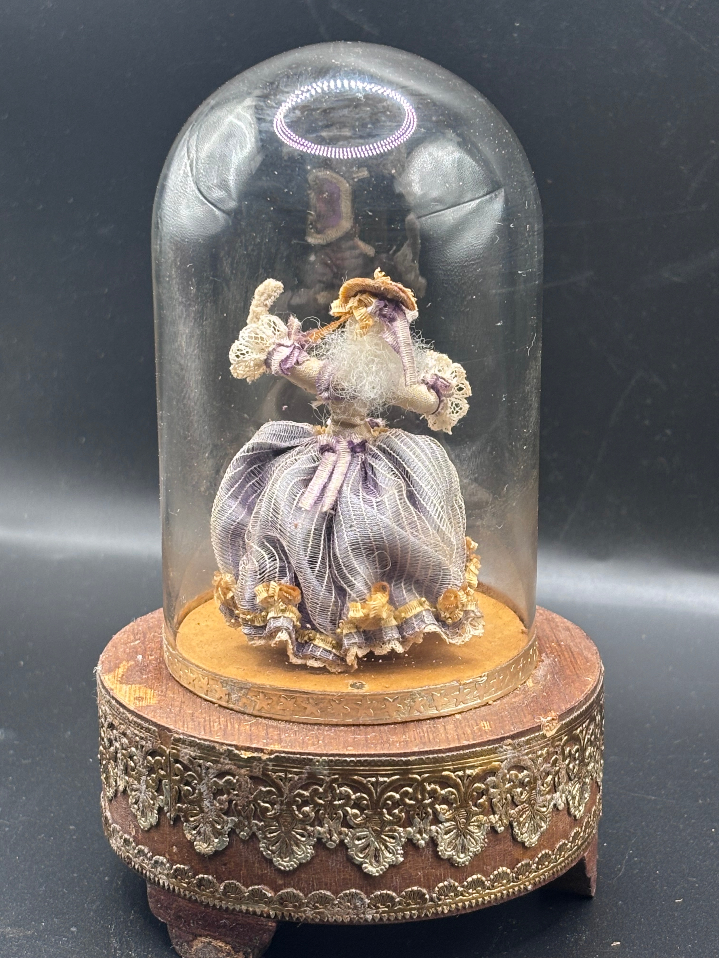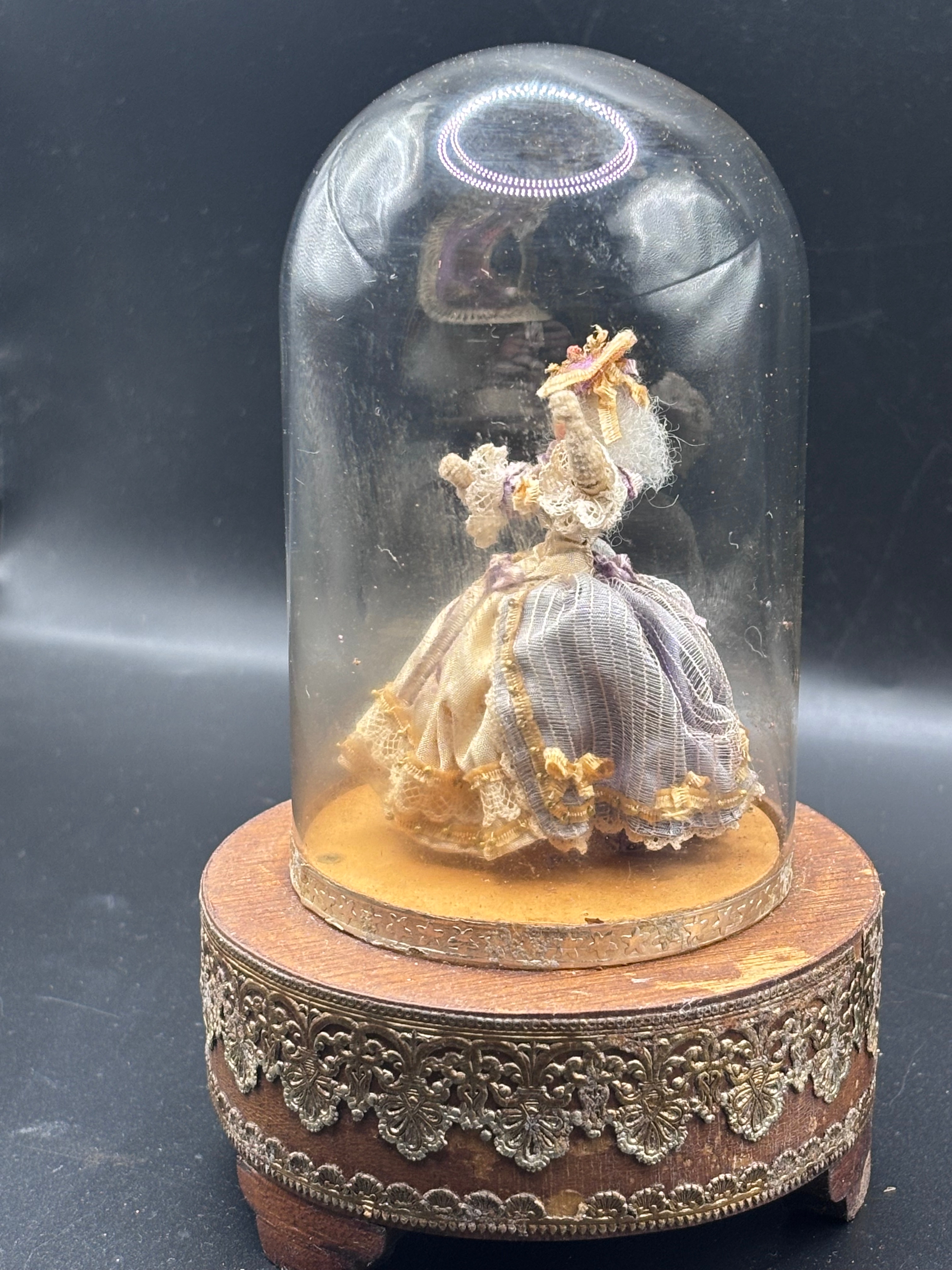 Louis Vuitton. This vintage music box automaton features a miniature doll under a glass dome and is made by Louis Vutton and is a rare find.