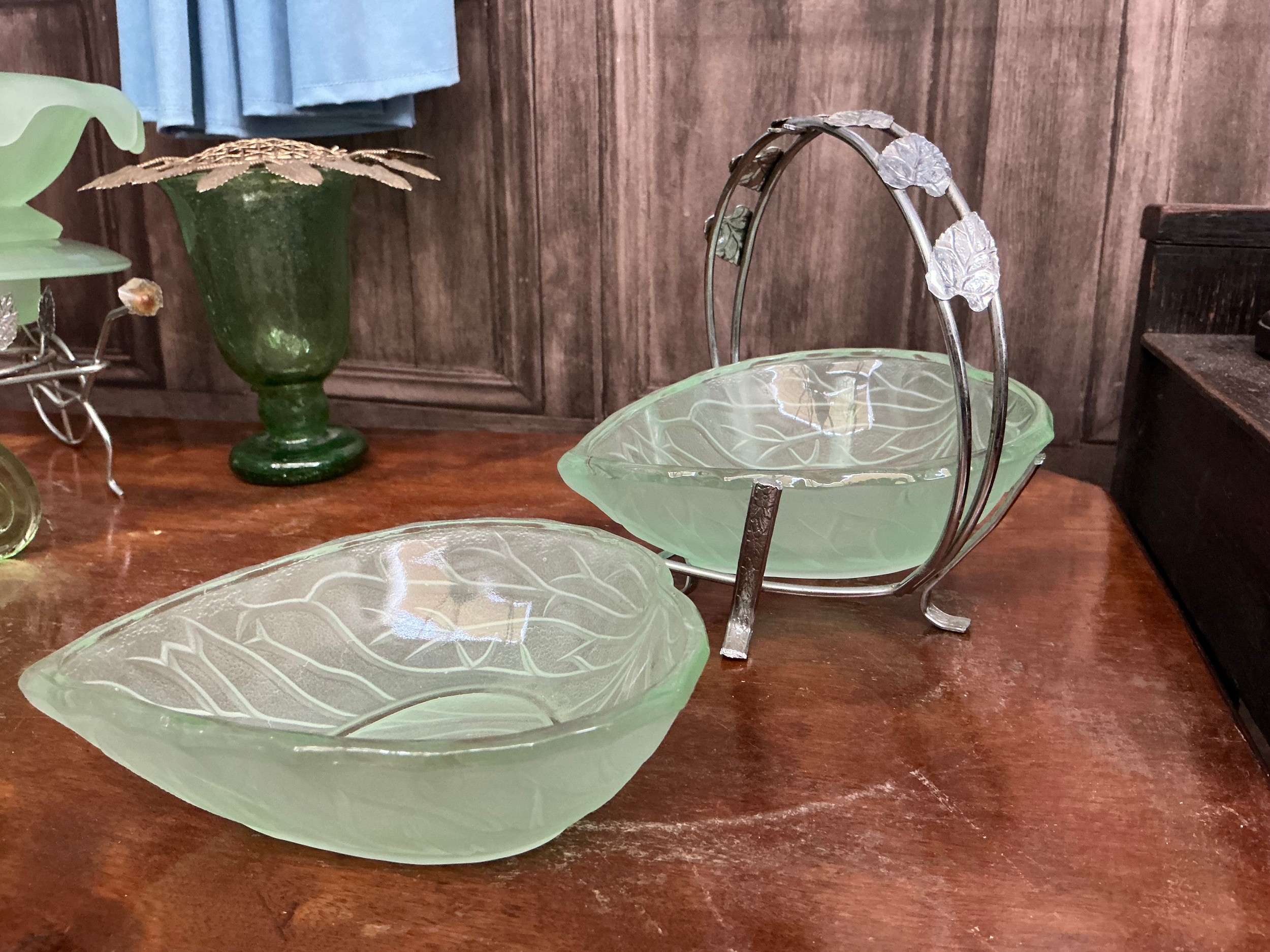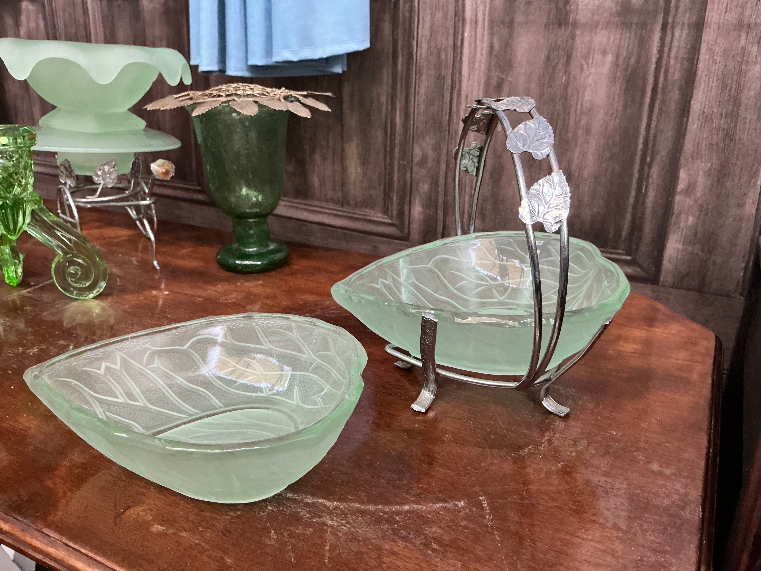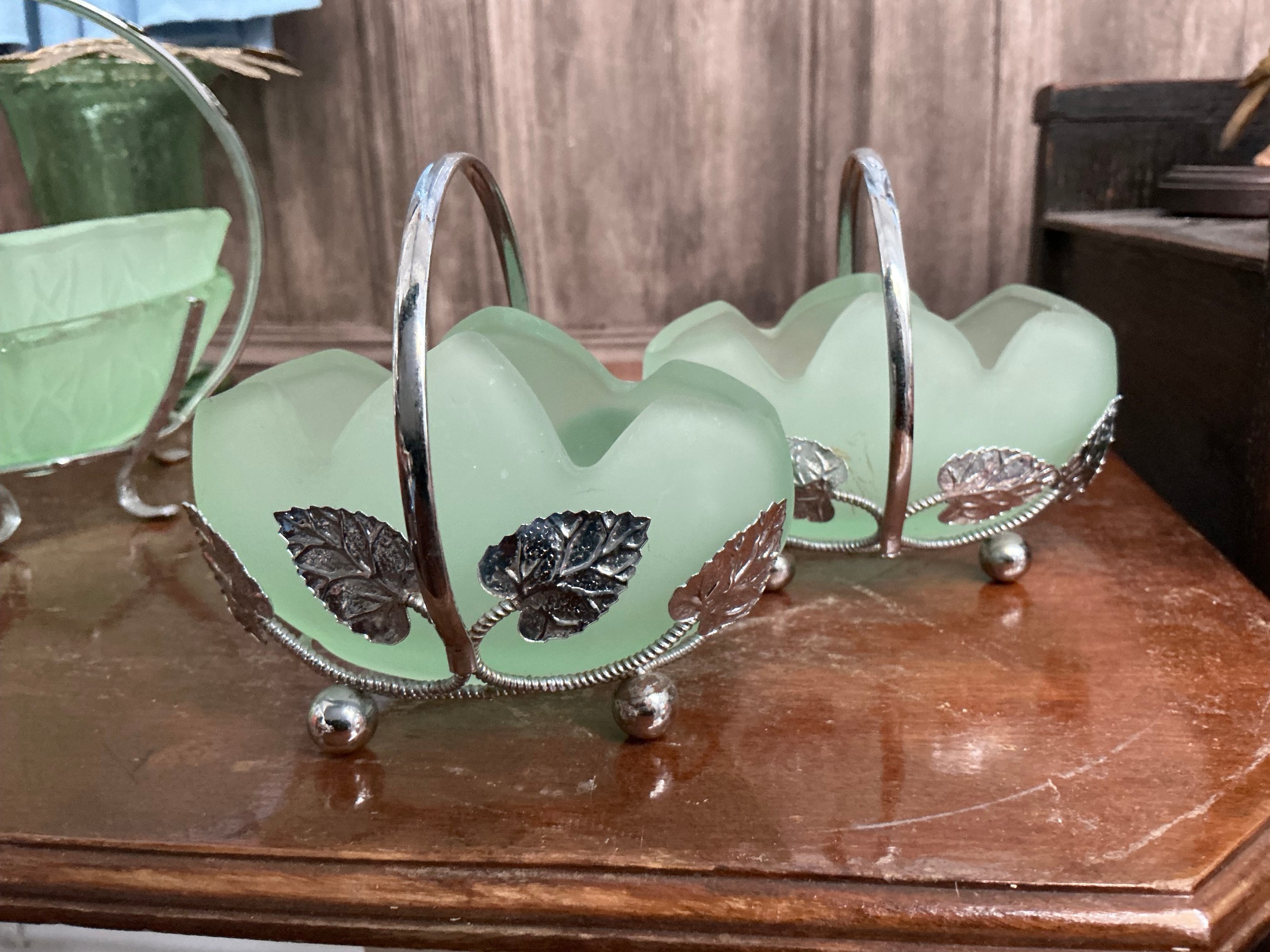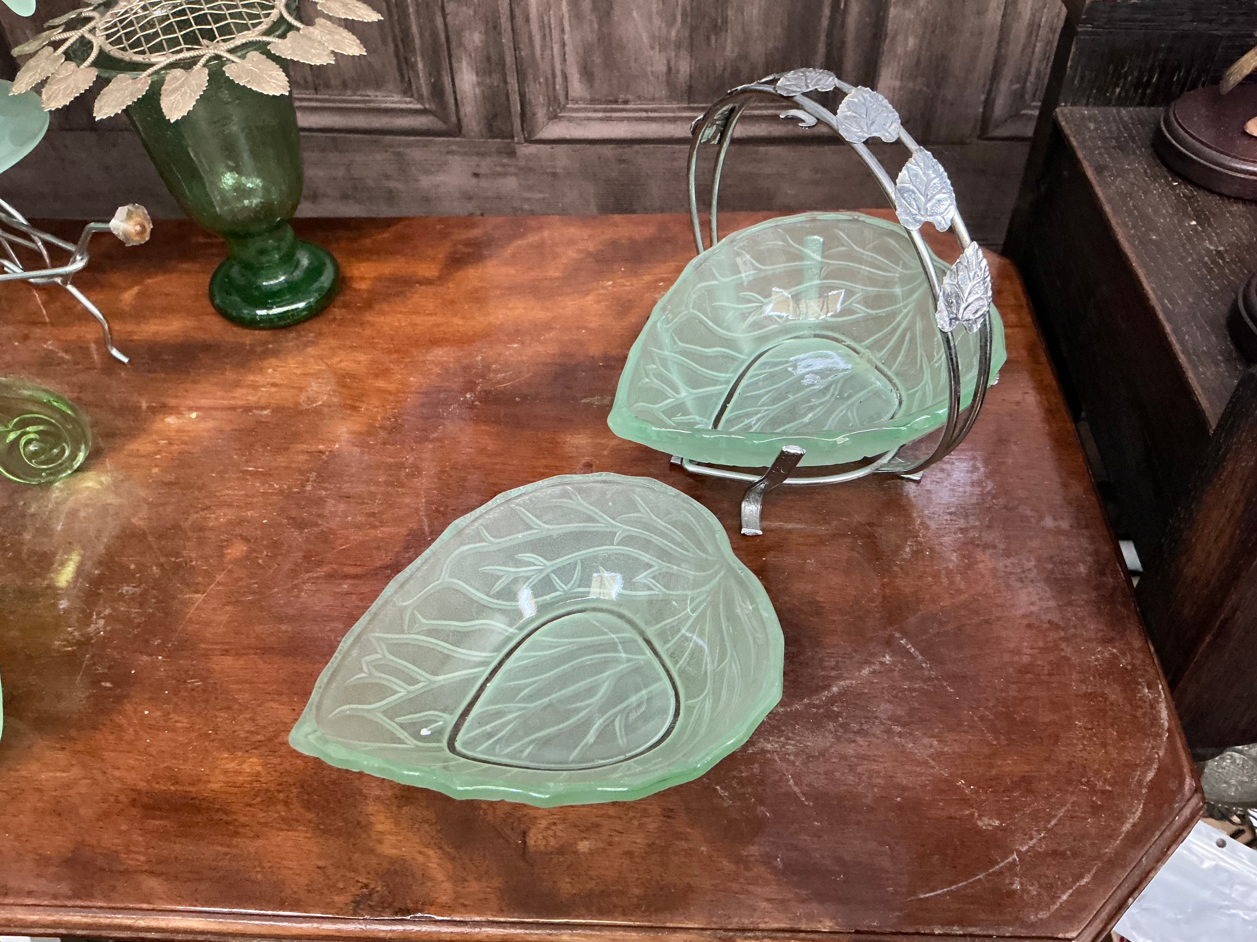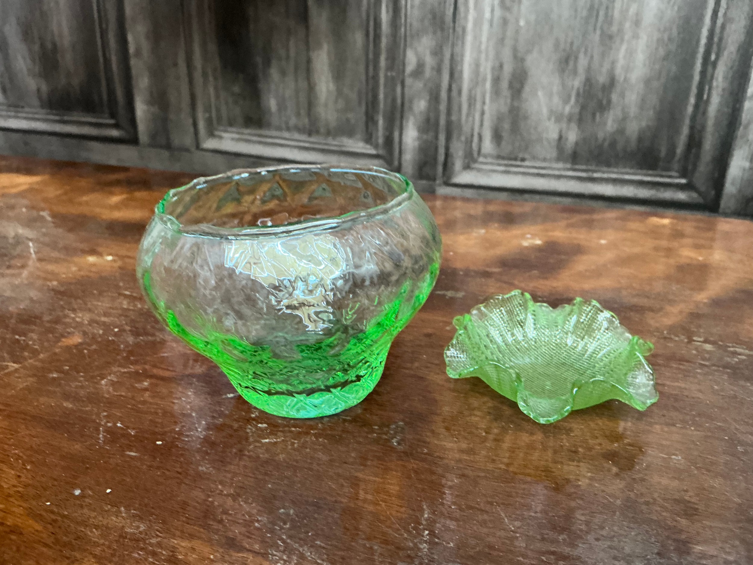 Selection of green glass items, some confirmed as Uranium glass, really pretty collection