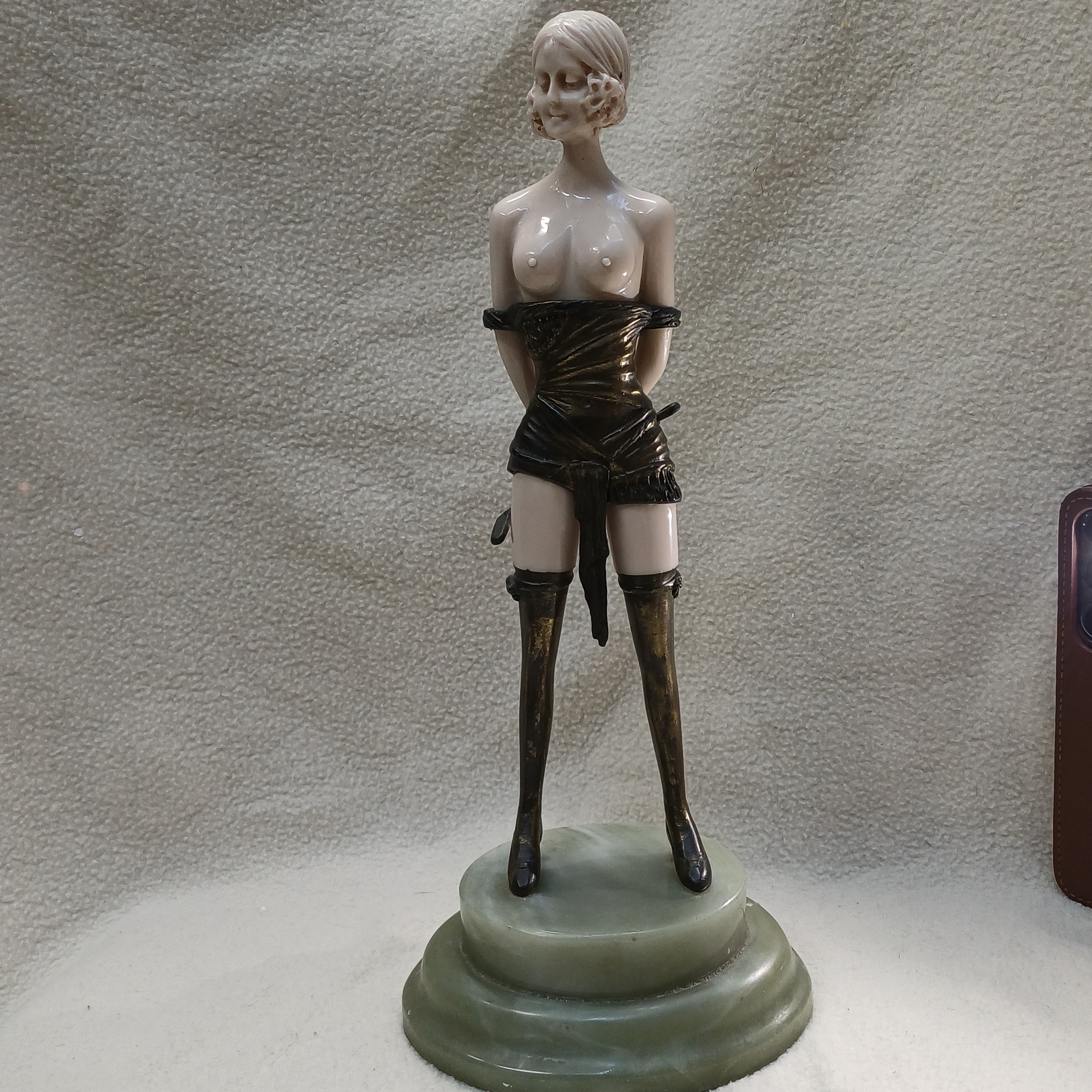 This 1920s Art deco bronze and resin figurine created by Bruno Zach, an Austrian art deco sculptor known for is erotic sculptures of young women.