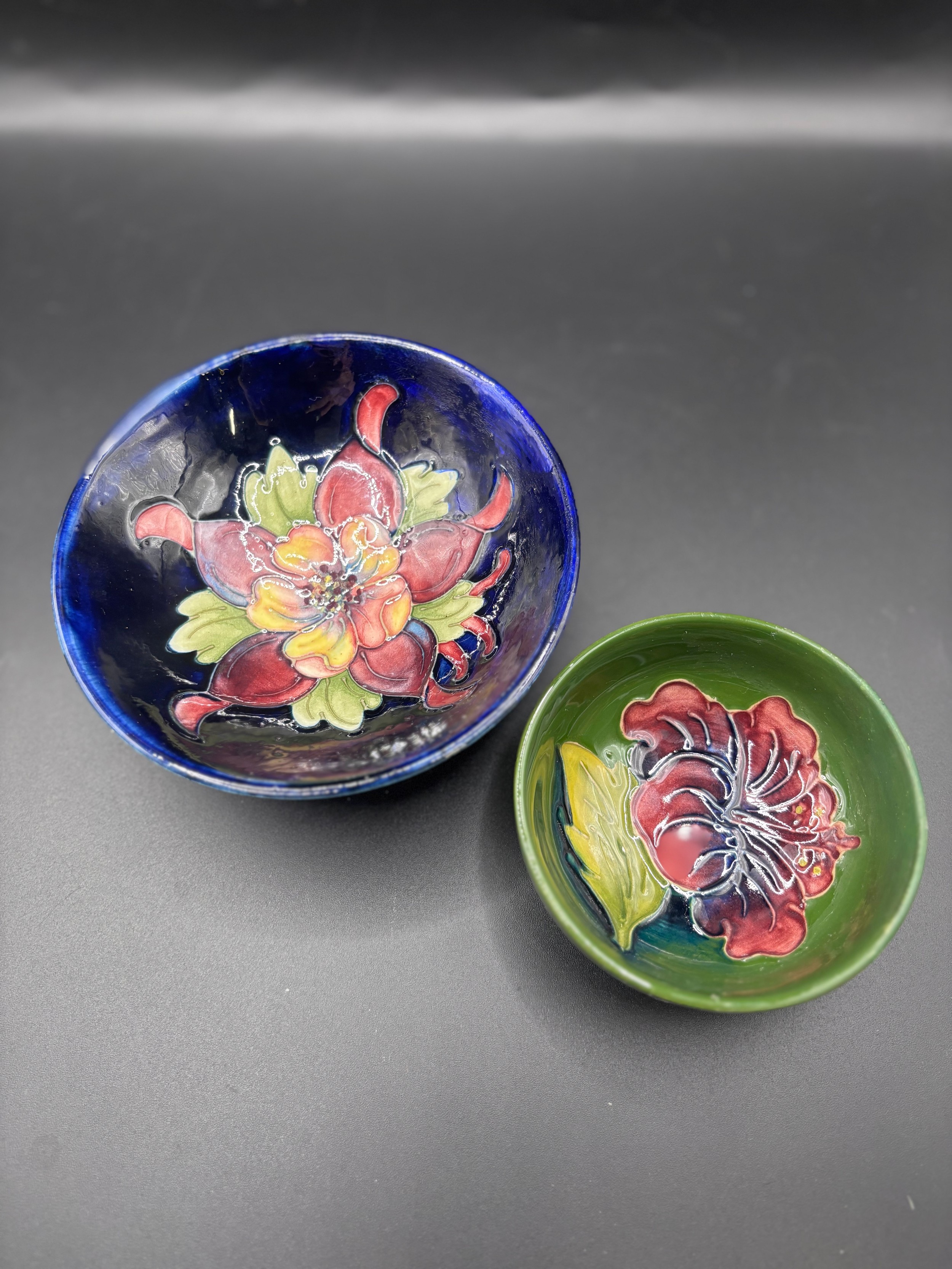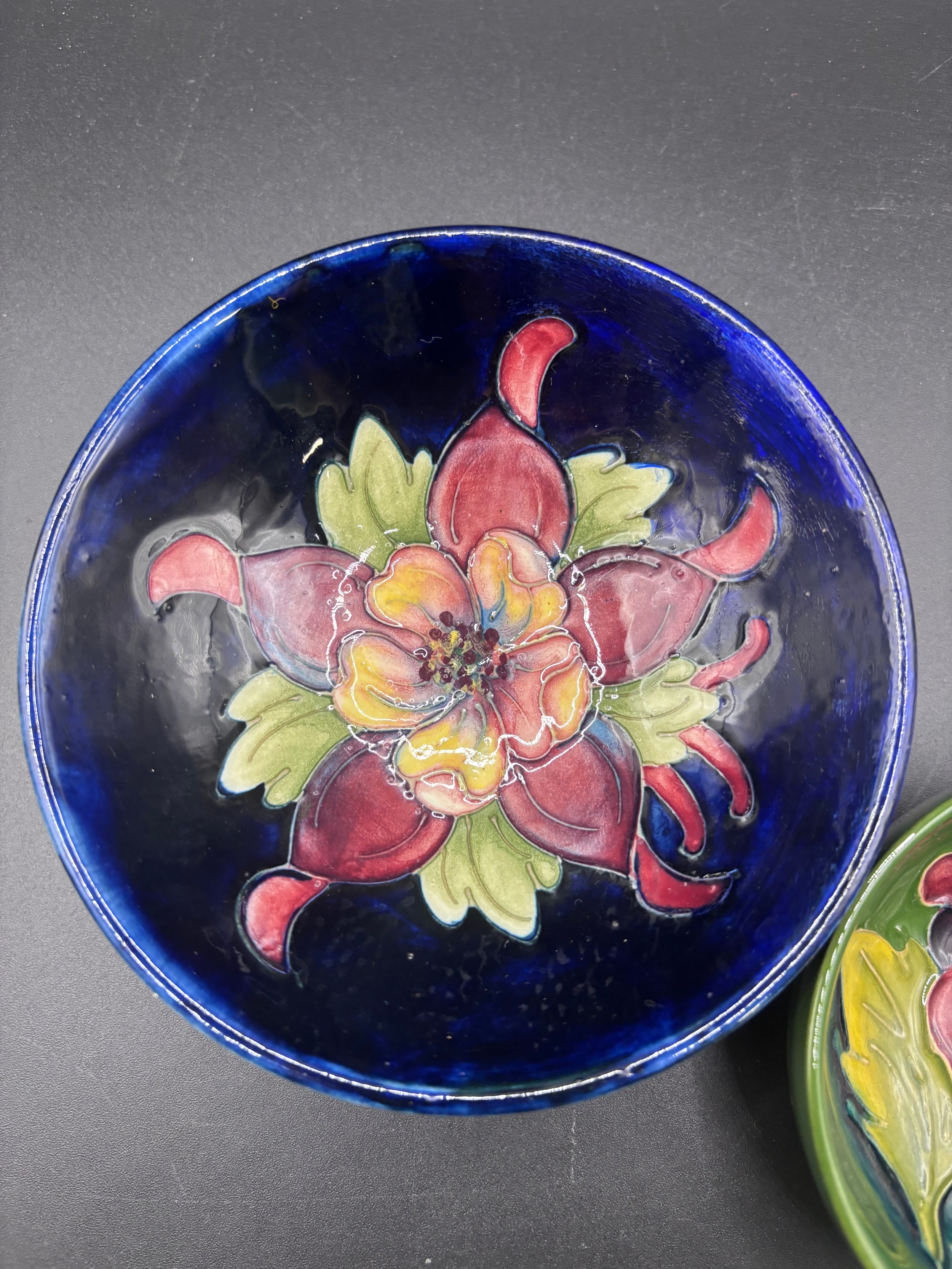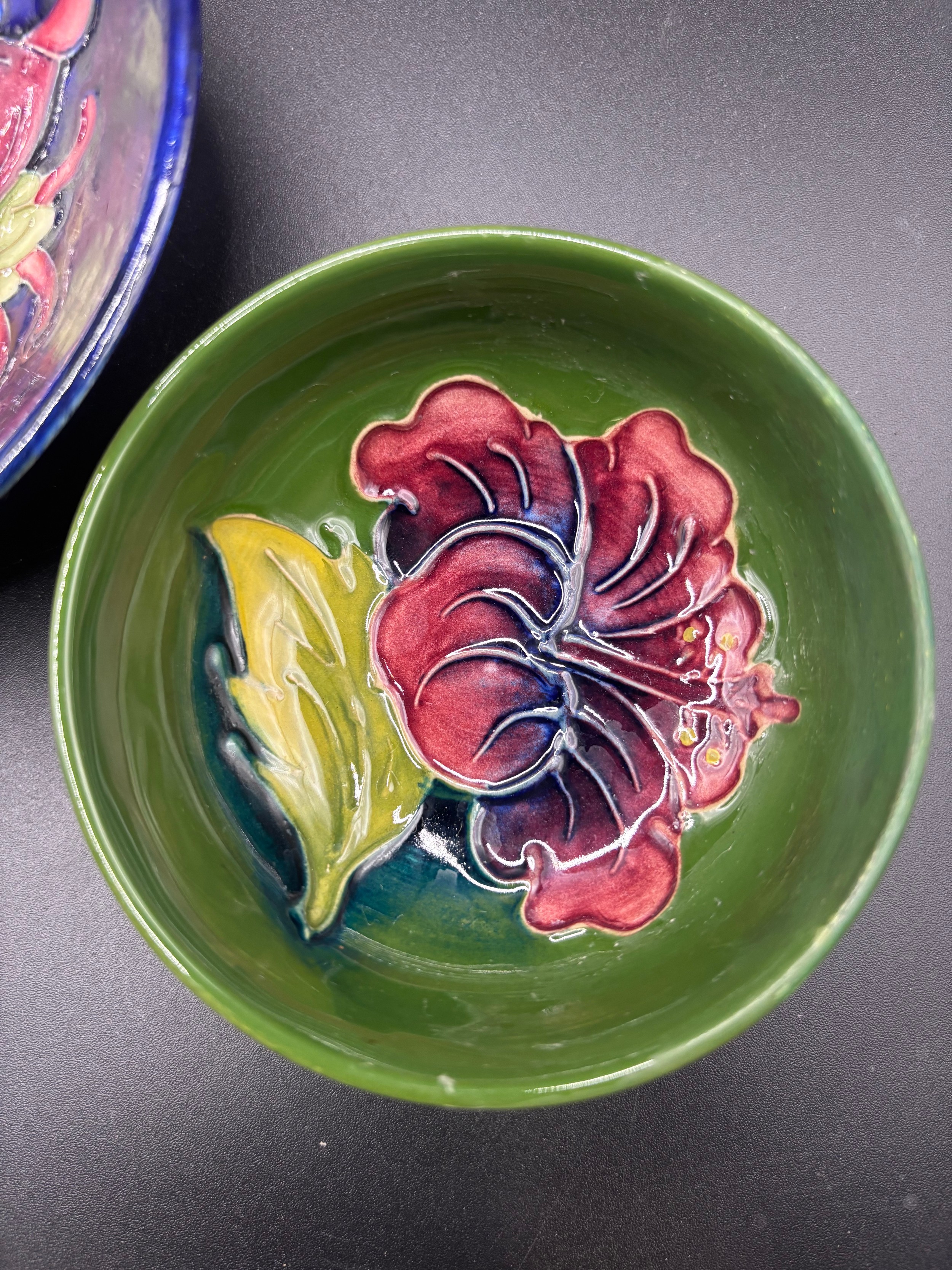 Walter Mooorcroft ‘ Columbine’ pattern dish & ‘Hibiscus’ pattern dish