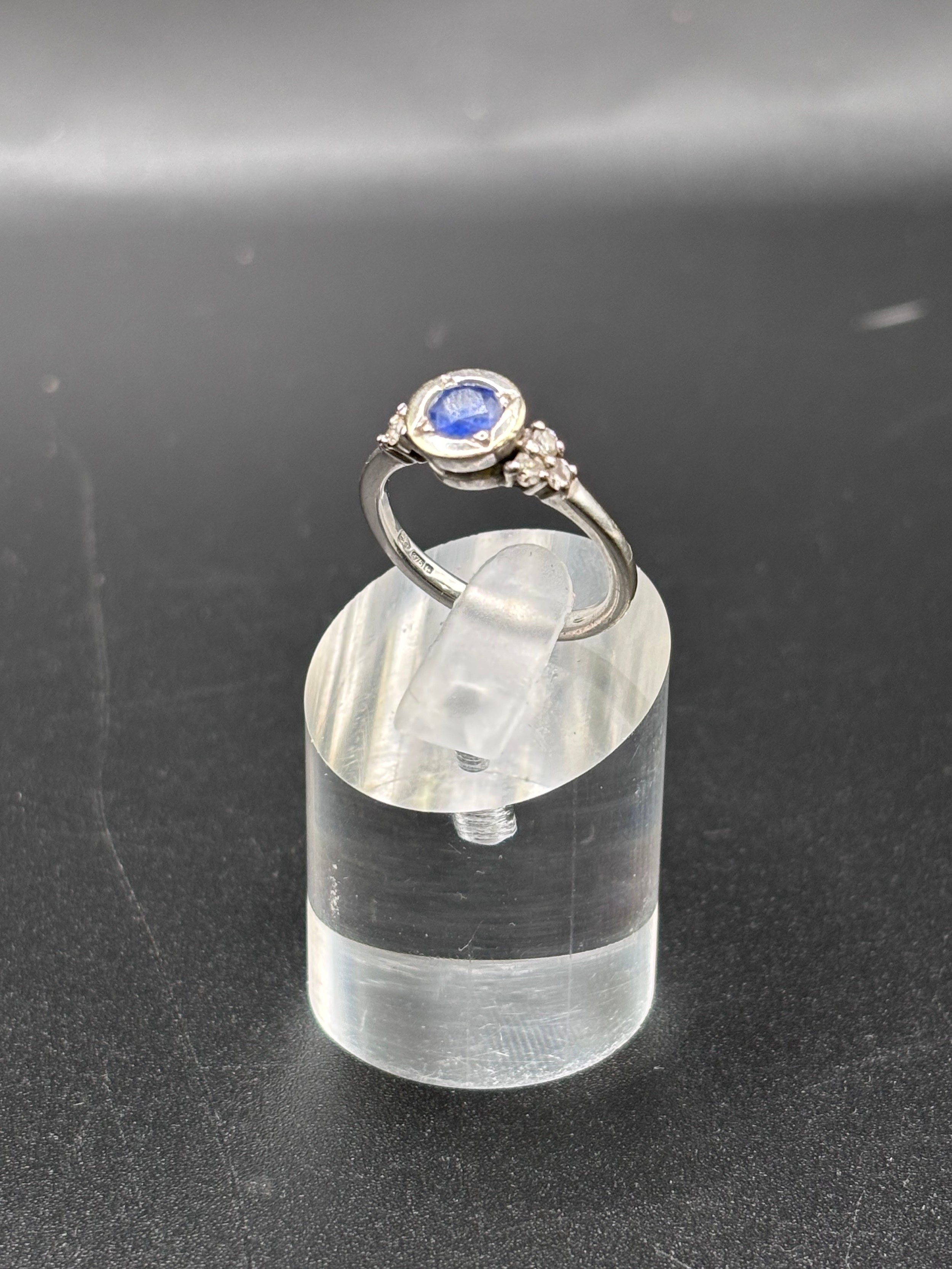 James Bishop 9ct white gold Sapphire and diamond ring.