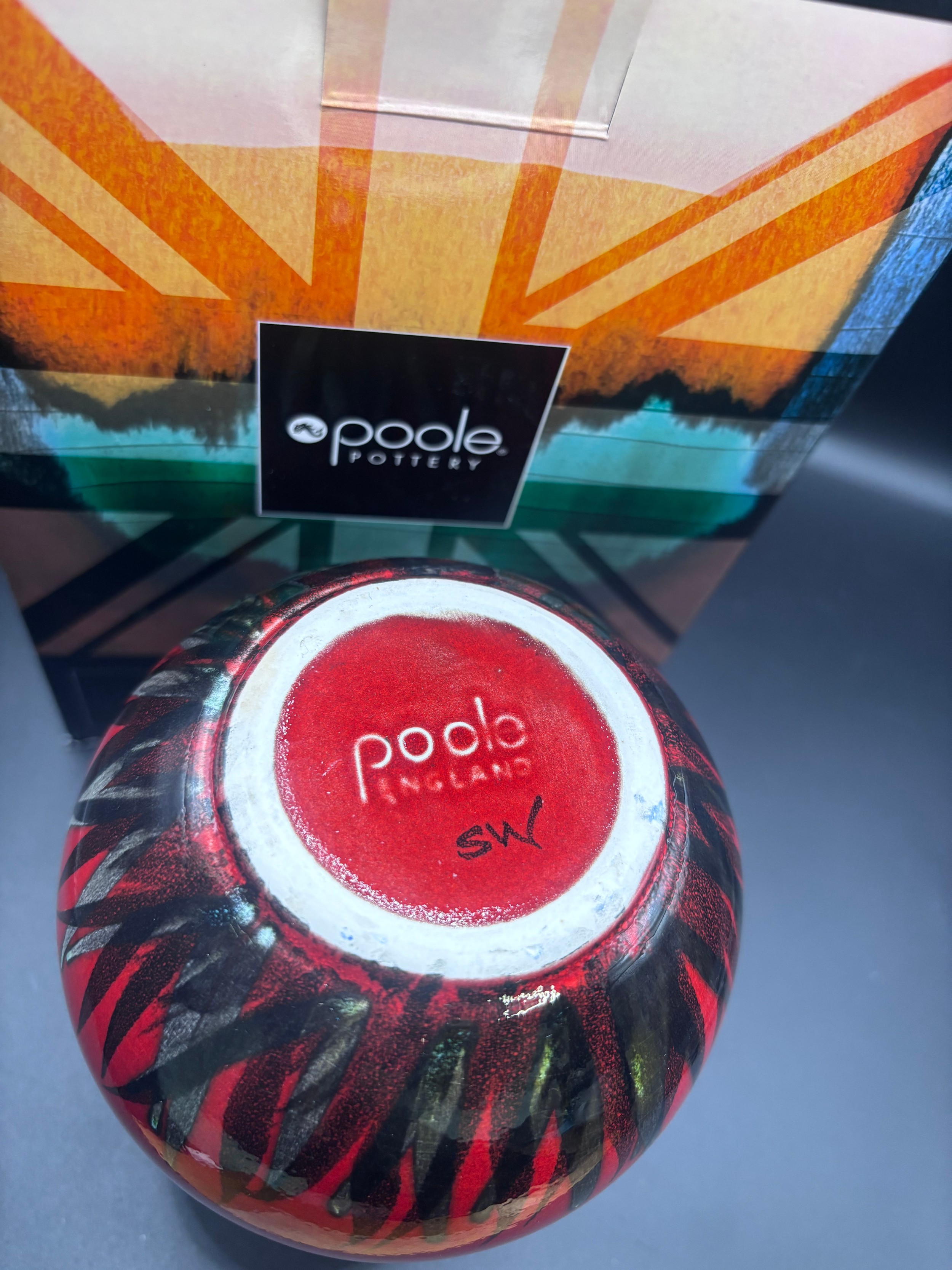 Poole Pottery Himalayan Poppy vase - 16cm with original box.‘Venetian Vase’