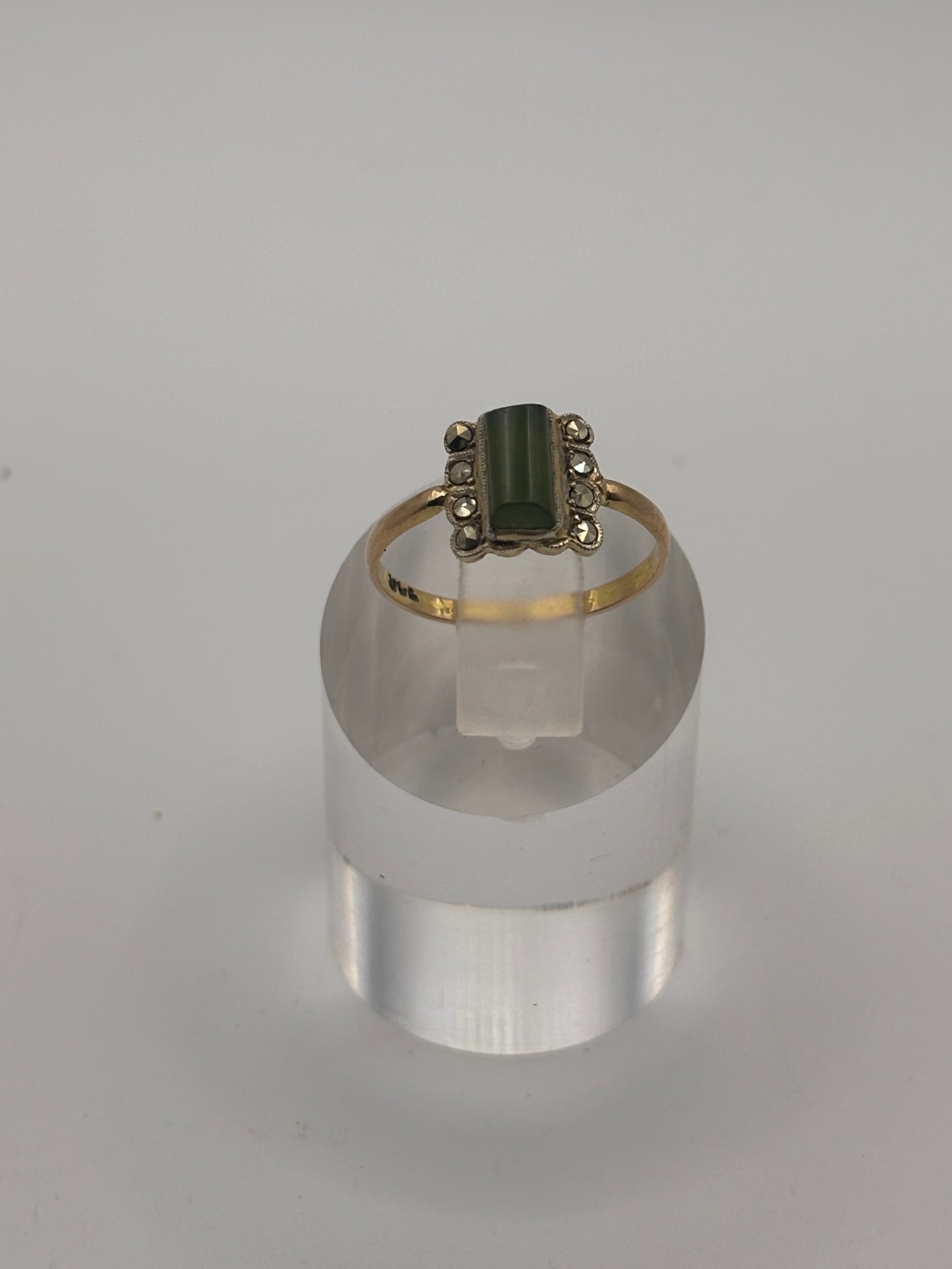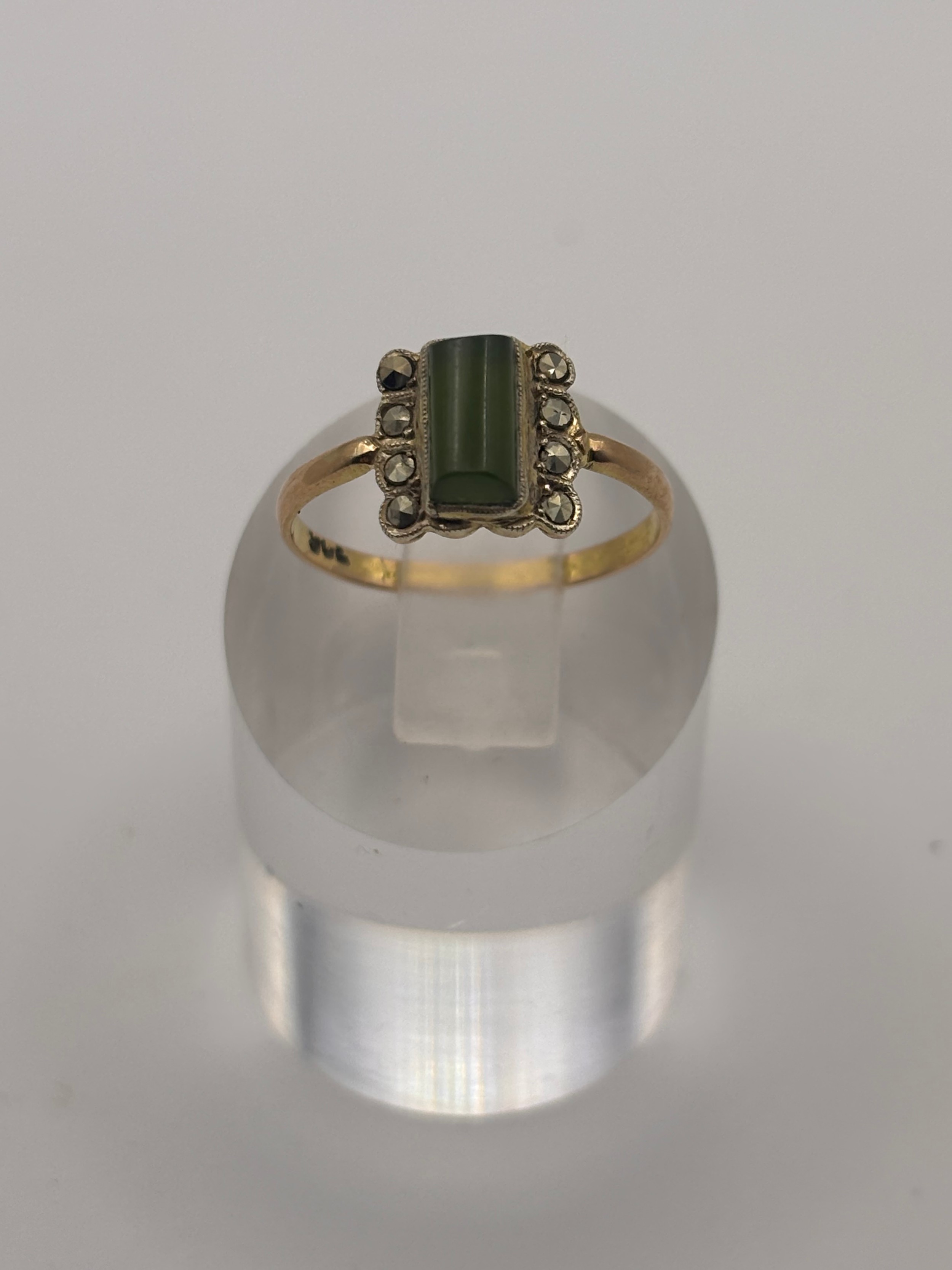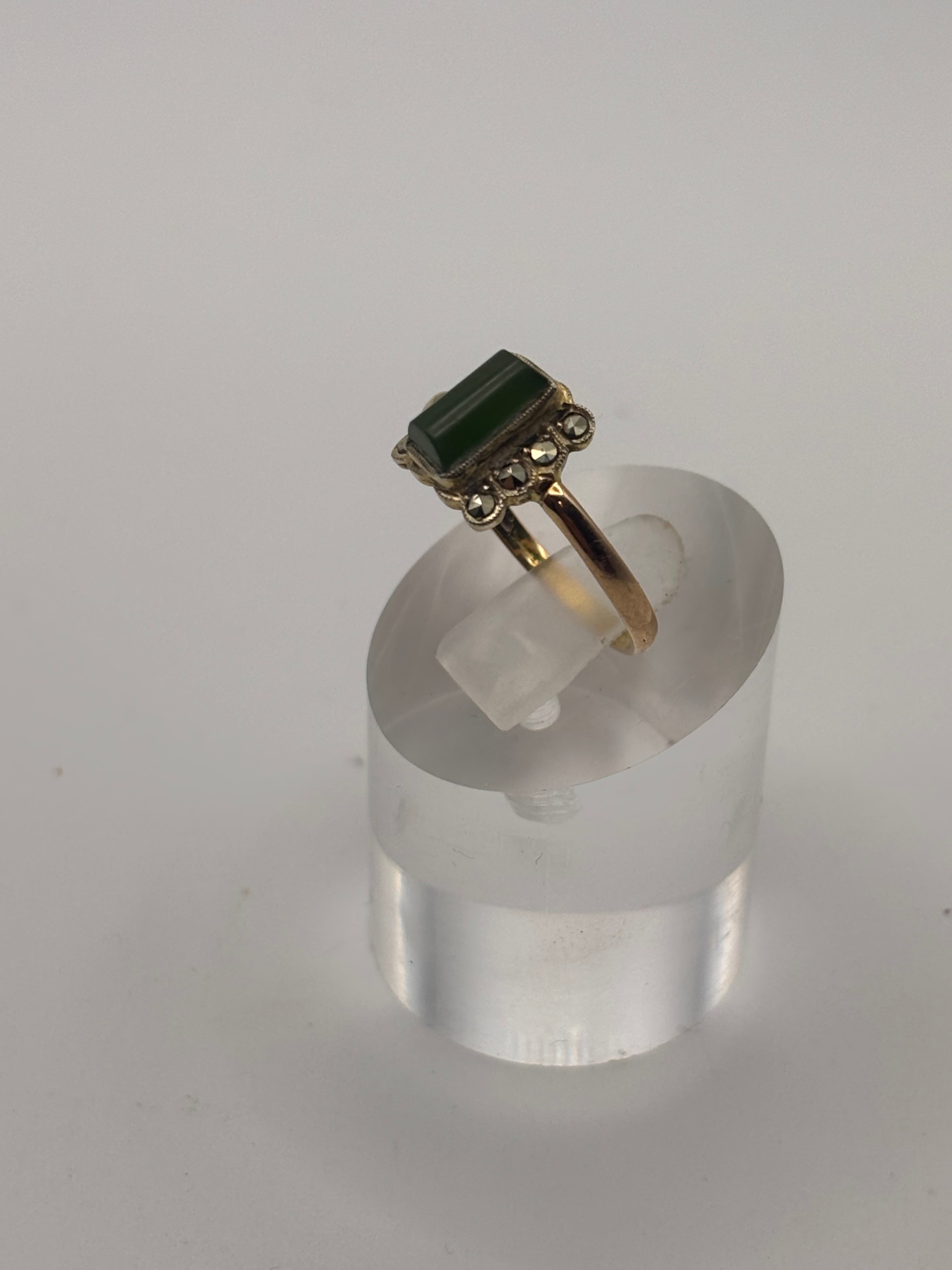 9ct yellow gold vintage ring with rectangular green jade gemstone.