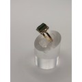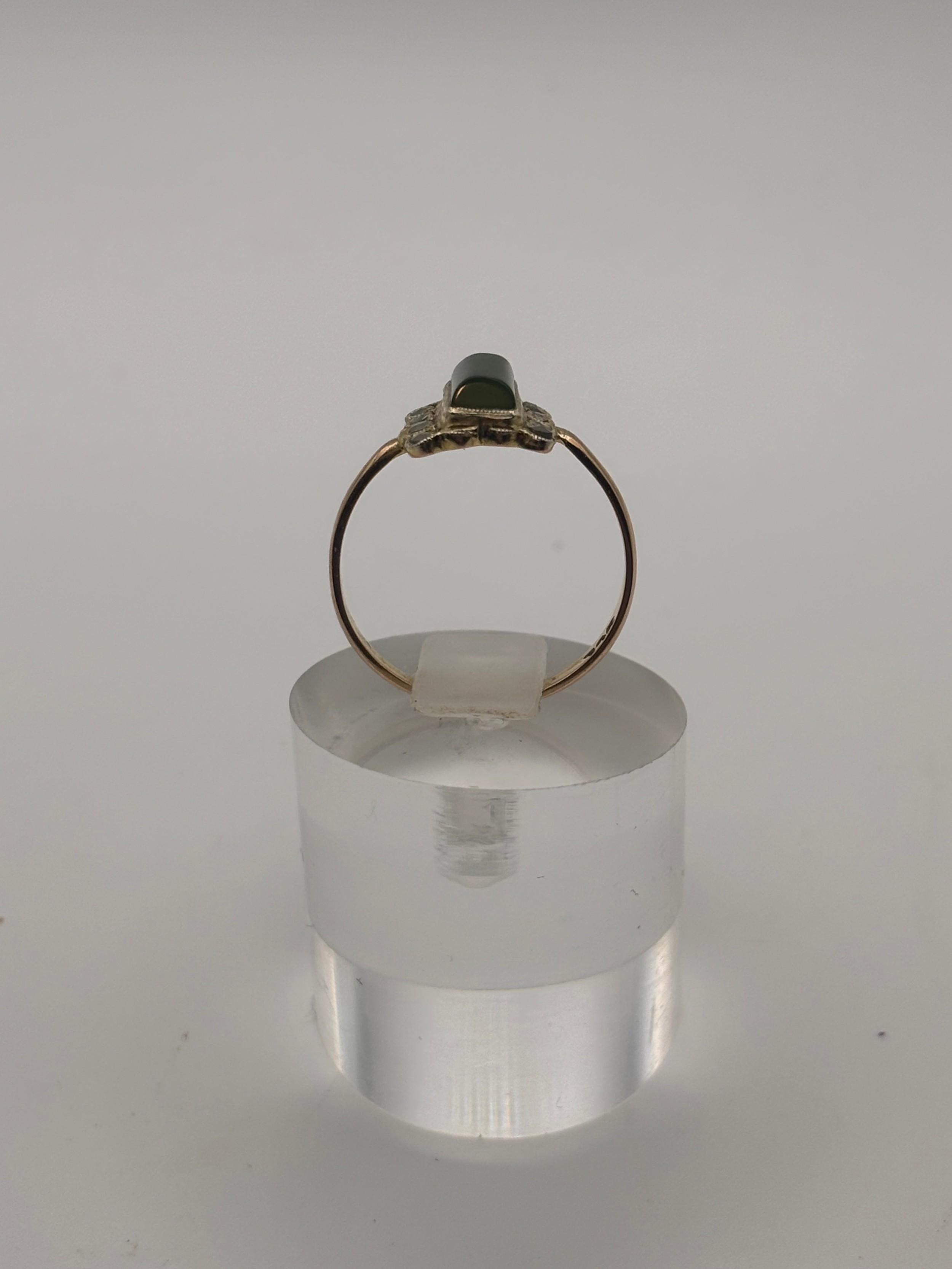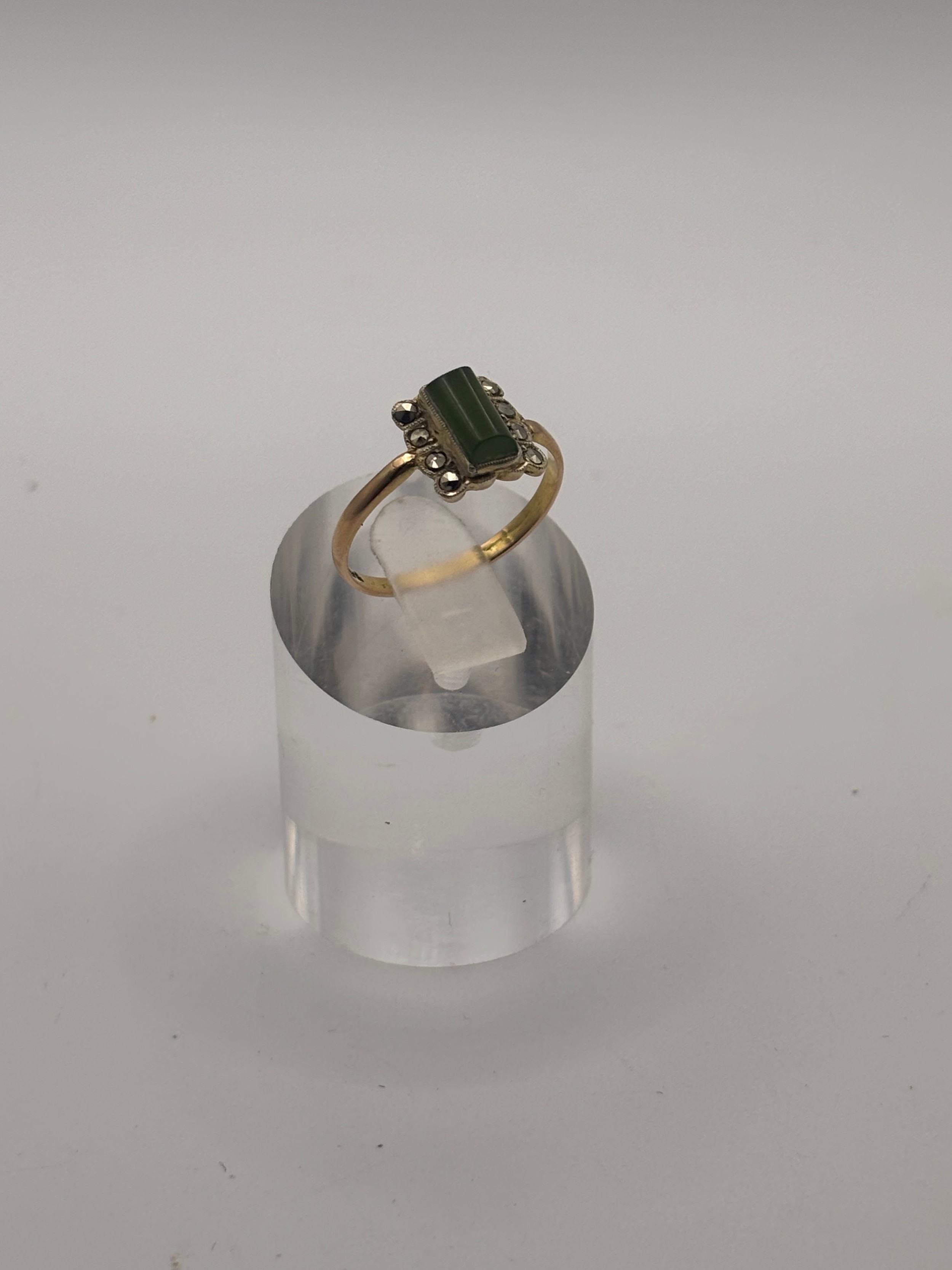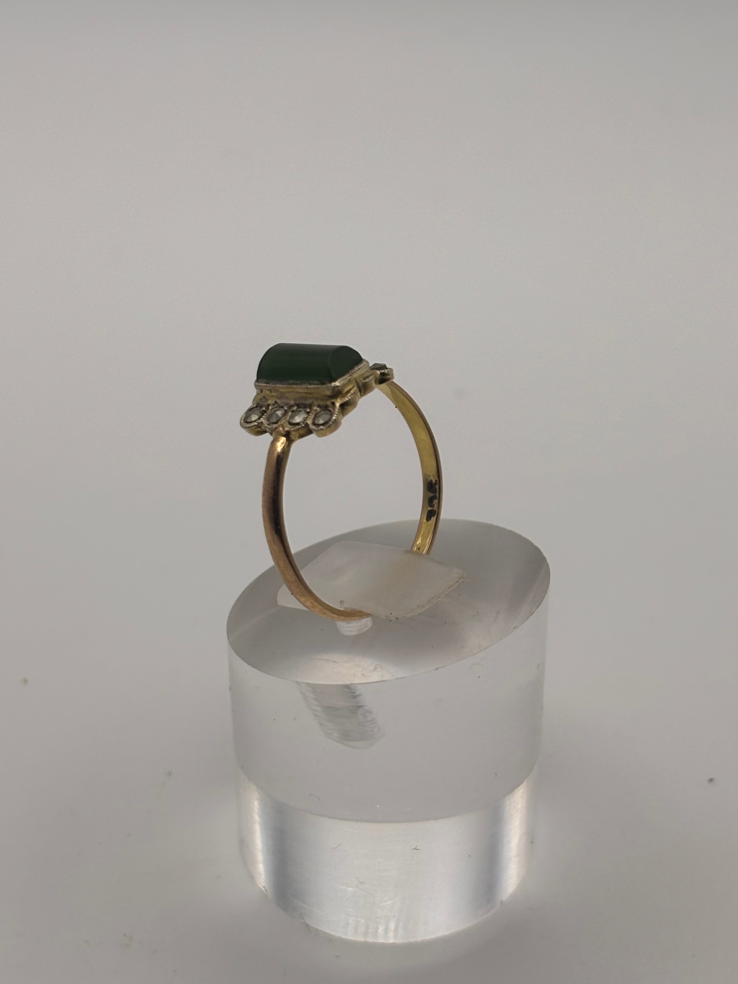 9ct yellow gold vintage ring with rectangular green jade gemstone.
