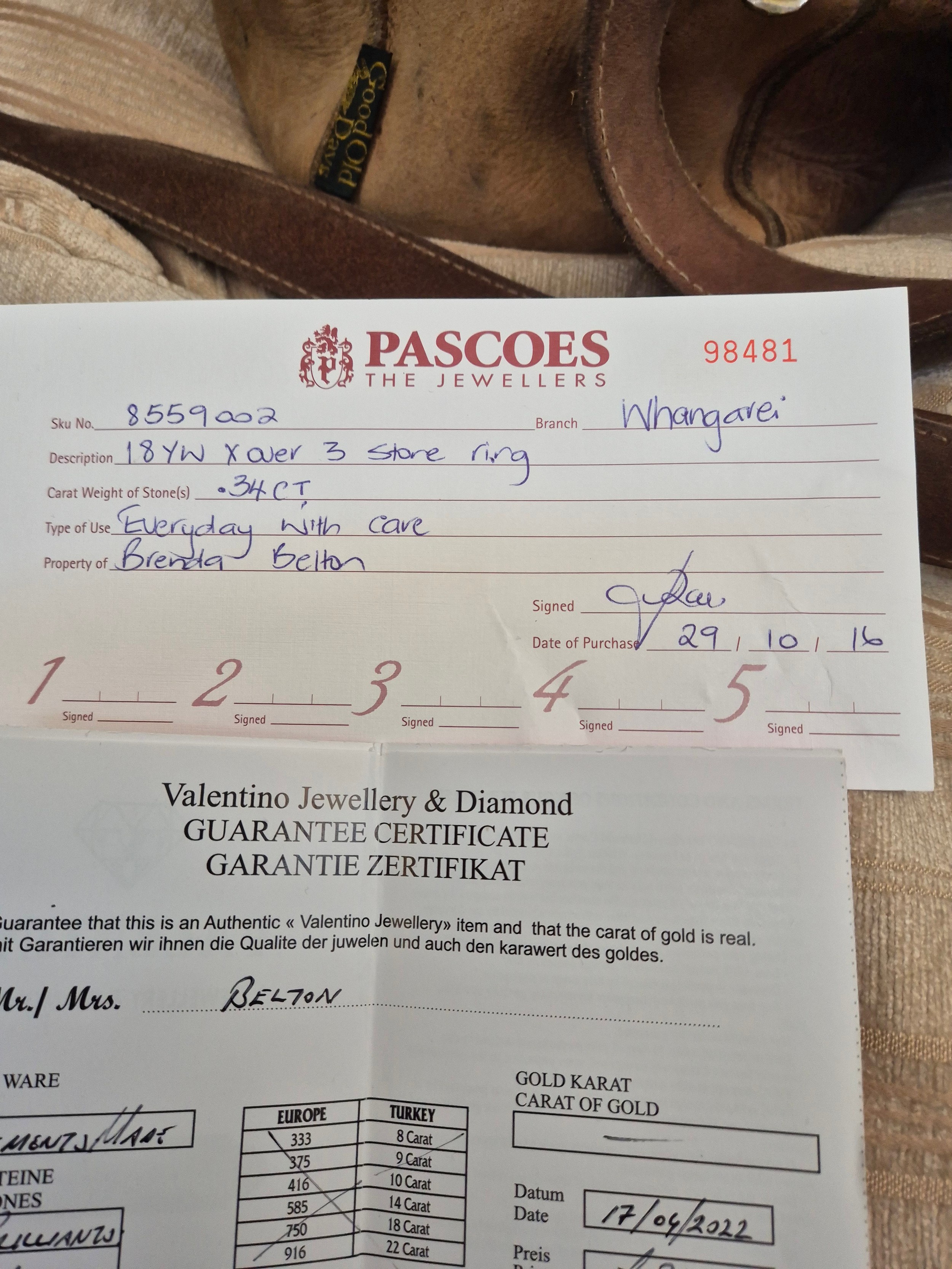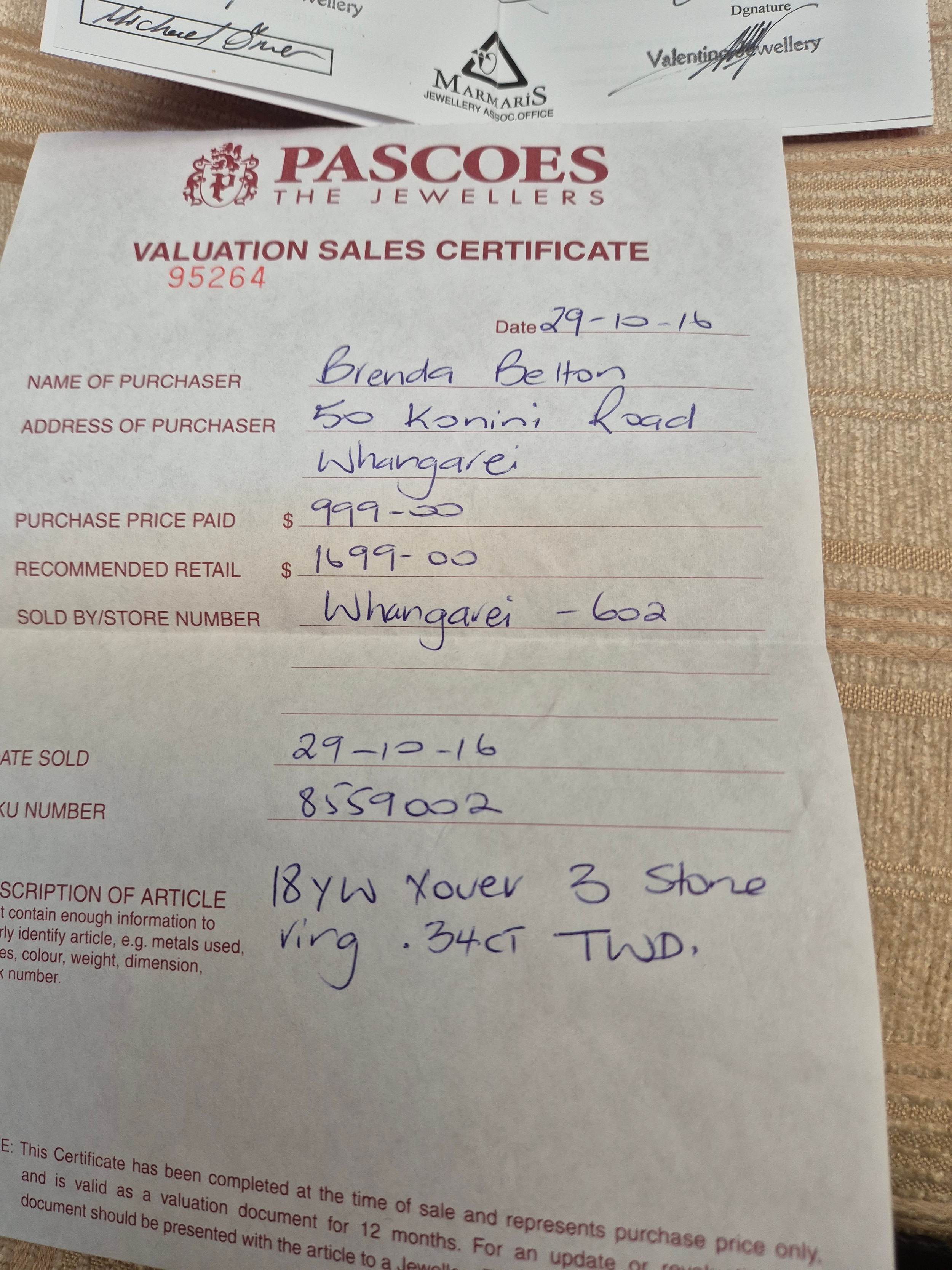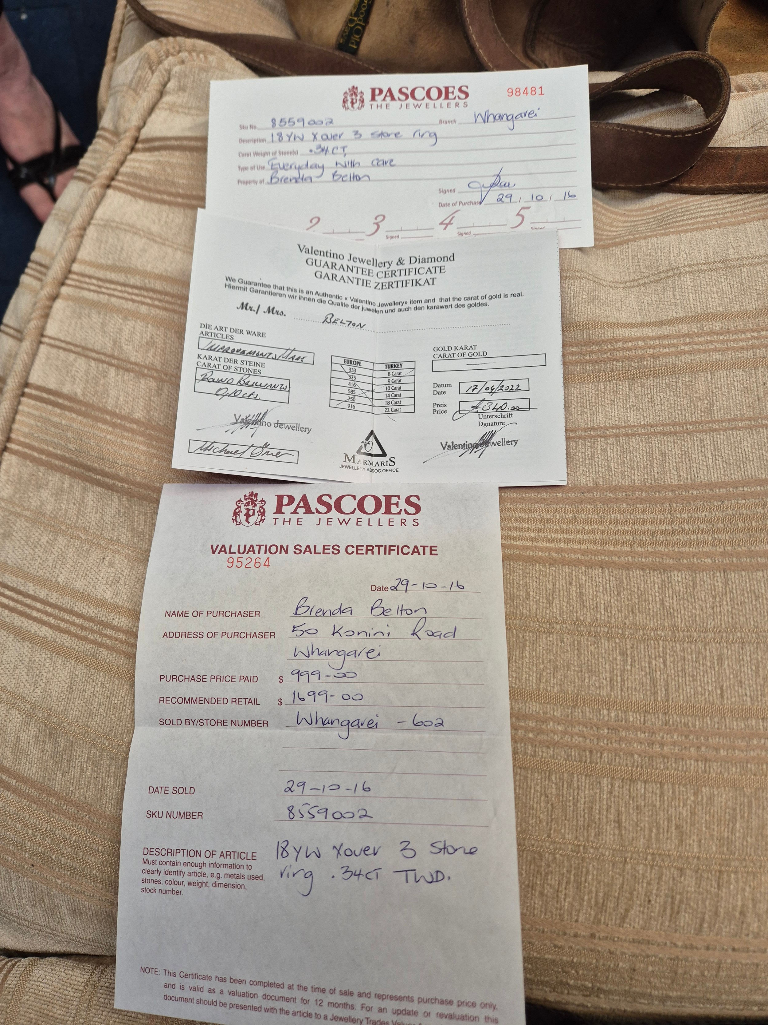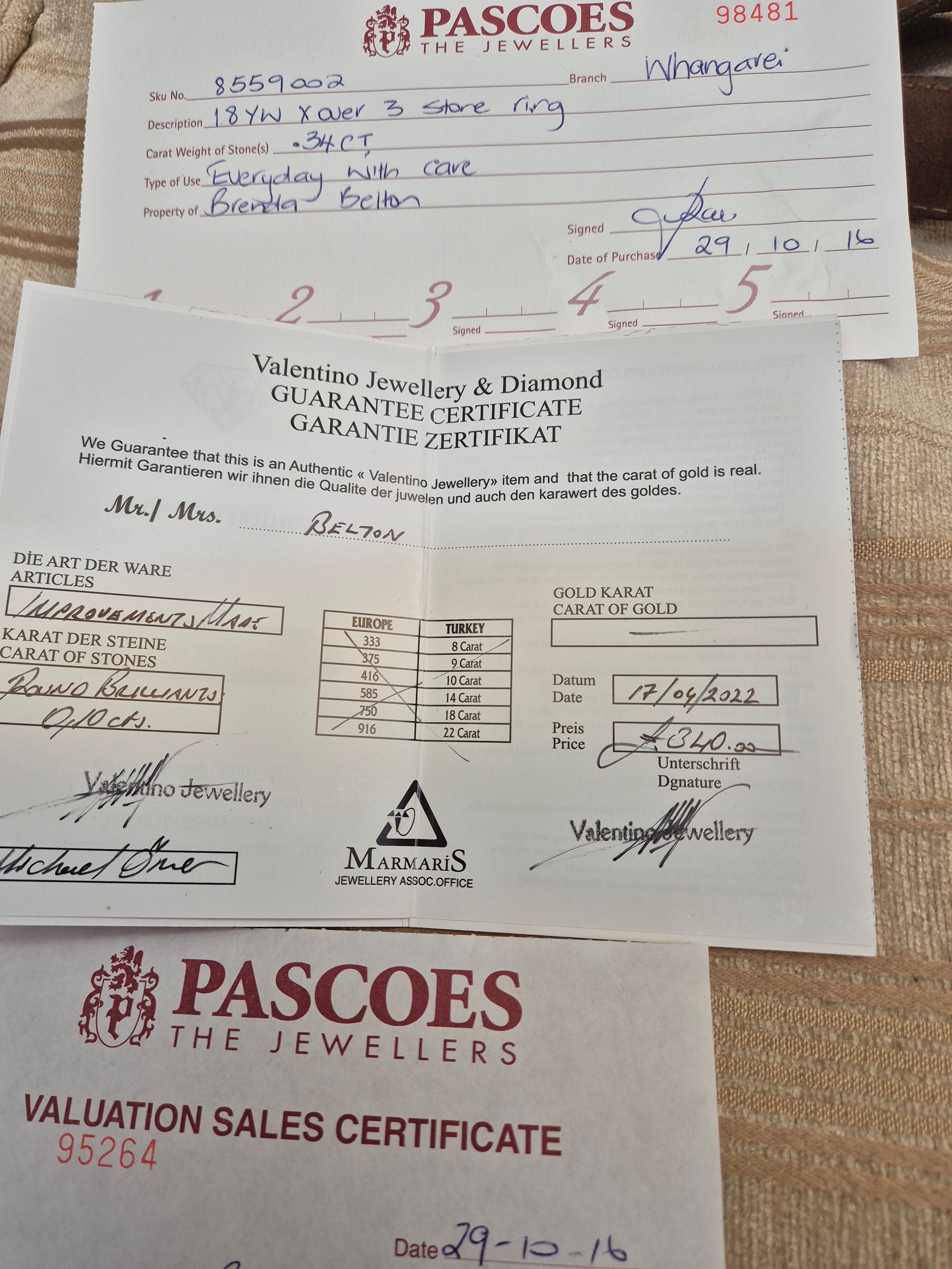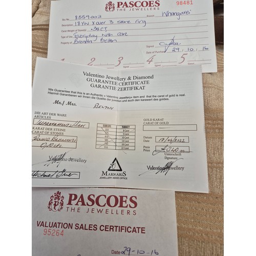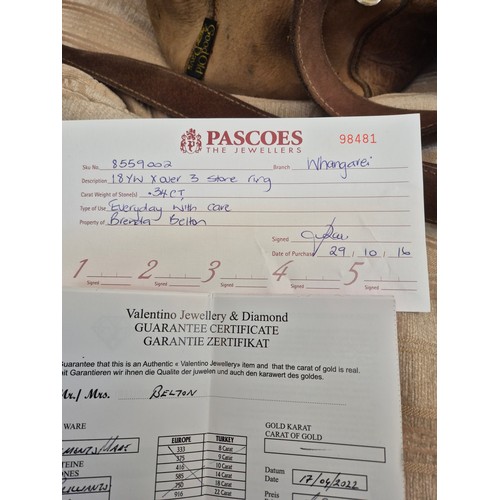 - Three Diamonds have carat weight of 0.34