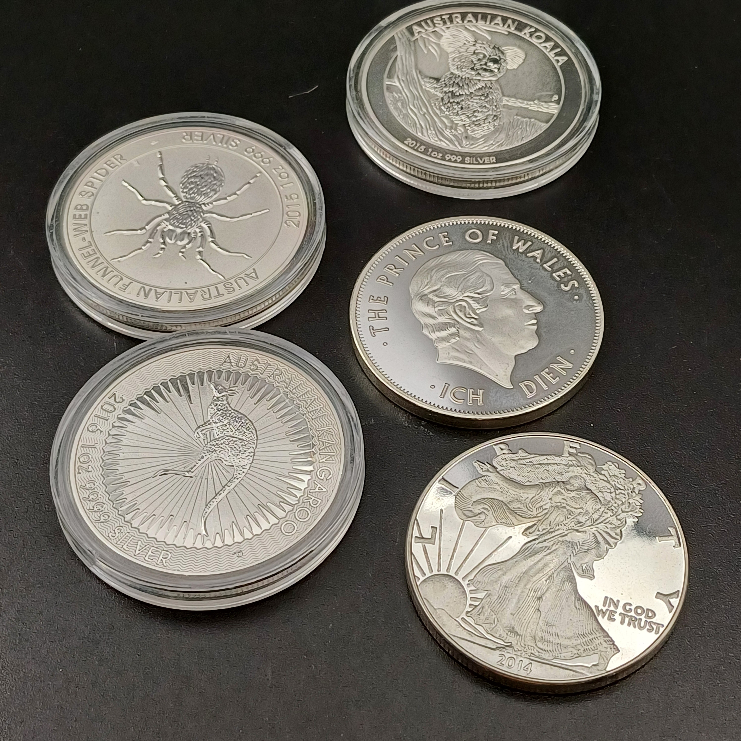 Five .999 fine silver coins